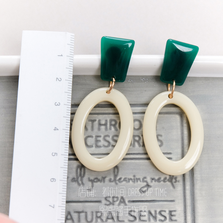 韓國訂單復古幾何橢圓多色入樹脂ANNA MALI耳環耳釘1入