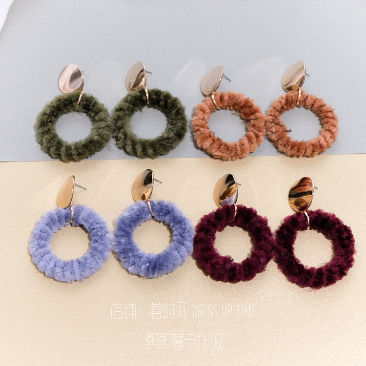韓國訂單毛絨絨圈圈復古CHIC風流行款耳環1入