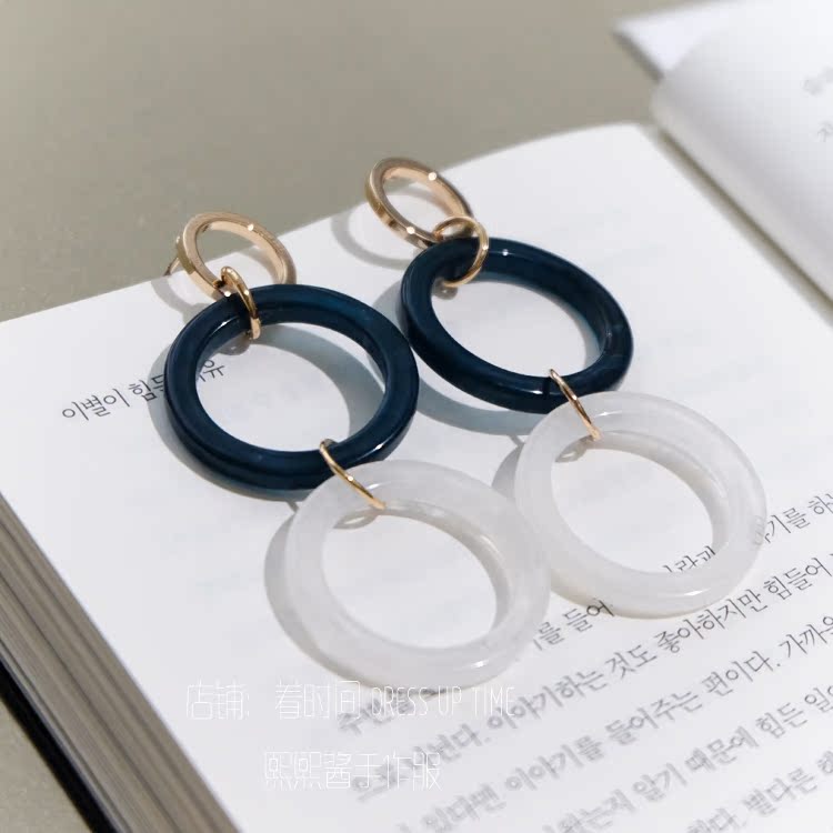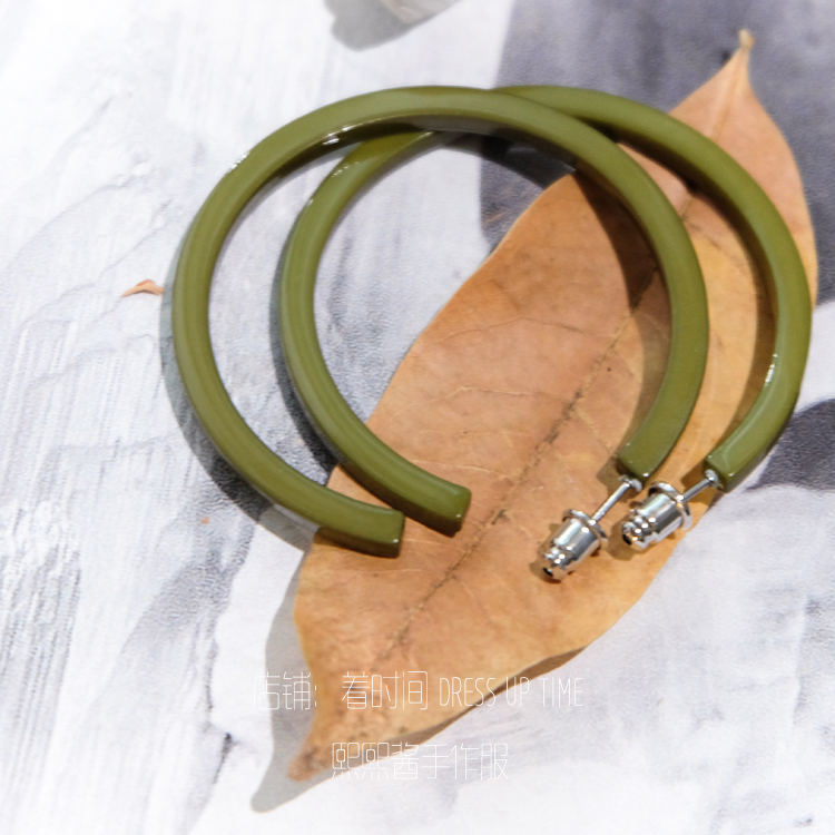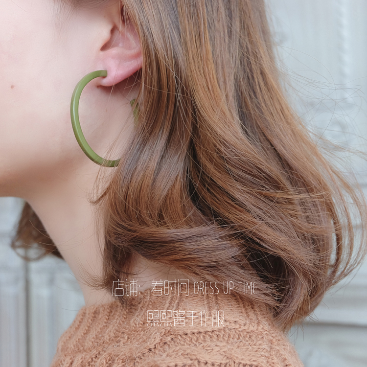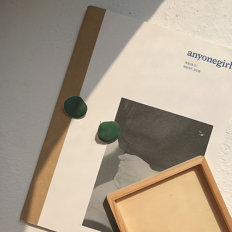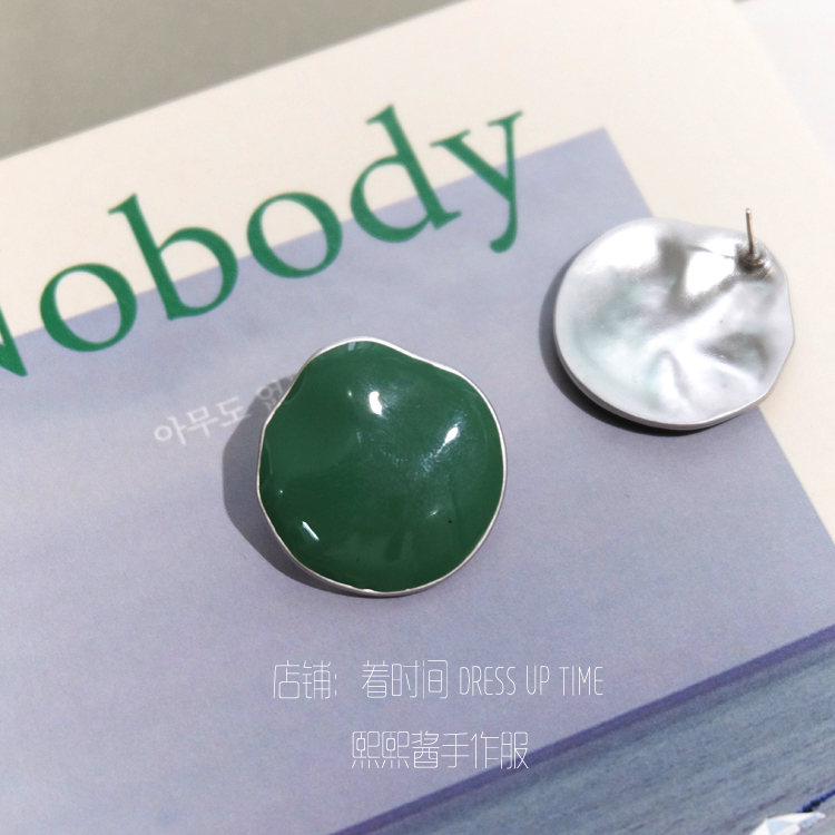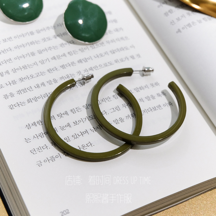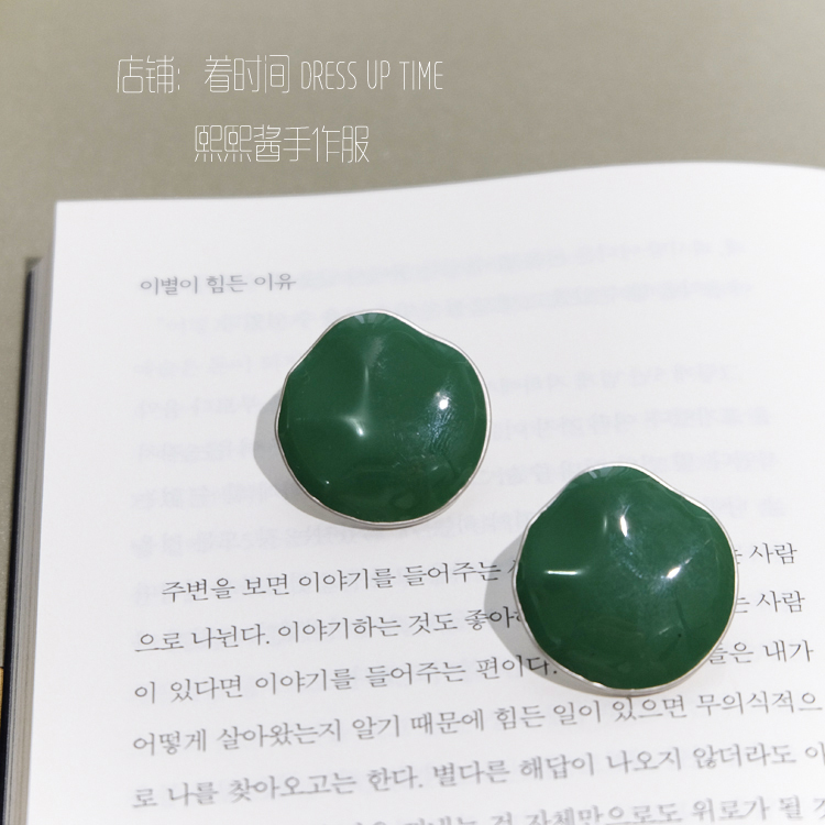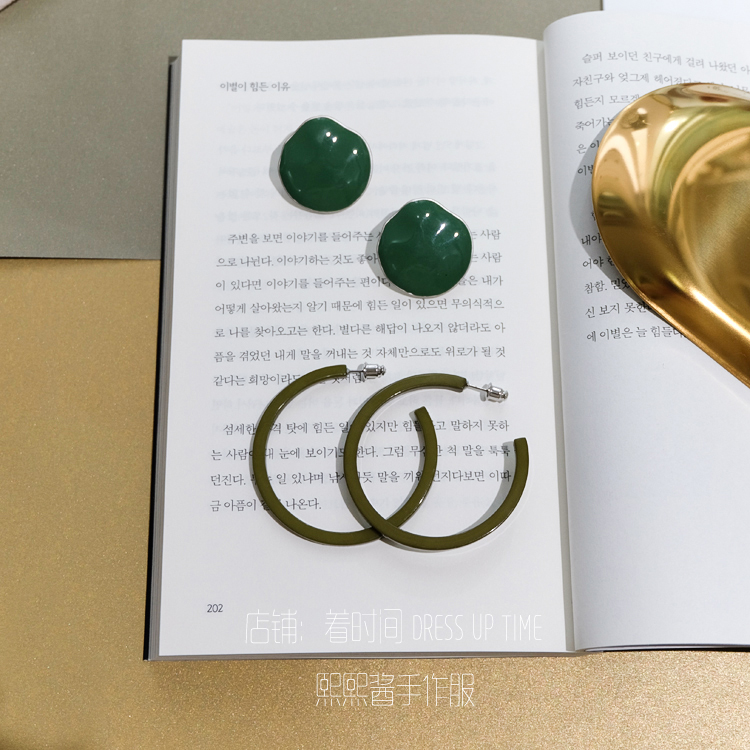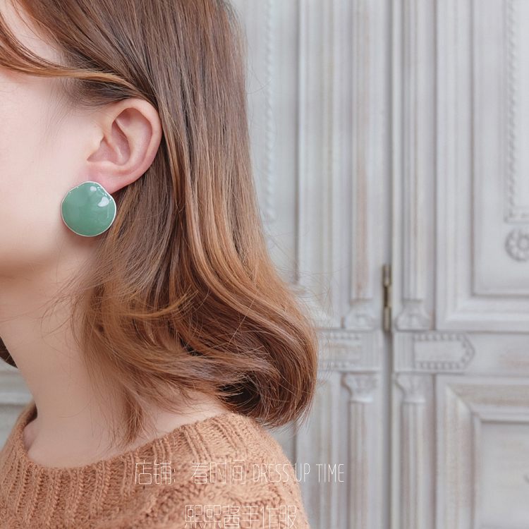 韓國CHIC風復古綠色系顯白紅人款耳環耳釘1入