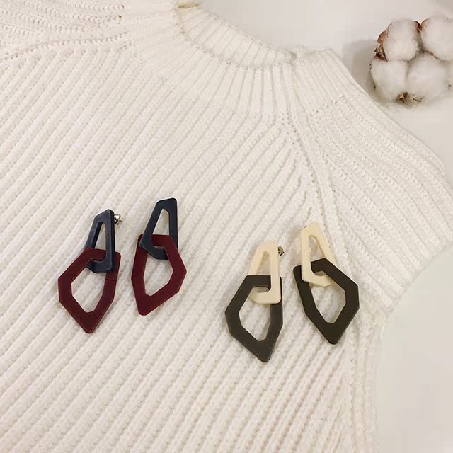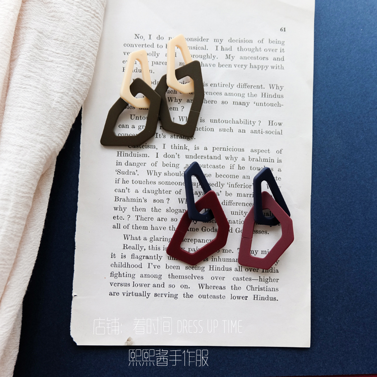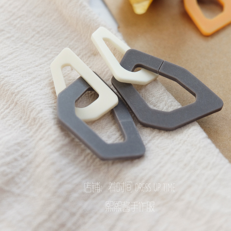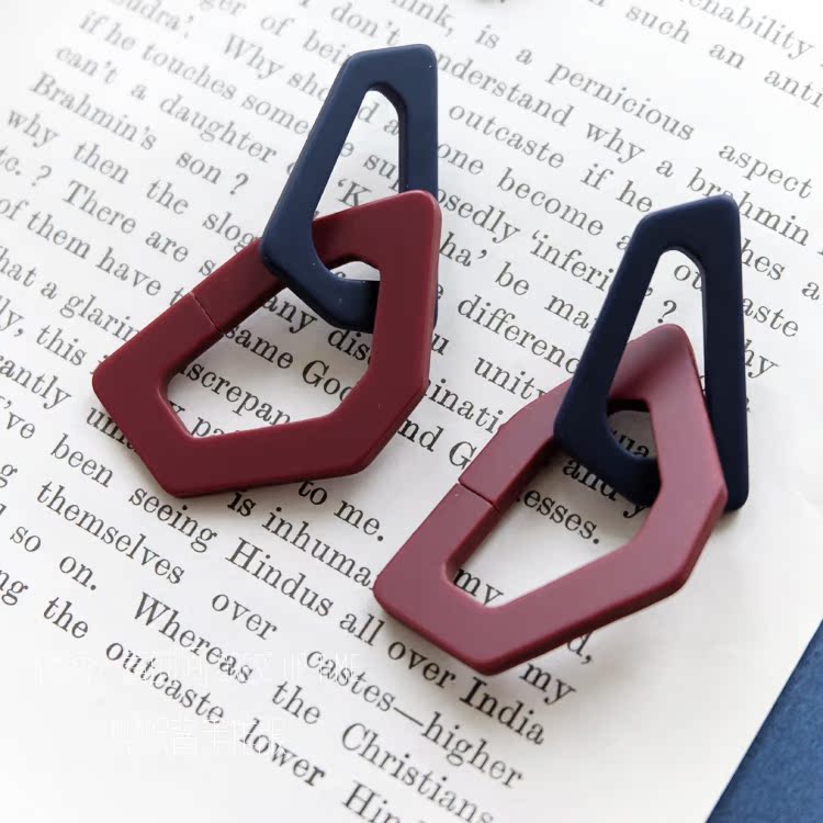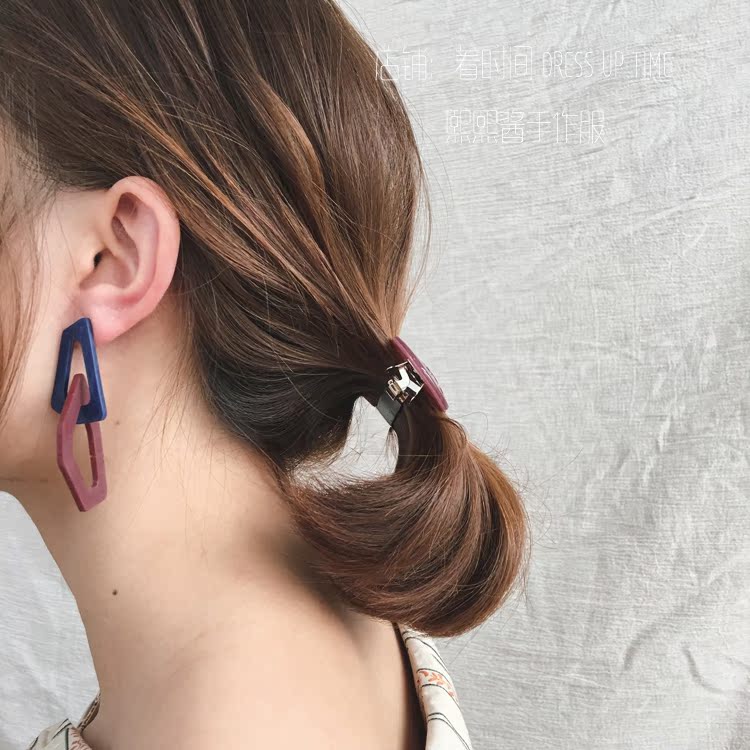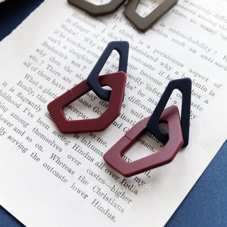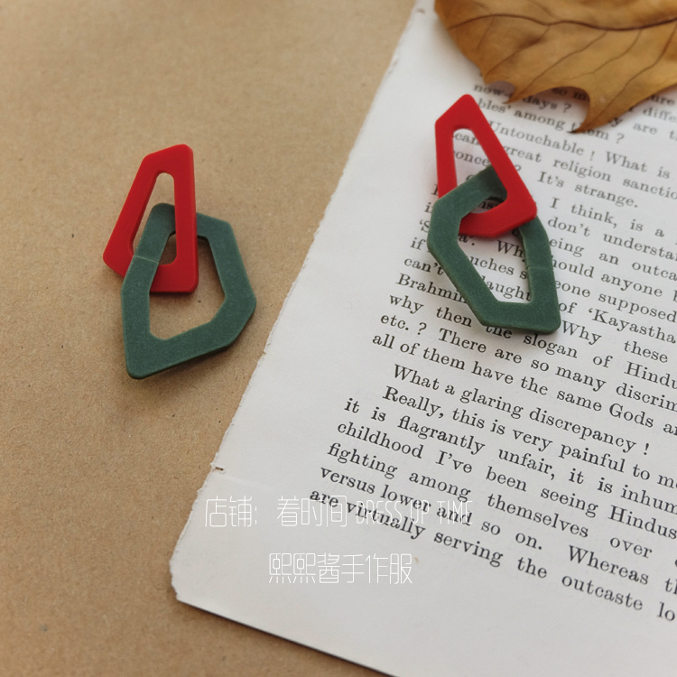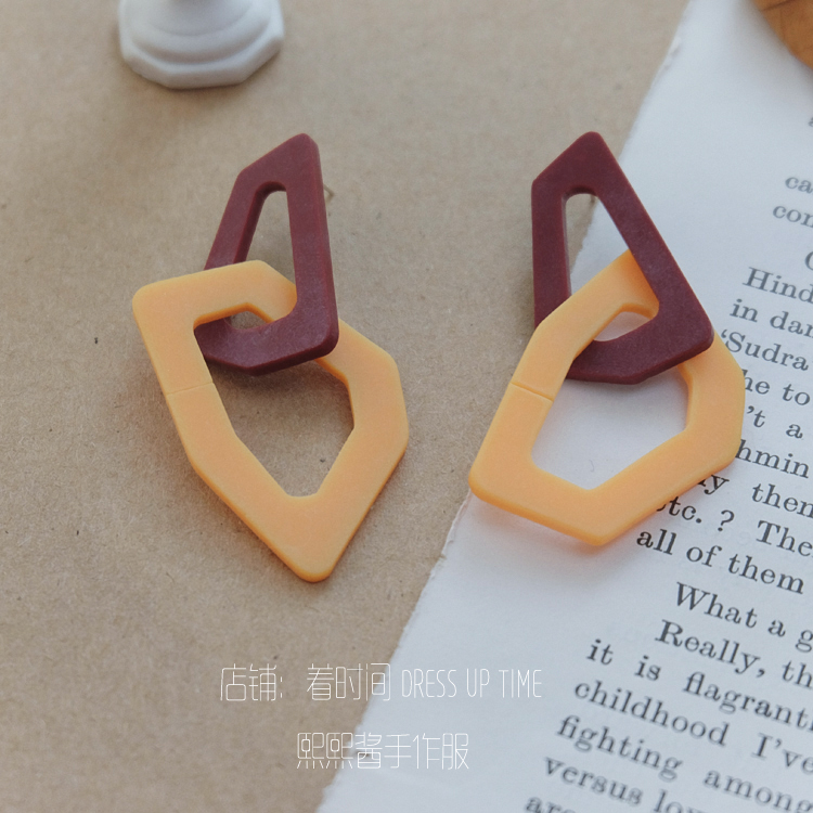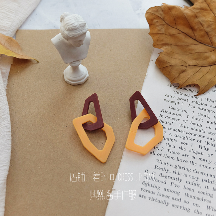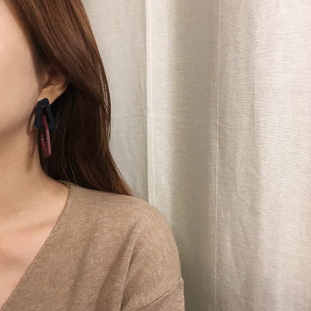 文藝油畫風幾何感藝術系少女撞色拼色做舊感耳釘1入