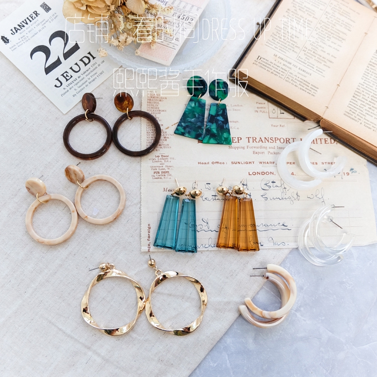 韓國CHIC風ANNA MALI款復古幾何造型優雅耳釘1入