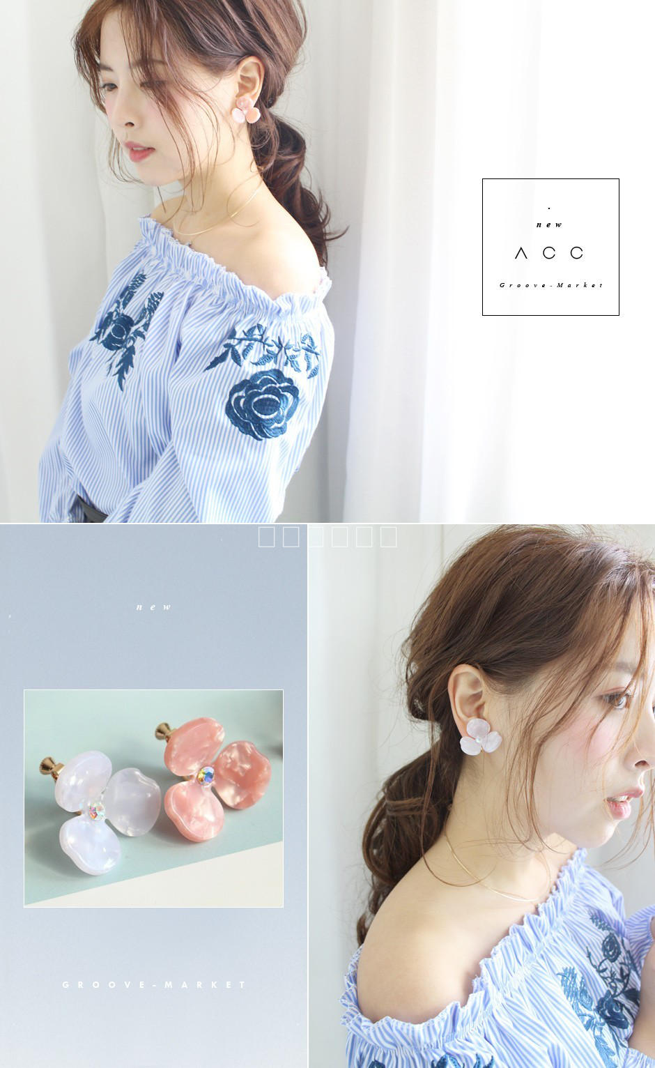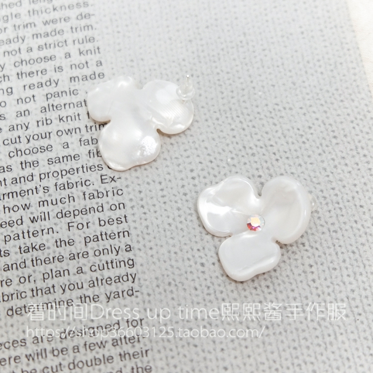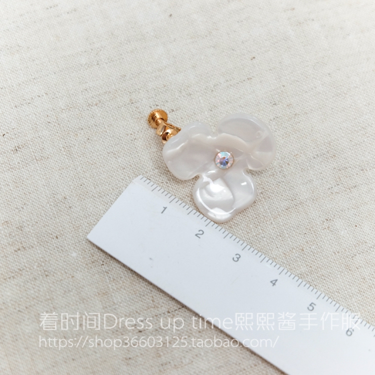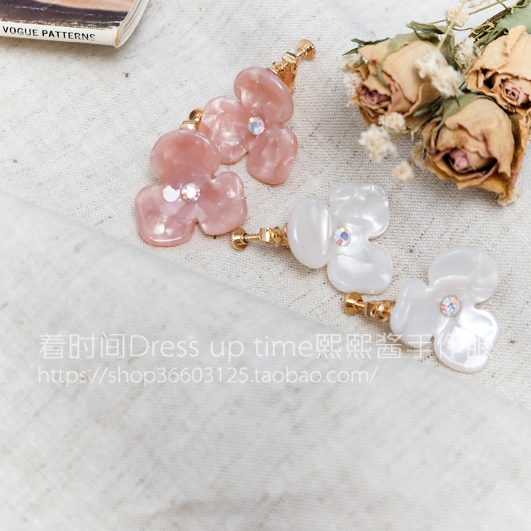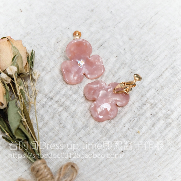 韓國風復古大花朵貝殼光澤粉色系淑女耳環耳夾1入