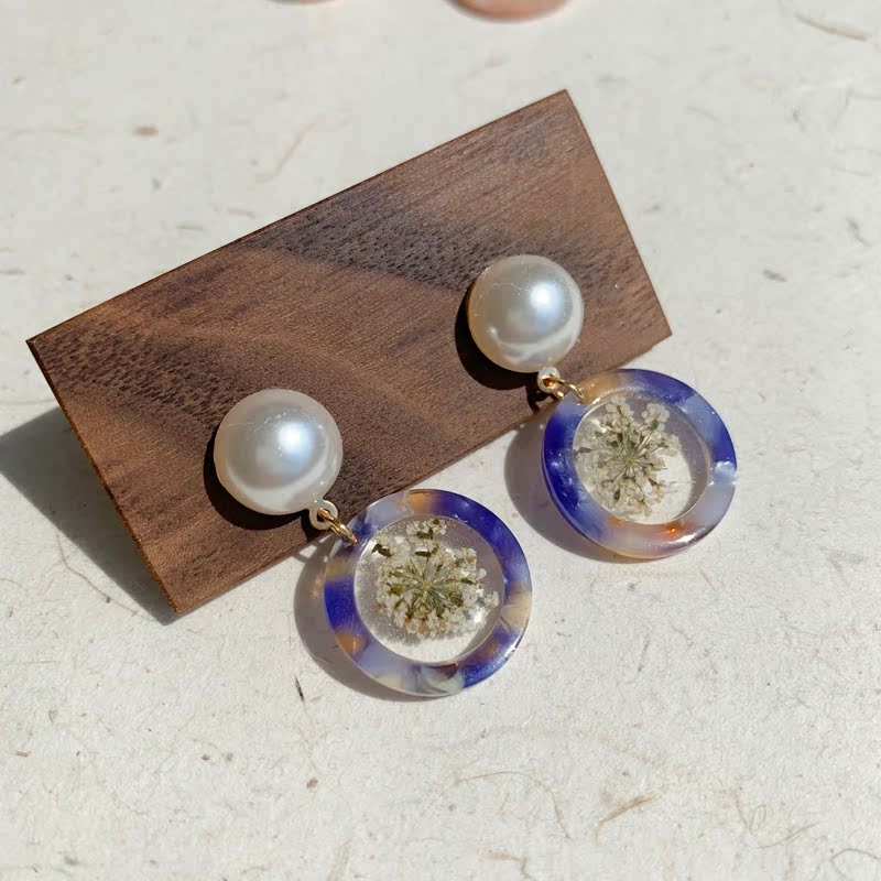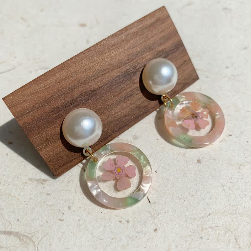 韓國ins耳釘2019新飾品復古干花珍珠氣質耳夾耳環耳飾女1入