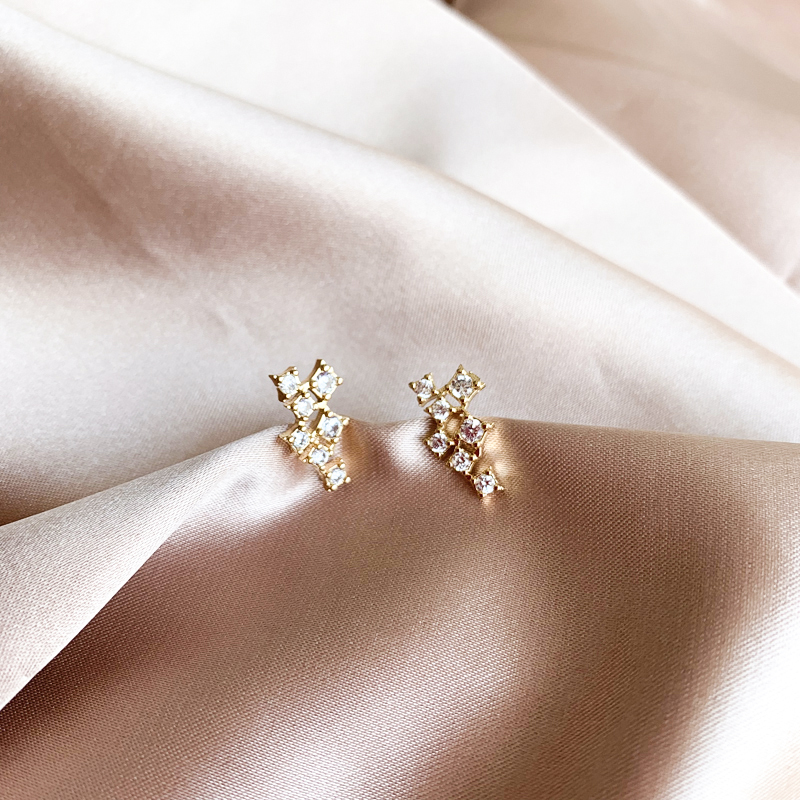 韓國流行款仙女網紅閃鉆小巧精致氣質星星耳釘耳環耳飾1入