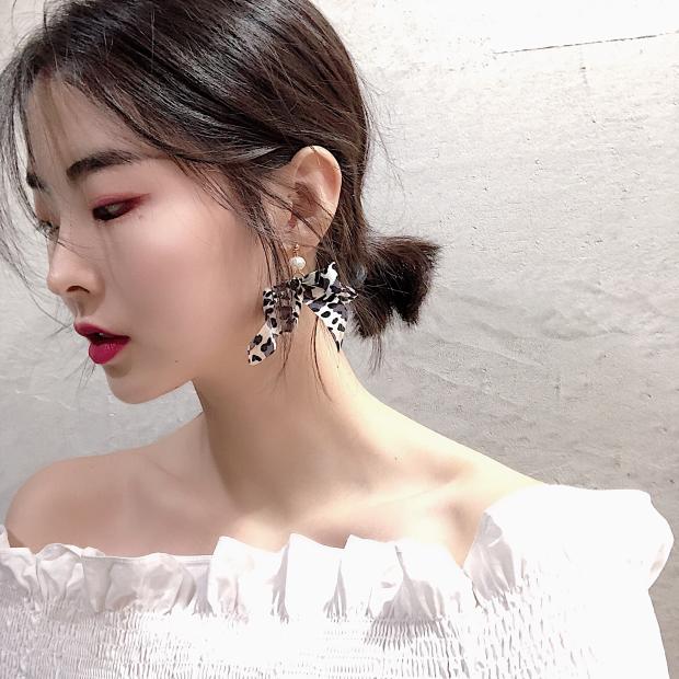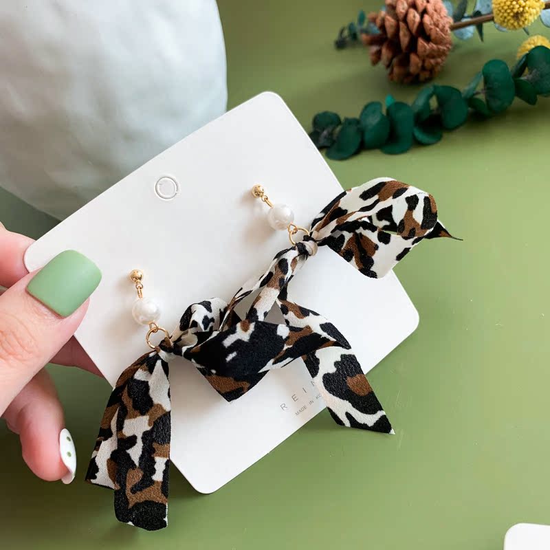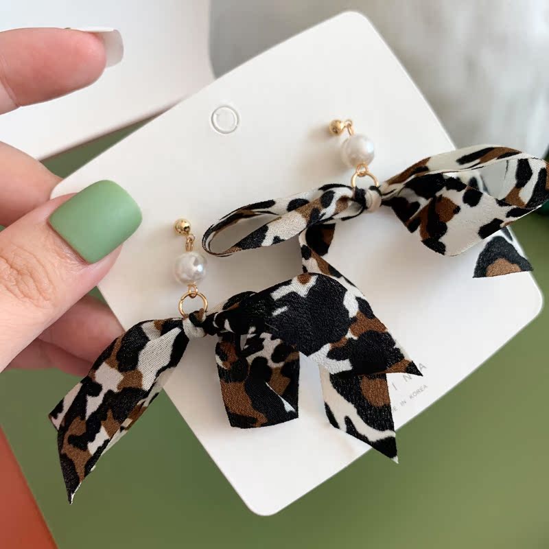 韓國東大門訂單豹紋蝴蝶結造型顯臉型百搭氣質耳釘耳環耳飾1入