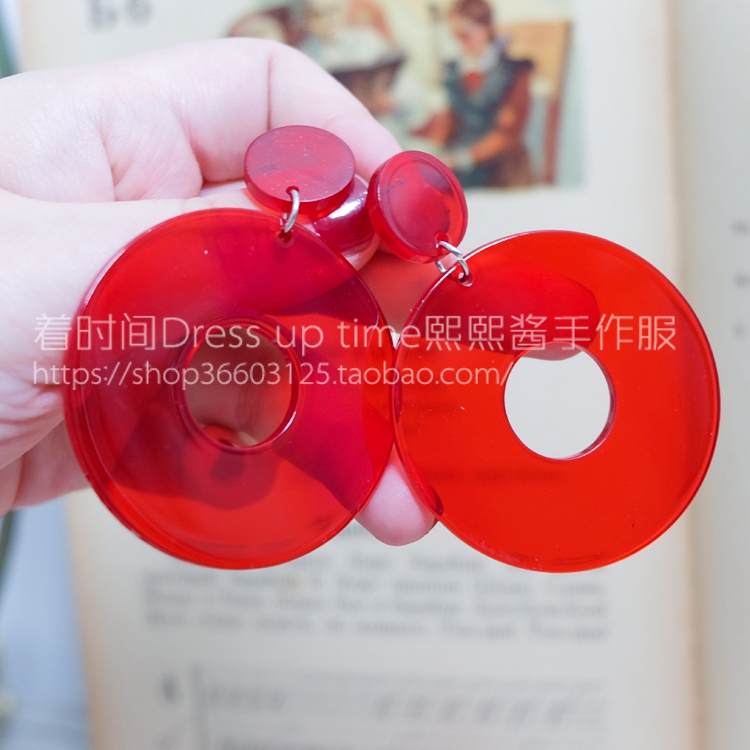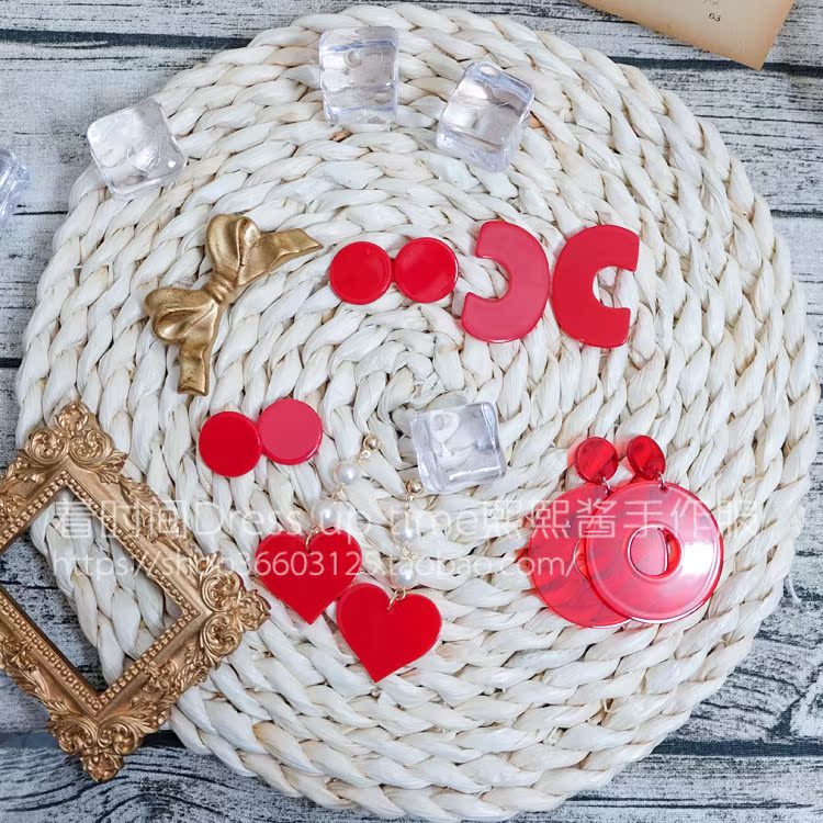 日本風格亞克力藝術感夏日搶眼的紅色耳釘1入