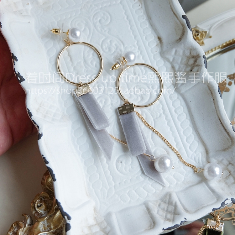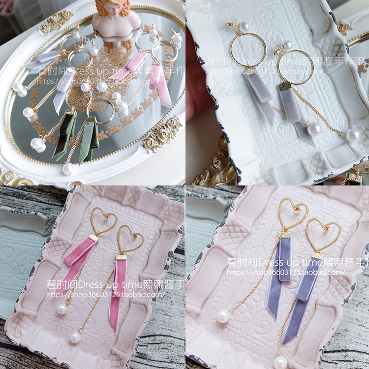 長條立體絲絨條三色入原宿少女17新品耳釘1入