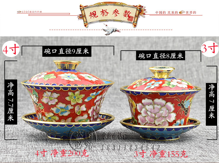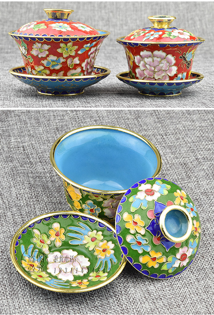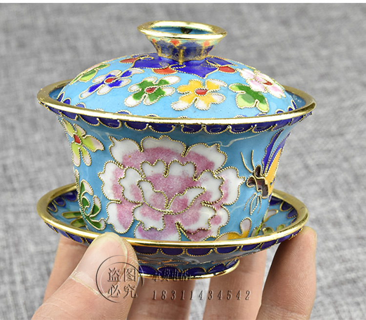 傳統老特色手工藝創意禮品景泰藍擺件銅胎掐絲琺瑯蓋碗三件套1入