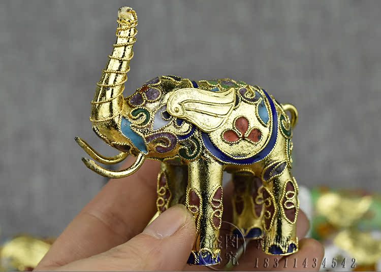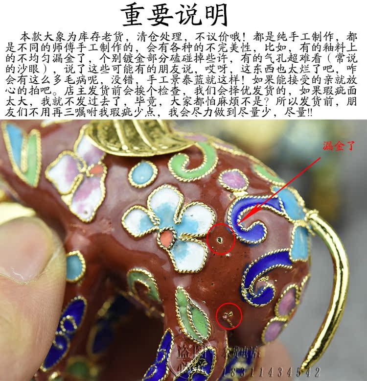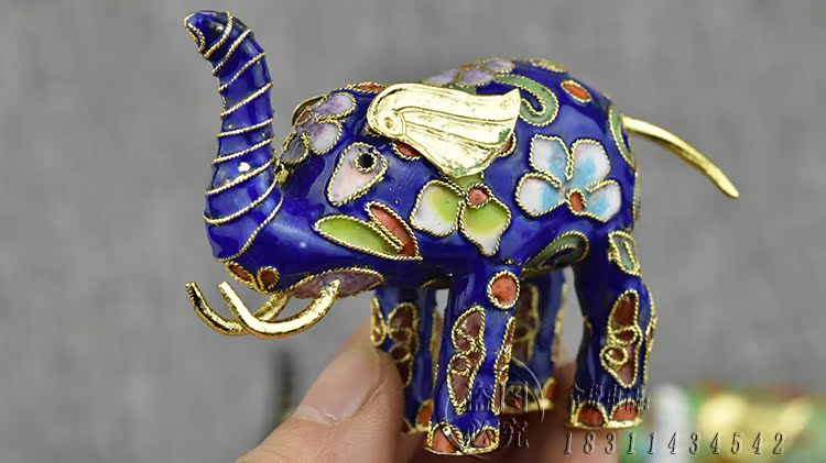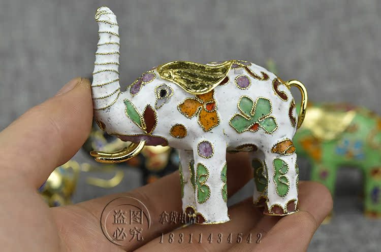 請下單前看清楚瑕疵品不退換景泰藍老貨花絲大象動物銅胎掐絲琺瑯1入