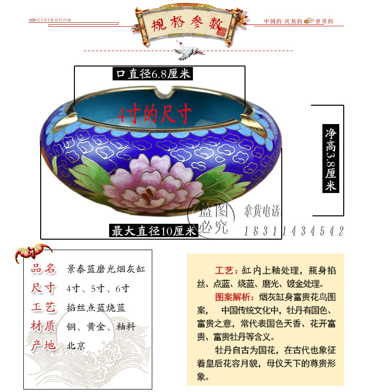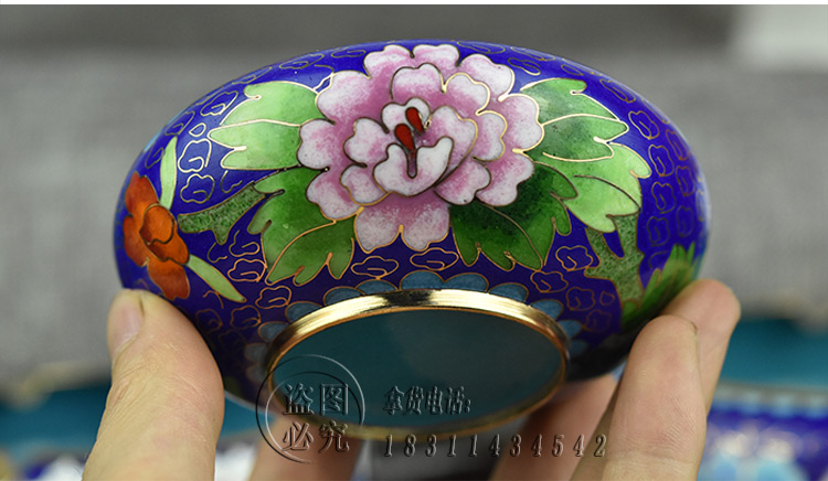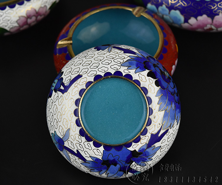 景泰藍磨光煙灰缸銅胎掐絲琺瑯客廳辦公室特色工藝品擺件1入