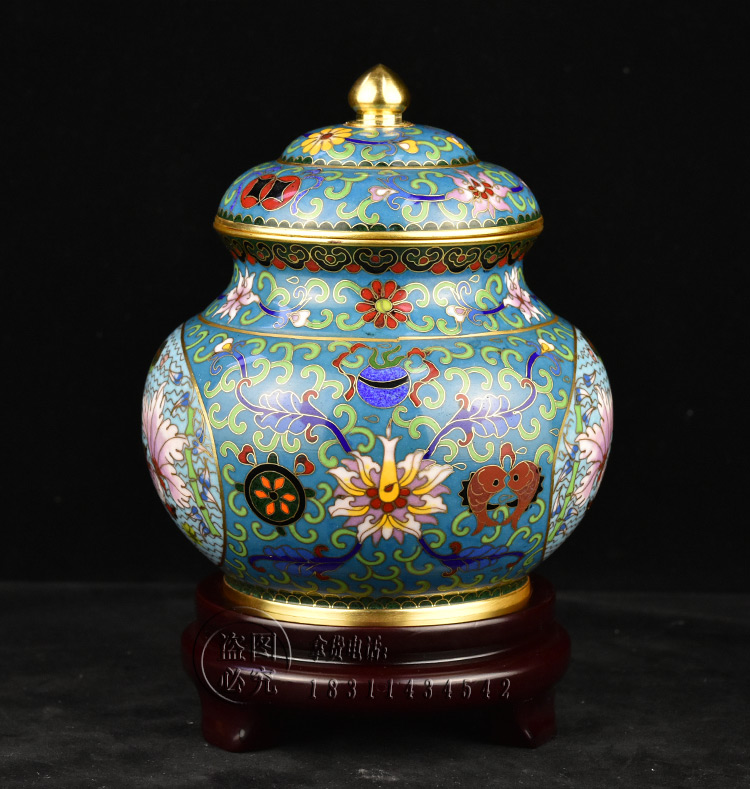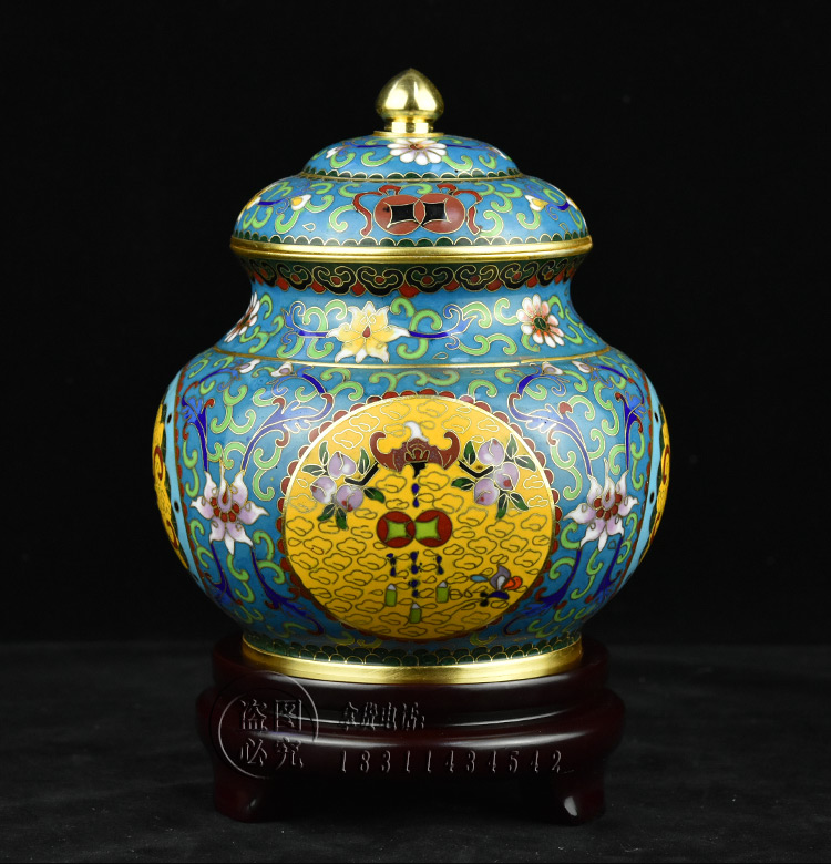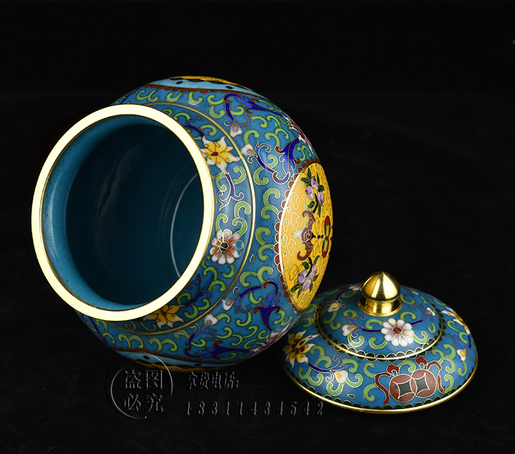 特色手工藝景泰藍如意罐銅胎掐絲琺瑯茶葉罐擺件故宮旅游禮品1入