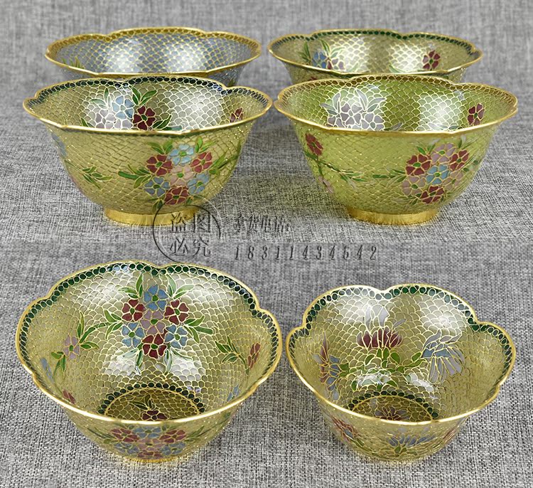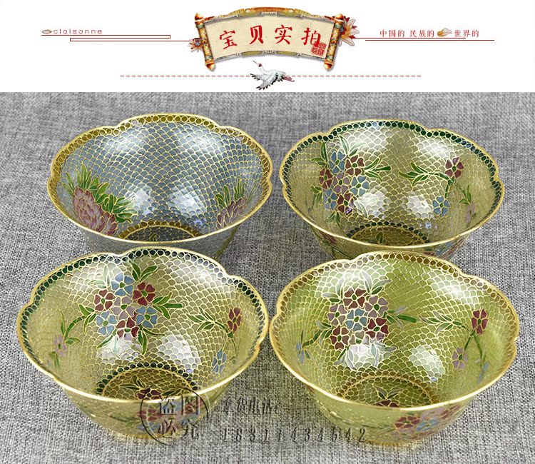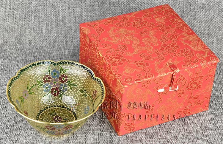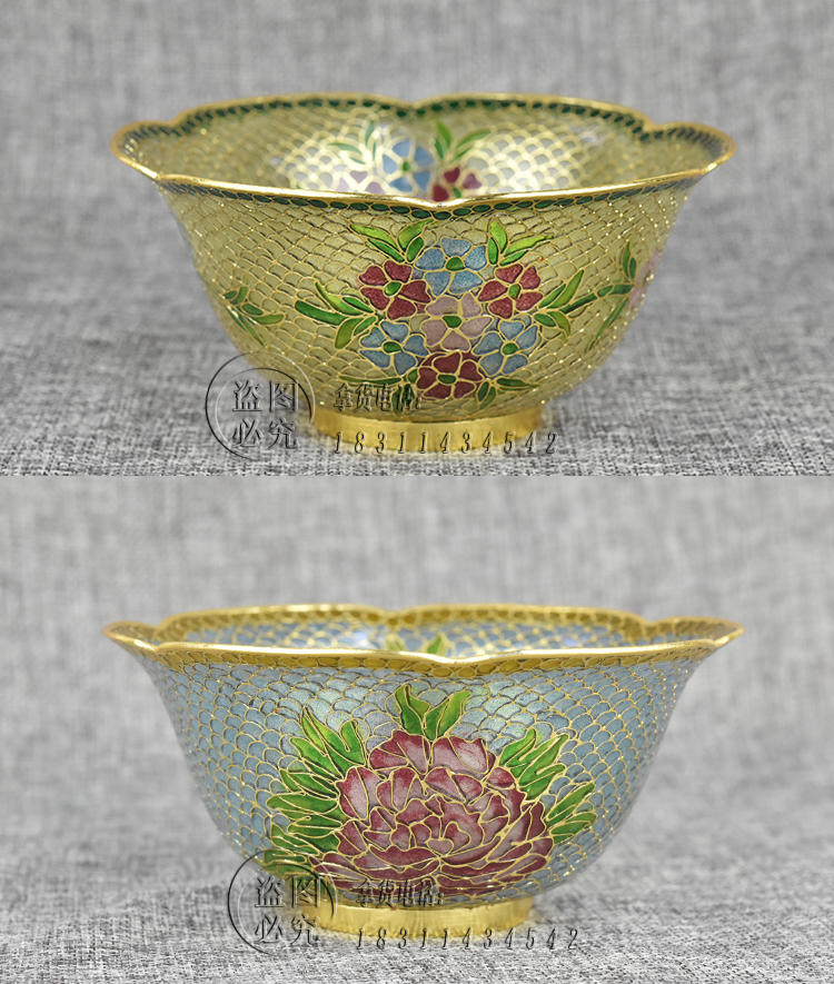 景泰藍脫胎透明藍花口碗銅客廳瓜果盤擺件出國送外賓禮品1入