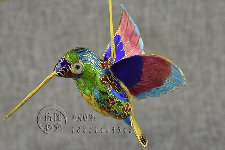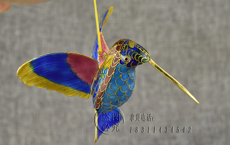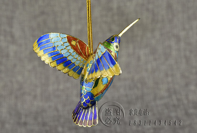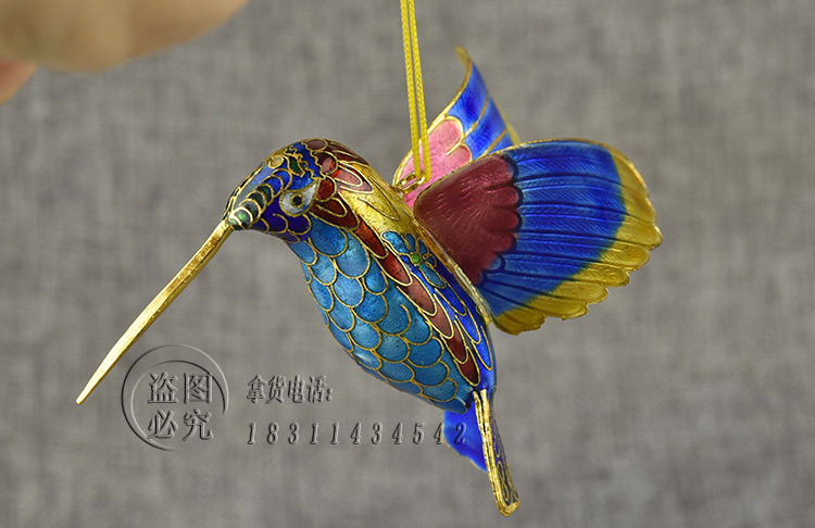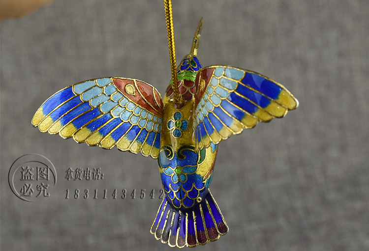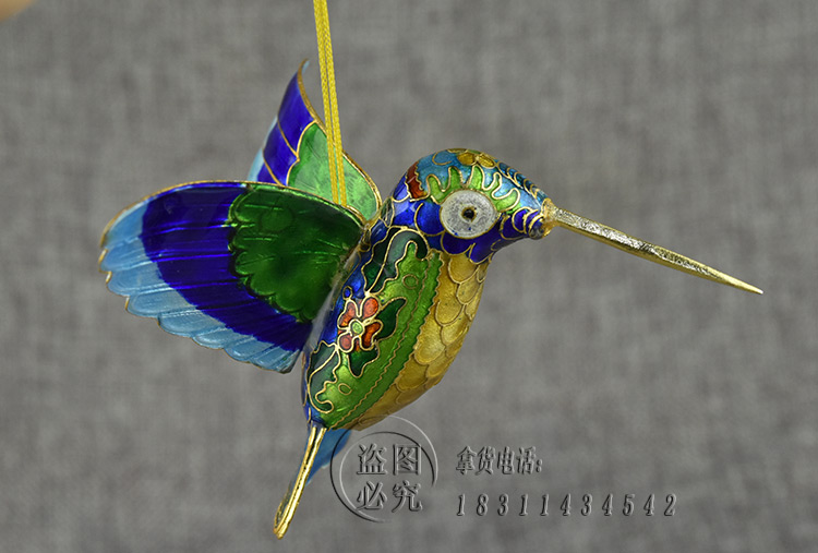銅胎掐絲琺瑯擺件出口老貨景泰藍翠鳥特色圣誕節創意禮品1入