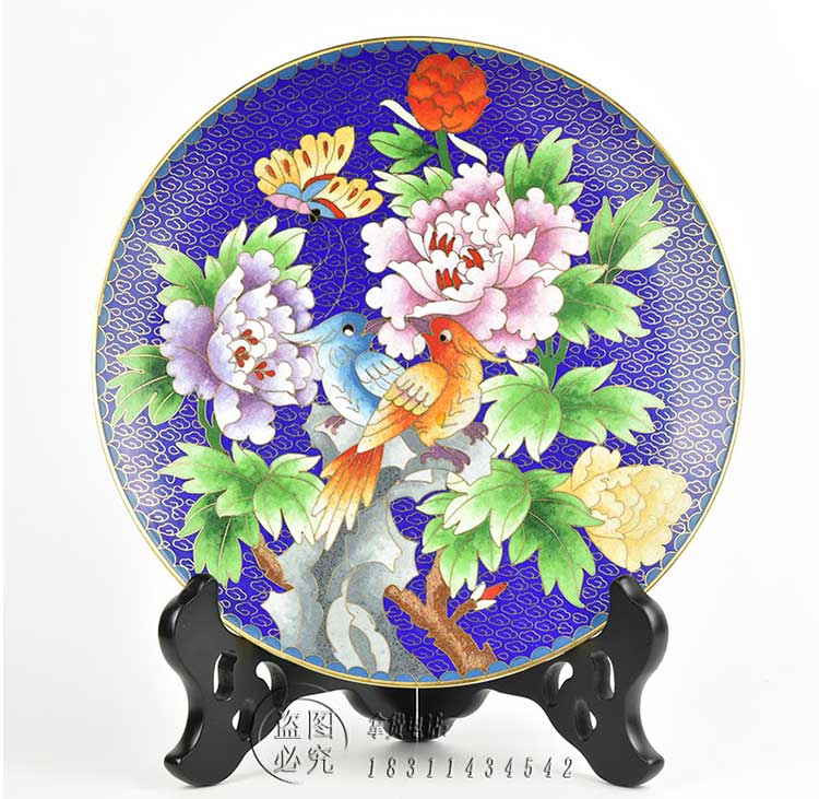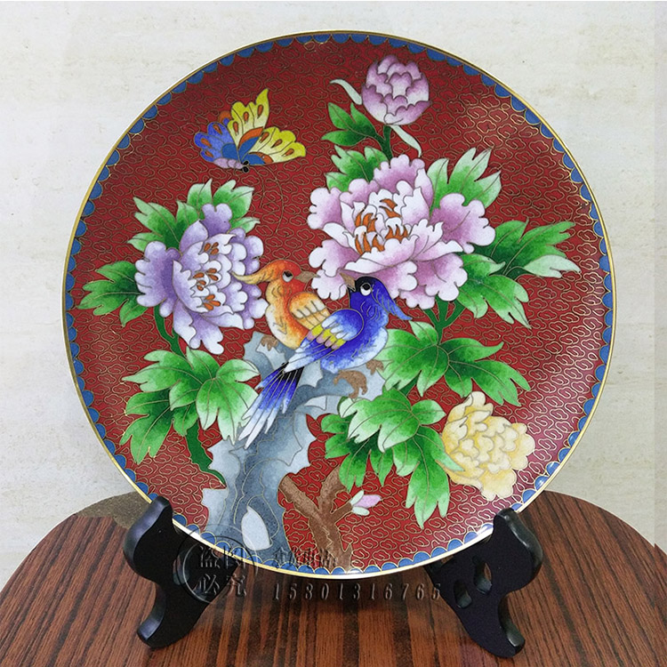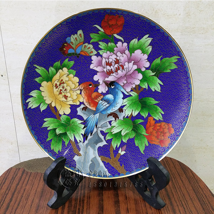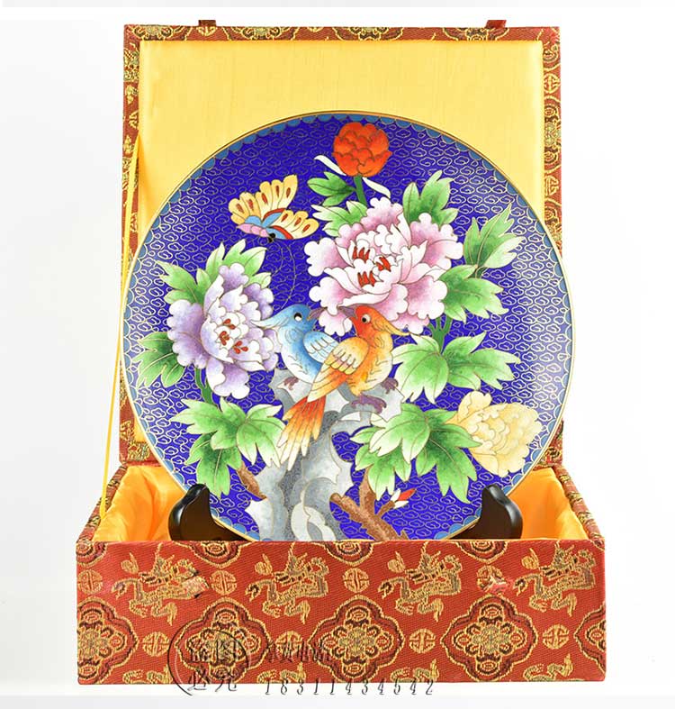 特色工藝禮品景泰藍擺件銅胎掐絲琺瑯賞盤8寸盤錦盒包裝1入