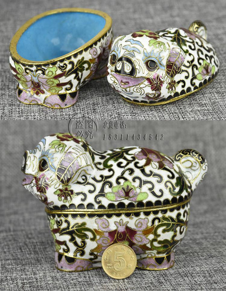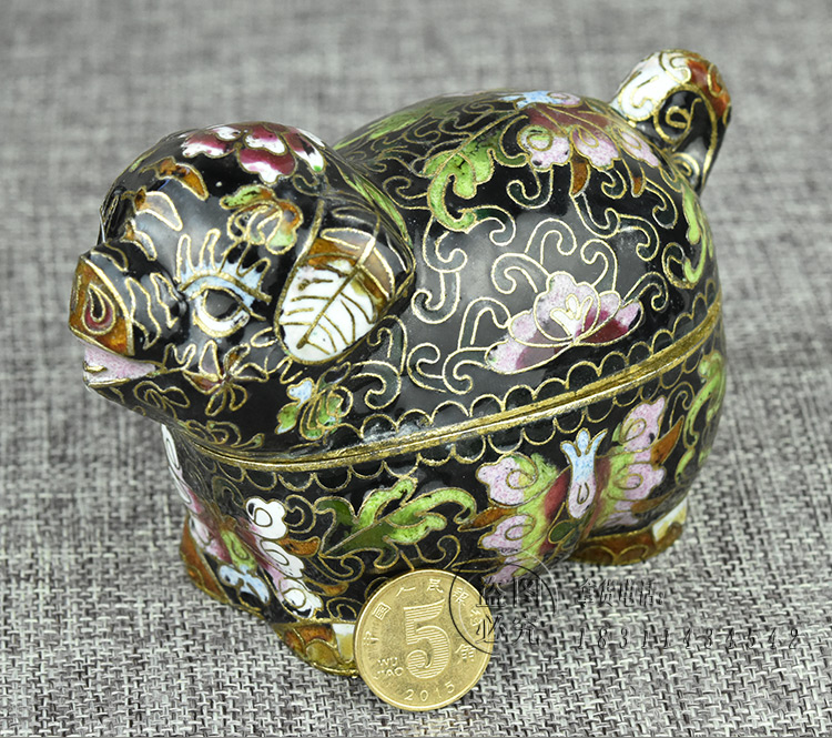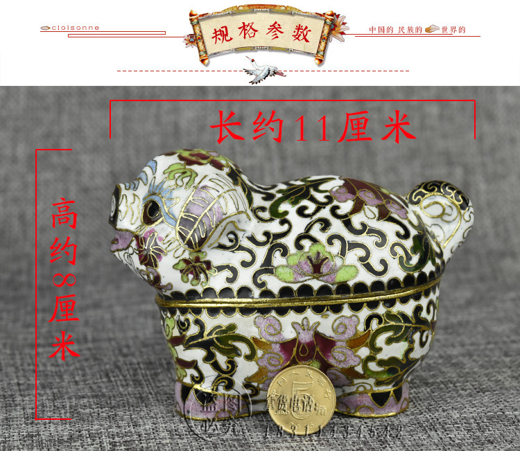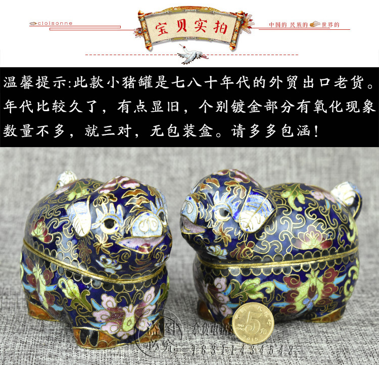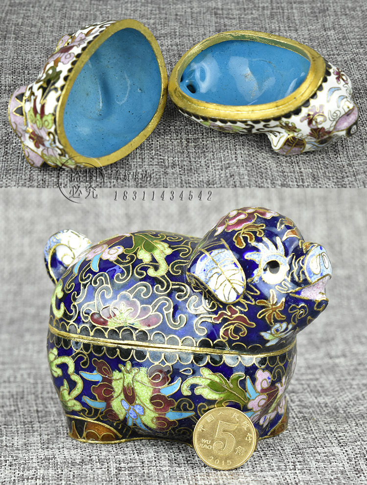 清倉景泰藍老貨磨光生肖豬儲錢罐動物擺件特產手工藝收藏禮品1入