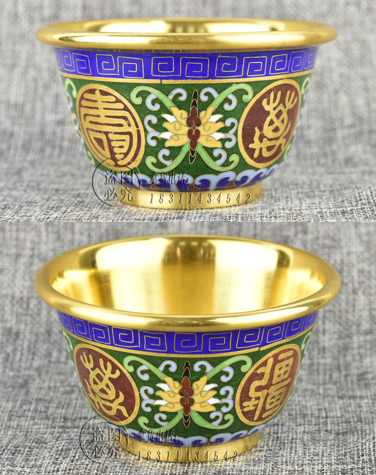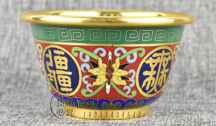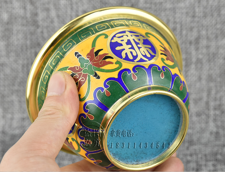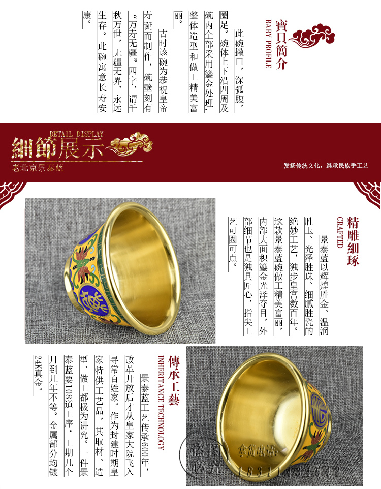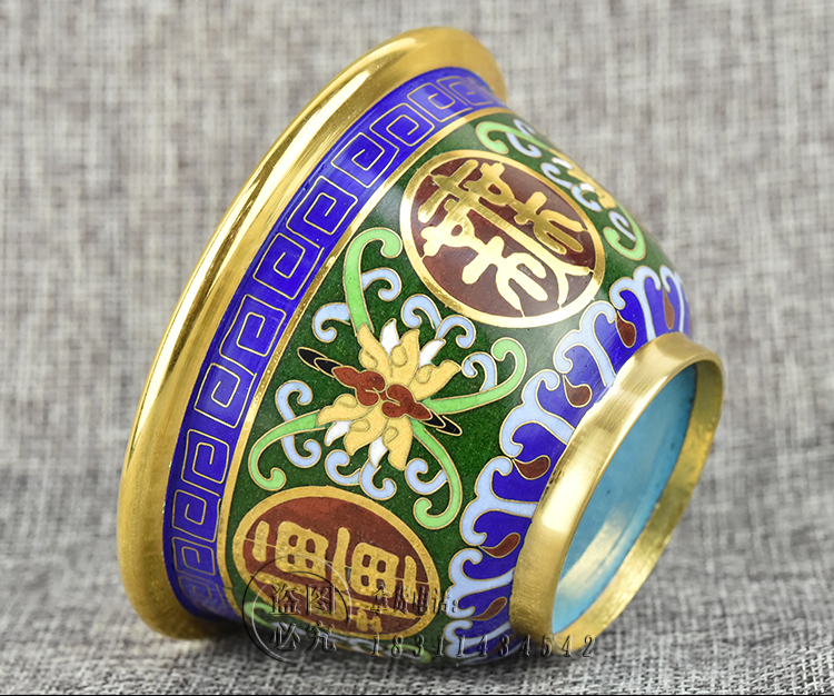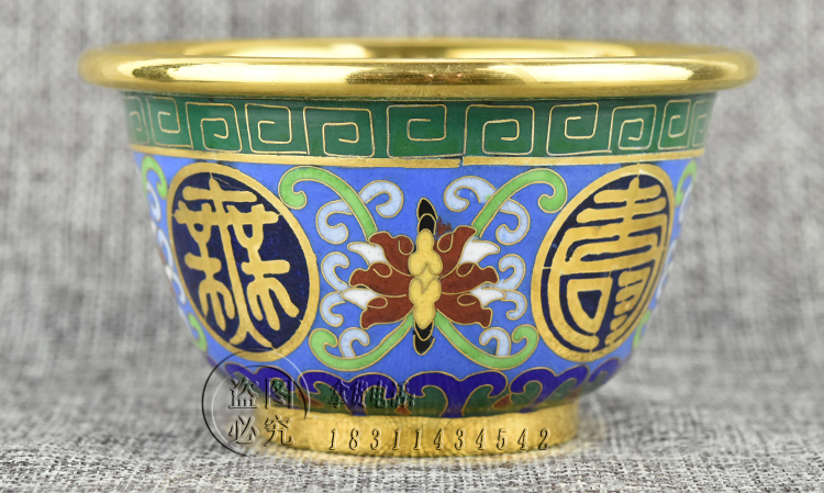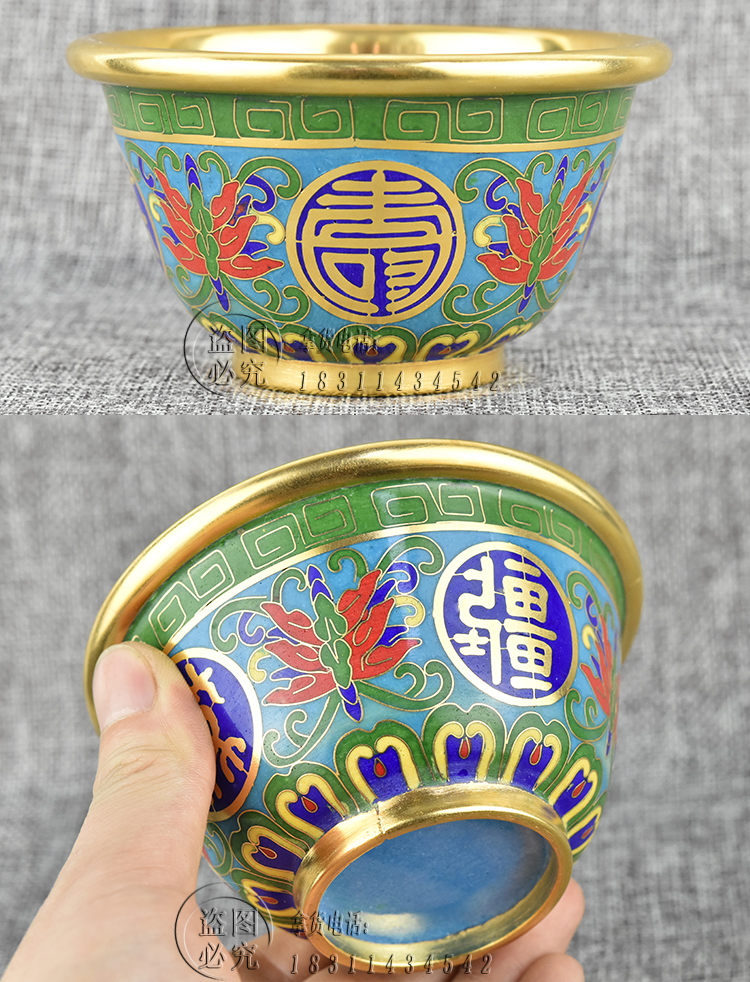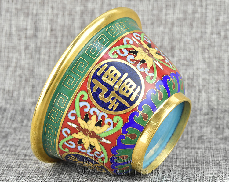 特產景泰藍4寸萬壽無疆金碗銅胎掐絲琺瑯擺件祝壽賀禮品1入