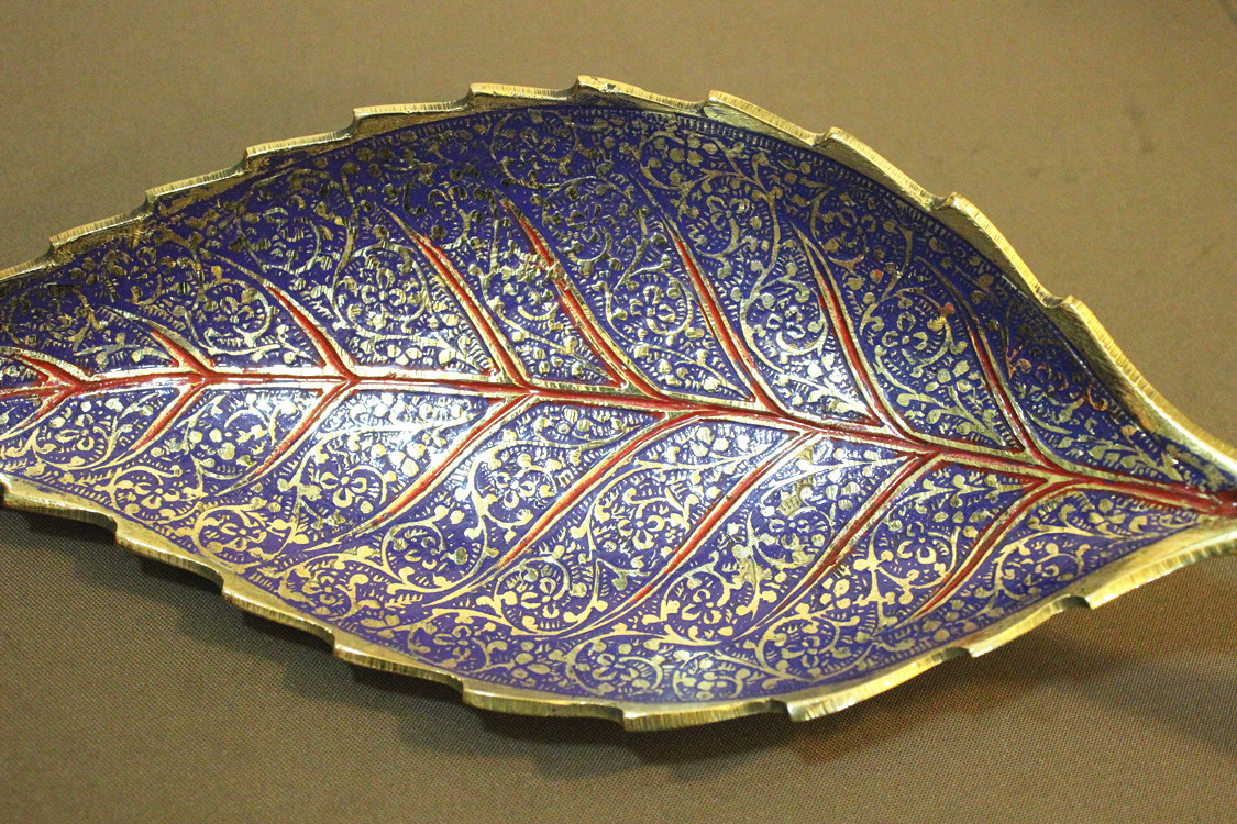 【產品名稱】:印度銅雕彩繪創意鏤空銅果盤,巴基斯坦批發商亞瑟王手工藝品店 【產地】:印度 【材質】:印度銅器 【工藝】: 純手工銅雕彩繪壓花工藝 【歷史簡介】:巴基斯坦銅雕、石雕.木雕手工藝品及印度銅雕手工藝品、手織地毯、掛毯及民族服裝飾品歷史悠久,具有濃郁的伊斯蘭宗教和民族特色。其中鑄銅雕刻手工藝品最具代表和典型性。其制作工藝的歷史可追溯至幾百年前。早在幾百年前土爾其和伊朗開始在石頭上雕刻,后來改變在銅的表面上雕刻,而后這種雕刻技術傳入北印度(NORTH INDIA MURAD ABAD),經這里流傳到印度、巴基斯坦。雕刻而成的瓶、壺、盤以及各種造形的生肖動物,形象逼真,栩栩如生,大多以人們生活用品演變為裝飾工藝品。 巴基斯坦鑄銅雕刻手工藝品從制作工藝上可分為十五種工藝,上千個品種,每件工藝品根據雕刻的需要銅含量約為60%,其他金屬合金含量約占40%,制作程序可分為七大步驟:1.模具翻砂2.零部件焊接3.打磨修整4.拋光電鍍5.劃線雕刻6.刻花處理7.噴、烤漆成型。雕刻手法有:側刀刻、立刀鑿、平刀削。其生產方式以家庭手工作坊為主,子承父業,代代相傳為生產理念。學徒從五、六歲開始從師學藝,直至十五、六歲技藝嫻熟另立門戶終身從事銅制手工藝品雕刻。 【規格】:見圖示