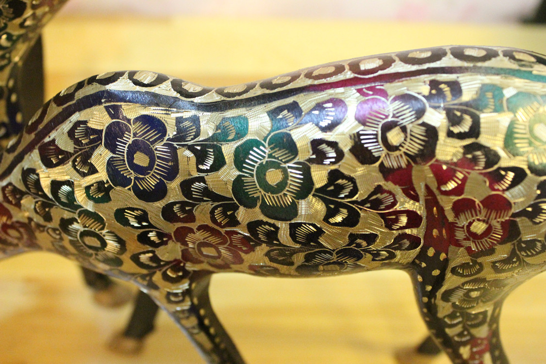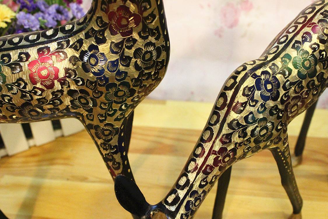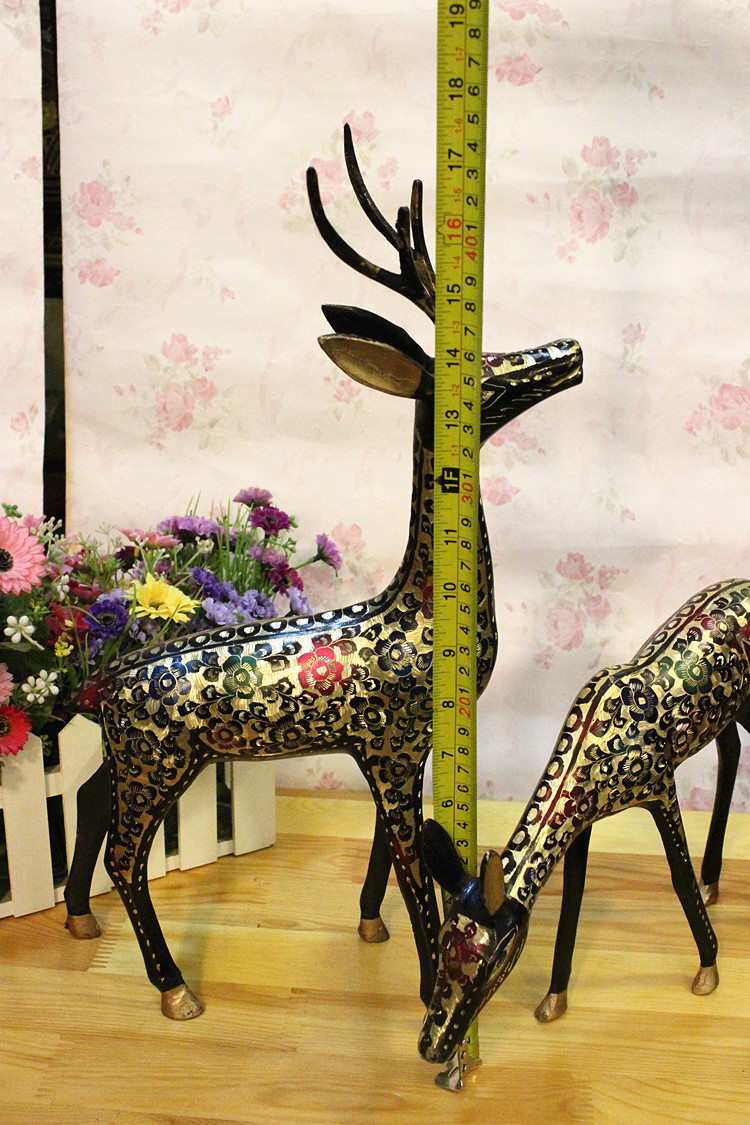 【產品名稱】:巴基斯坦銅雕情侶梅花對鹿 福壽鹿 招財對鹿 巴基斯坦批發商亞瑟王手工藝品店 【產地】:巴基斯坦 【材質】:巴基斯坦銅器 【工藝】: 純手工黑漆彩雪蓮花雕刻工藝 【歷史簡介】:印度銅雕、巴基斯坦銅雕、石雕.木雕手工藝品及印度銅雕手工藝品、手織地毯、掛毯及民族服裝飾品歷史悠久,具有濃郁的伊斯蘭宗教和民族特色。其中鑄銅雕刻手工藝品最具代表和典型性。其制作工藝的歷史可追溯至幾百年前。早在幾百年前土爾其和伊朗開始在石頭上雕刻,后來改變在銅的表面上雕刻,而后這種雕刻技術傳入北印度(NORTH INDIA MURAD ABAD),經這里流傳到巴基斯坦。雕刻而成的瓶、壺、盤以及各種造形的生肖動物,形象逼真,栩栩如生,大多以人們生活用品演變為裝飾工藝品。 巴基斯坦鑄銅雕刻手工藝品從制作工藝上可分為十五種工藝,上千個品種,每件工藝品根據雕刻的需要銅含量約為60%,其他金屬合金含量約占40%,制作程序可分為七大步驟:1.模具翻砂2.零部件焊接3.打磨修整4.拋光電鍍5.劃線雕刻6.刻花處理7.噴、烤漆成型。雕刻手法有:側刀刻、立刀鑿、平刀削。其生產方式以家庭手工作坊為主,子承父業,代代相傳為生產理念。學徒從五、六歲開始從師學藝,直至十五、六歲技藝嫻熟另立門戶終身從事銅制手工藝品雕刻。 【規格】:20英寸 【用途】:聚財聚寶富貴情侶對鹿,喬遷,新婚,生日、節日時饋贈的高檔商務禮品 家居裝飾、賓館、酒店、辦公場所的高檔工藝品擺件。 【買家須知】: 純手工雕刻的每件寶貝的花紋都不同,有各種圖案和花色,隨機發貨,有特殊要求的請聯系客服。本店所有寶貝均為巴基斯坦民間匠人在手工作坊里一刀一鑿雕琢出來的,是百分之百純手工雕刻的,每一件寶貝都凝聚著匠人們的精湛技藝和獨特的匠心。,每一件寶貝都是獨一無二的,絕不雷同。價格單位:一對 1、印度銅雕、巴基斯坦銅雕、木雕手工藝品,是純手工制作,在翻砂、鑄模、零部件焊接、雕刻過程中出現的雕刻細紋、拋光、雜色、缺(不顯眼小坑)、邊緣打磨少許粗糙、噴漆不均勻、輕微裂、包裹體等均為手工雕刻特征,不屬質量問題。經雕刻、點漆處理的小砂眼或小細紋,均屬手工制品允許的瑕疵范疇,不屬質量問題,不影響正常的擺設和觀賞,請追求絕對完美的您,要慎拍或是不拍,以免發生糾紛! 2、印度銅雕、巴基斯坦銅器、巴基斯坦木雕、巴基斯坦手工牛皮鞋等手工藝品的保養方法:臟了,是用牛仔干布子擦拭,不可用水直接泡洗,牛皮鞋可沾水擦洗,(忌雨天穿著)本店所有寶貝均為店家實物拍攝,如相機和拍攝環境的原因出現色差,都以本店實物顏色為準。(不容色差的朋友慎拍或不拍,謝謝!) 3、請在購物前仔細閱讀買家須知,絕對追求好評,我很真實的反應了寶貝的具體情況,如寶貝本身的質量問題,請于簽收當日拍下質量問題所在處,讓我確定后,會及時給您退換。如無任何異議請親們在3日內盡快確認,謝謝! 4、我會精挑細選找最好的,最漂亮的商品給您,真誠為您服務,您的滿意是我最大的心愿!請您在收到寶貝時,當著快遞員面打開郵包,仔細查看后,確認貨物完好無損及滿意后再簽收,如果包裹有損壞請拒絕簽收,并且及時聯系我們。 5、印度銅雕、巴基斯坦銅雕、木雕手工藝品都用的是英國計量尺寸英寸,多少會有些偏差,因為是手工測量,小件寶貝允許1-4cm的誤差,大件寶貝允許1-8cm的誤差。在這里為了尺度準確均以中國計量單位( 厘米)為準,請親們注意查看哦!謝謝!【備注:1英寸=2.54厘米】 默認物流:申通、韻達、圓通快遞、三到五天到貨,量大價優,物流均送貨上門。如需其他物流,請聯系客服說明。北京時間17點之前拍的訂單當日發貨,17點之后拍的訂單次日發貨。 祝您購物愉快,如有其它問題請聯系掌柜,電話0991-8556985(店),傳真:0991-8556985,18999259173、13325628582 ,旺旺:亞瑟阿夫塔,實體店地址:新疆烏魯木齊國際大巴扎4號樓二樓B-310、311、312店 庫房B-324、325、326、 328庫。