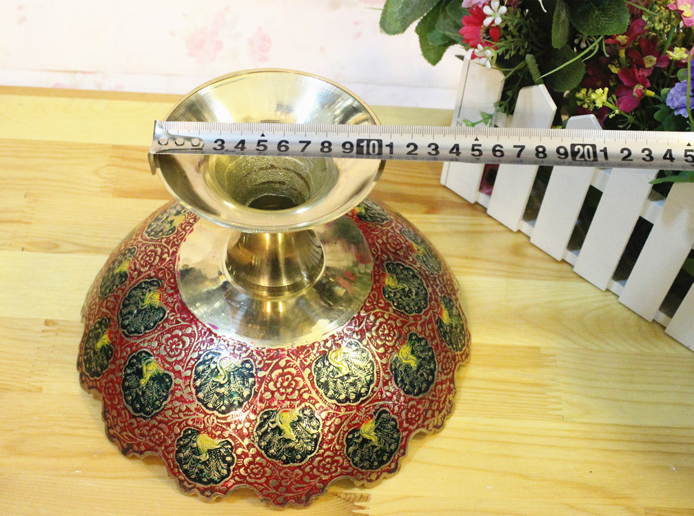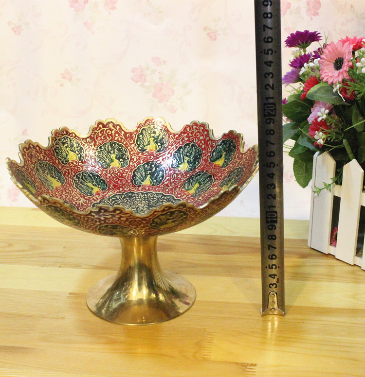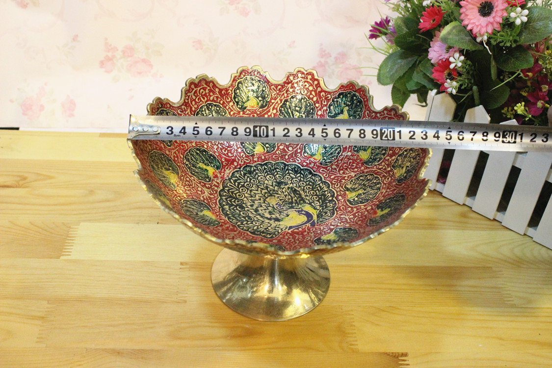 【產品名稱】:印度銅雕彩繪創意銅果盤,巴基斯坦批發商亞瑟王手工藝品店 【產地】:印度 【材質】:印度銅器 【工藝】: 純手工銅雕彩繪孔雀壓花工藝 【歷史簡介】:巴基斯坦銅雕、石雕.木雕手工藝品及印度銅雕手工藝品、手織地毯、掛毯及民族服裝飾品歷史悠久,具有濃郁的伊斯蘭宗教和民族特色。其中鑄銅雕刻手工藝品最具代表和典型性。其制作工藝的歷史可追溯至幾百年前。早在幾百年前土爾其和伊朗開始在石頭上雕刻,后來改變在銅的表面上雕刻,而后這種雕刻技術傳入北印度(NORTH INDIA MURAD ABAD),經這里流傳到印度、巴基斯坦。雕刻而成的瓶、壺、盤以及各種造形的生肖動物,形象逼真,栩栩如生,大多以人們生活用品演變為裝飾工藝品。 巴基斯坦鑄銅雕刻手工藝品從制作工藝上可分為十五種工藝,上千個品種,每件工藝品根據雕刻的需要銅含量約為60%,其他金屬合金含量約占40%,制作程序可分為七大步驟:1.模具翻砂2.零部件焊接3.打磨修整4.拋光電鍍5.劃線雕刻6.刻花處理7.噴、烤漆成型。雕刻手法有:側刀刻、立刀鑿、平刀削。其生產方式以家庭手工作坊為主,子承父業,代代相傳為生產理念。學徒從五、六歲開始從師學藝,直至十五、六歲技藝嫻熟另立門戶終身從事銅制手工藝品雕刻。 【規格】: 【用途】:印度銅雕手工藝家居用品,喬遷,新婚,生日、節日時饋贈的高檔家居禮品 家居裝飾品。 【買家須知】: 純手工雕刻的每件寶貝的花紋都不同,有各種圖案和花色,隨機發貨,有特殊要求的請聯系客服。本店所有寶貝均為巴基斯坦民間匠人在手工作坊里一刀一鑿雕琢出來的,是百分之百純手工雕刻的,每一件寶貝都凝聚著匠人們的精湛技藝和獨特的匠心。,每一件寶貝都是獨一無二的,絕不雷同。價格單位:一個 1、印度銅雕、巴基斯坦銅雕、木雕手工藝品,是純手工制作,在翻砂、鑄模、零部件焊接、雕刻過程中出現的雕刻細紋、拋光、雜色、缺(不顯眼小坑)、邊緣打磨少許粗糙、噴漆不均勻、輕微裂、包裹體等均為手工雕刻特征,不屬質量問題。經雕刻、點漆處理的小砂眼或小細紋,均屬手工制品允許的瑕疵范疇,不屬質量問題,不影響正常的擺設和觀賞,請追求絕對完美的您,要慎拍或是不拍,以免發生糾紛! 2、印度銅雕、巴基斯坦銅器、巴基斯坦木雕、巴基斯坦手工牛皮鞋等手工藝品的保養方法:臟了,是用牛仔干布子擦拭,不可用水直接泡洗,牛皮鞋可沾水擦洗,(忌雨天穿著)本店所有寶貝均為店家實物拍攝,如相機和拍攝環境的原因出現色差,都以本店實物顏色為準。(不容色差的朋友慎拍或不拍,謝謝!) 3、請在購物前仔細閱讀買家須知,絕對追求好評,我很真實的反應了寶貝的具體情況,如寶貝本身的質量問題,請于收貨當日,拍下質量問題所在處,讓我確定后,會及時給您退換。如無任何異議請親們在3日內盡快確認,謝謝! 4、我會精挑細選找最好的,最漂亮的商品給您,真誠為您服務,您的滿意是我最大的心愿!請您在收到寶貝時,當著快遞員面打開郵包,仔細查看后,確認貨物完好無損及滿意后再簽收,如果包裹有損壞請拒絕簽收,并且及時聯系我們。 5、印度銅雕、巴基斯坦銅雕、木雕手工藝品都用的是英國計量尺寸英寸,多少會有些偏差,因為是手工測量,小件寶貝允許1-4cm的誤差,大件寶貝允許1-8cm的誤差。在這里為了尺度準確均以中國計量單位( 厘米)為準,請親們注意查看哦!謝謝!【備注:1英寸=2.54厘米】 默認物流:申通、韻達、圓通快遞、三到五天到貨,物流均送貨上門。如需其他物流,請聯系客服說明。北京時間17點之前拍的訂單當日發貨,17點之后拍的訂單次日發貨。 祝您購物愉快,如有其它問題請聯系掌柜,電話0991-8556985(店),傳真:0991-8556985,18999259173、13325628582 ,旺旺:亞瑟阿夫塔,實體店地址:新疆烏魯木齊國際大巴扎4號樓二樓B-310、311、312店 庫房B-324、325、326、 328庫。