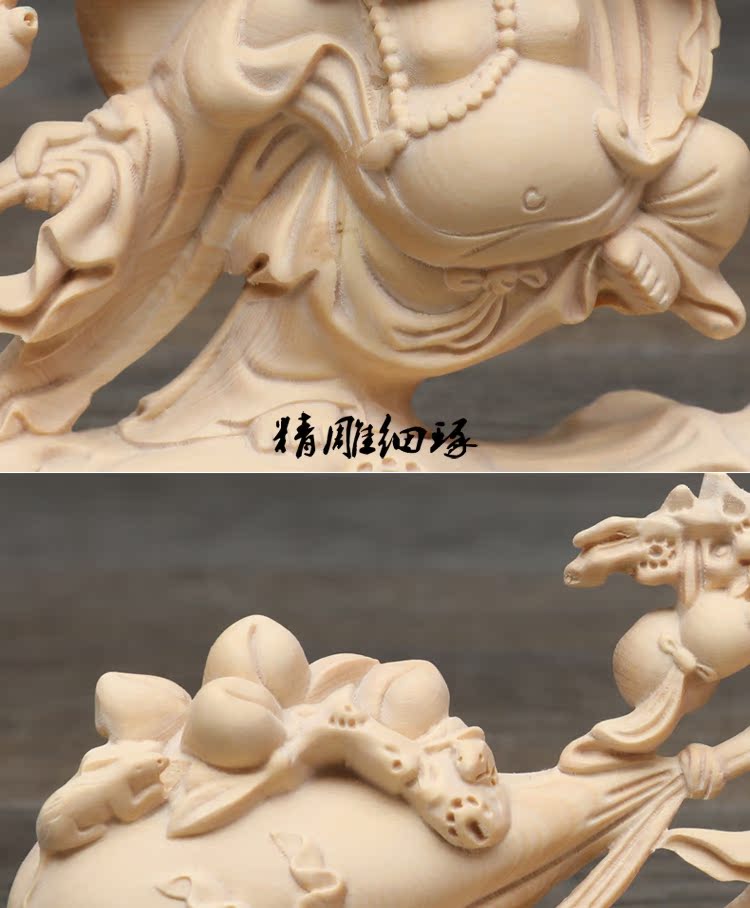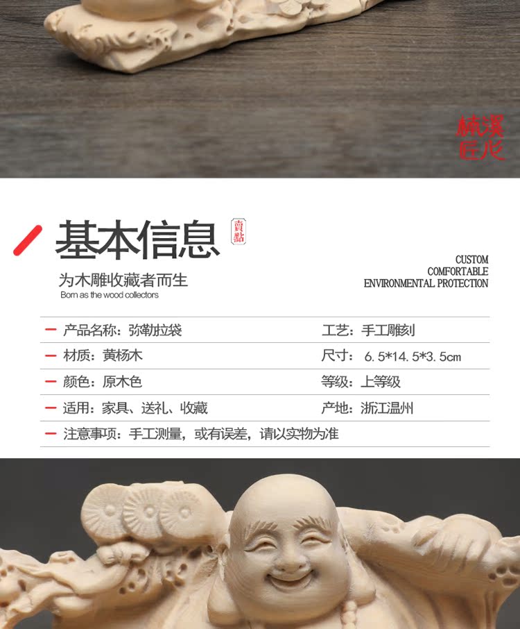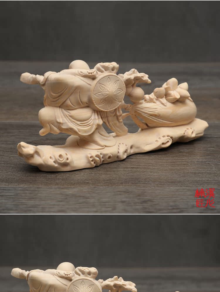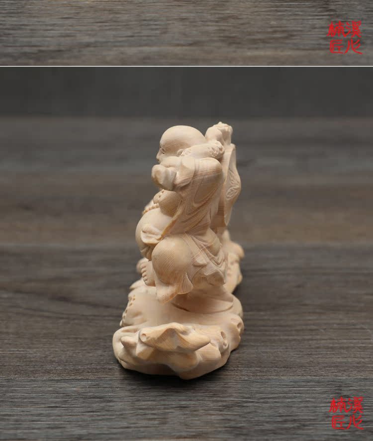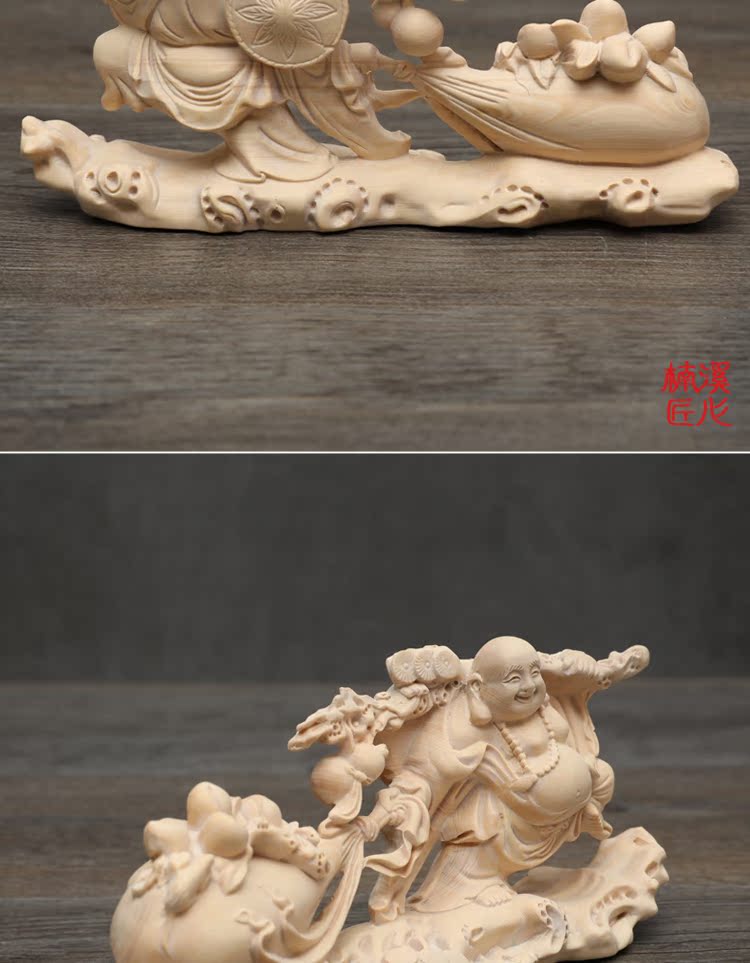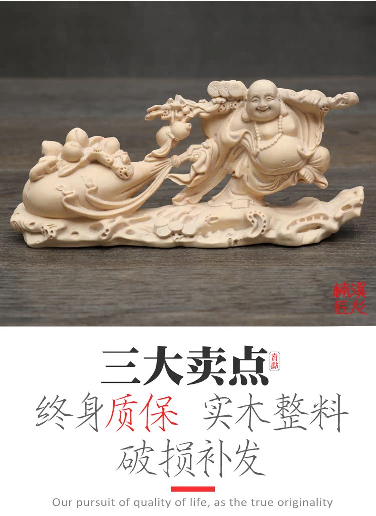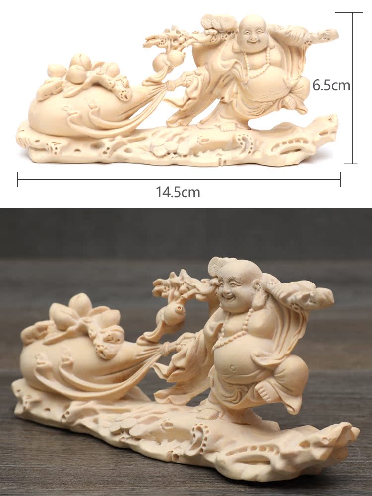 [2]楠溪匠心小葉黃楊木雕刻工藝禮品居家擺件笑佛拉袋彌勒佛福滿乾坤1入