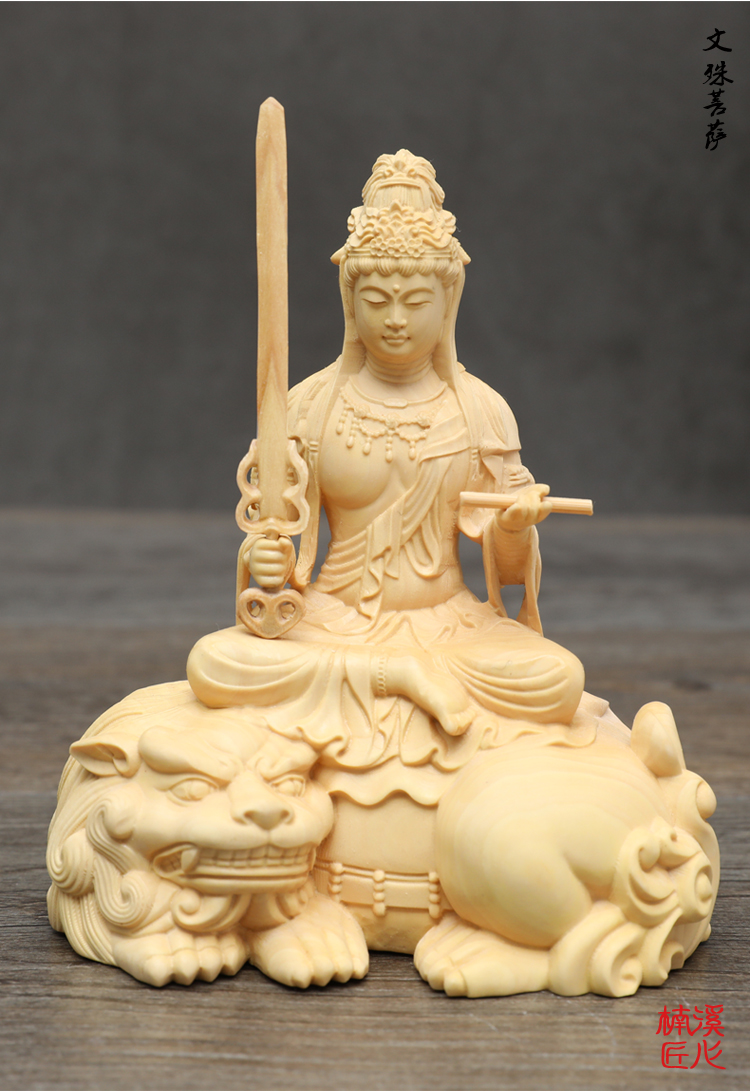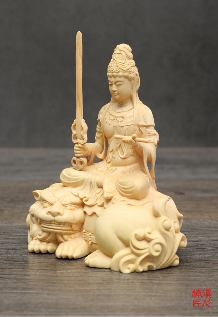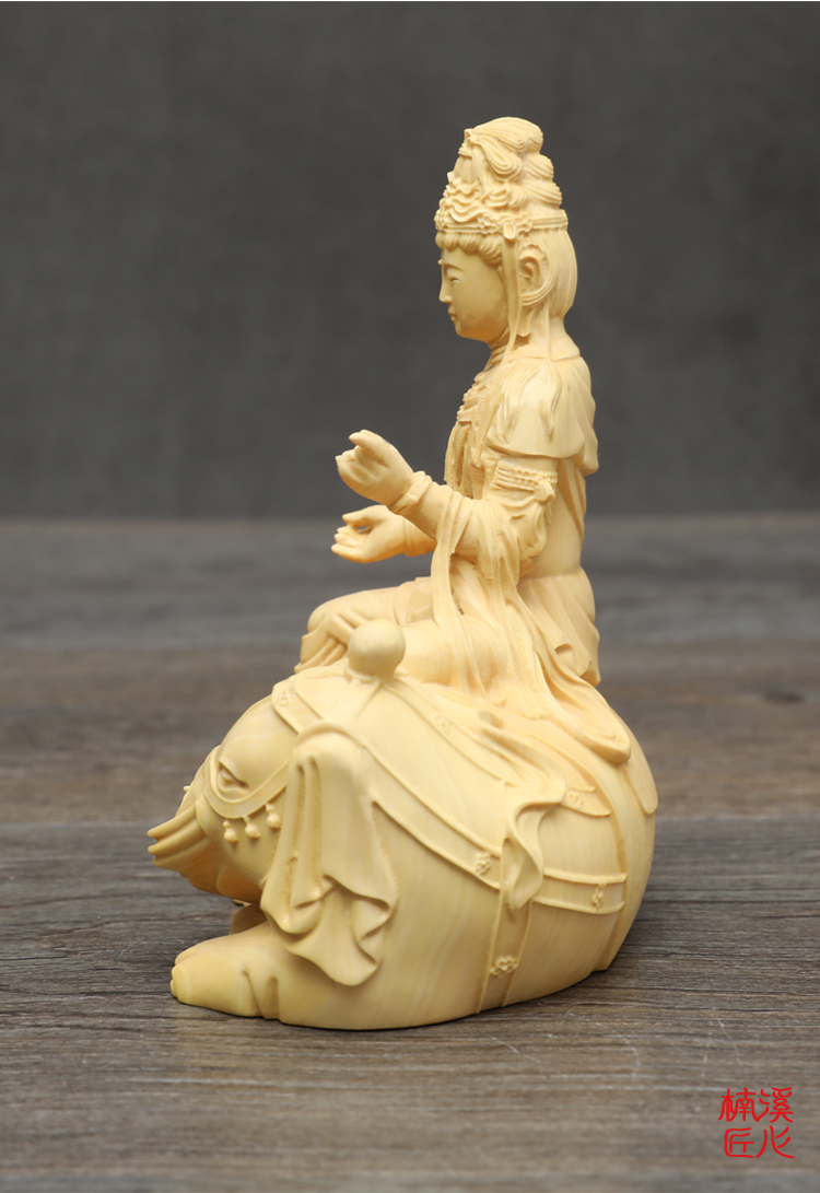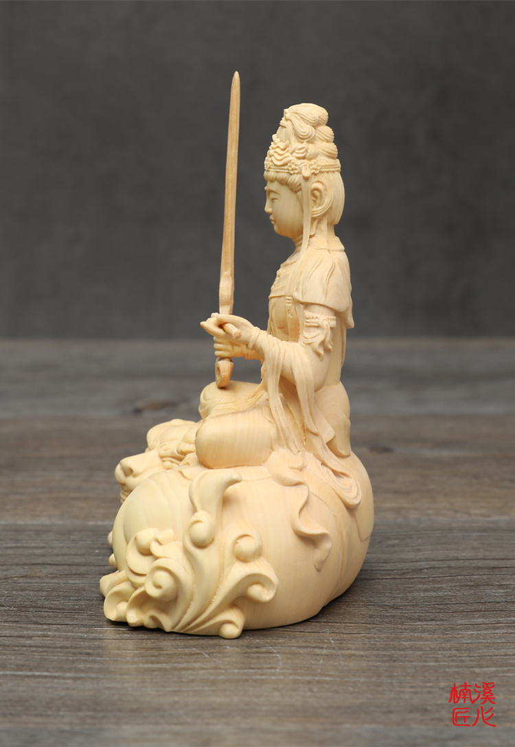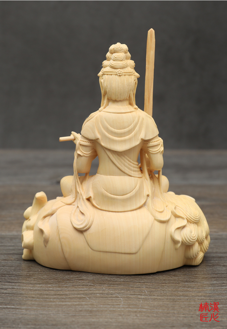 [2]楠溪匠心黃楊木雕文殊普賢菩薩佛像實木神像擺件供奉鎮宅送禮小號1入