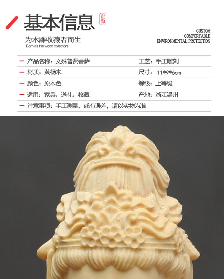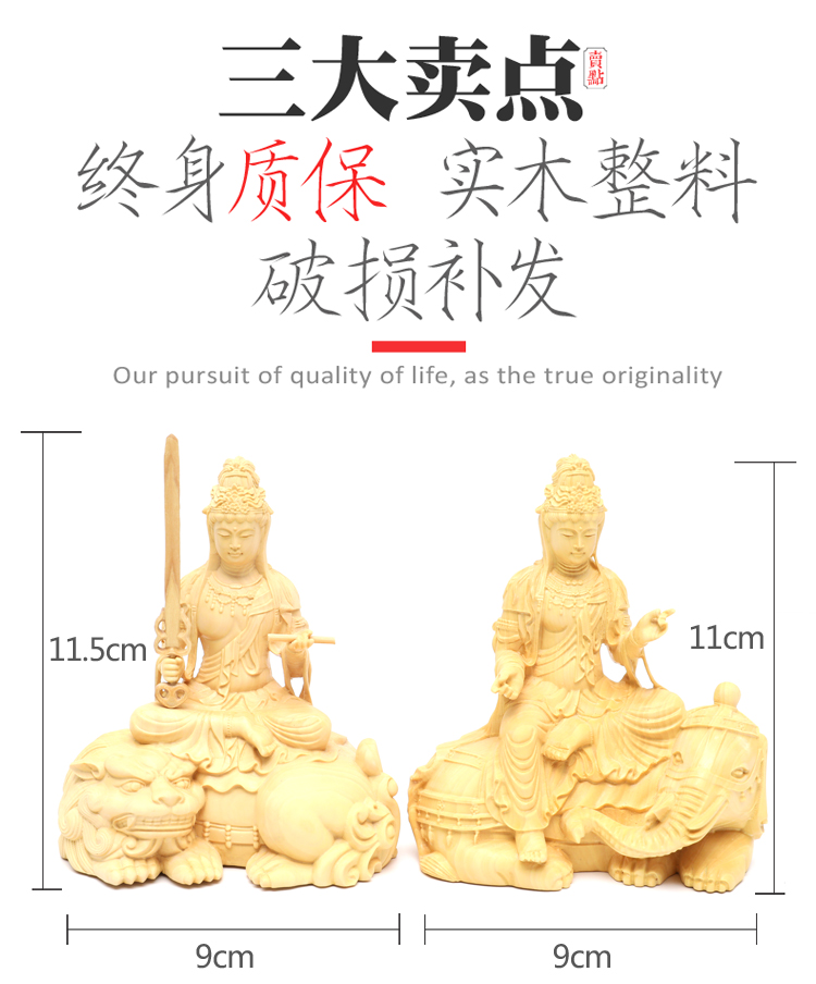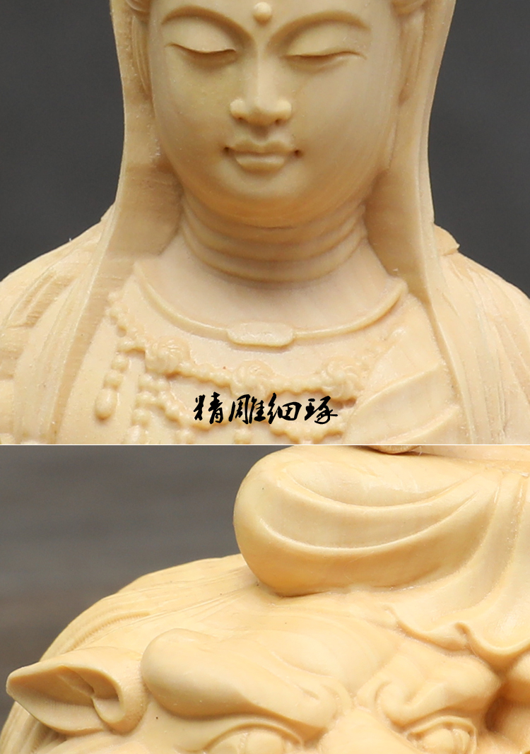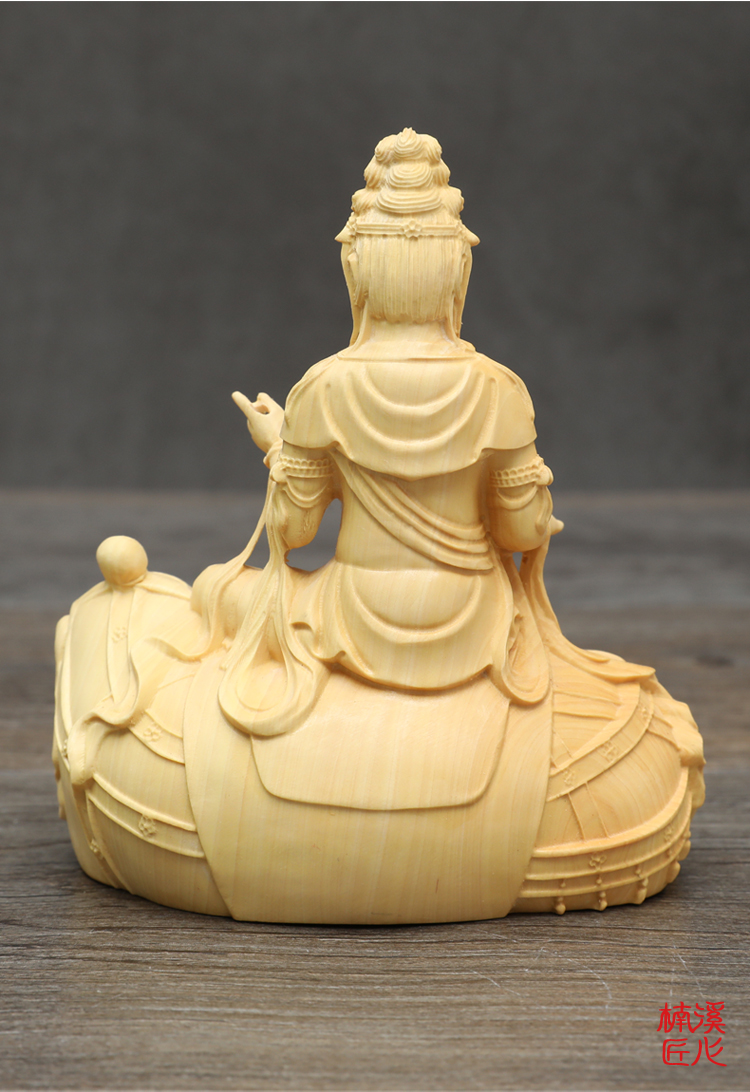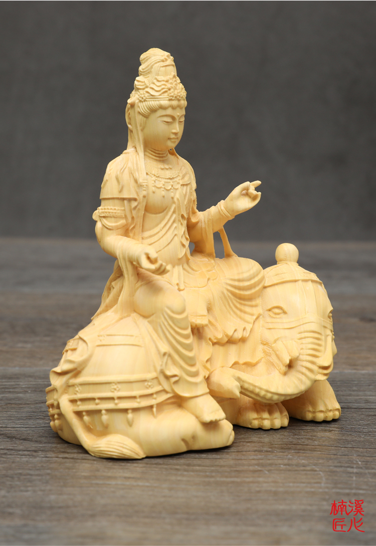 [2]楠溪匠心黃楊木雕文殊普賢菩薩佛像實木神像擺件供奉鎮宅送禮小號1入