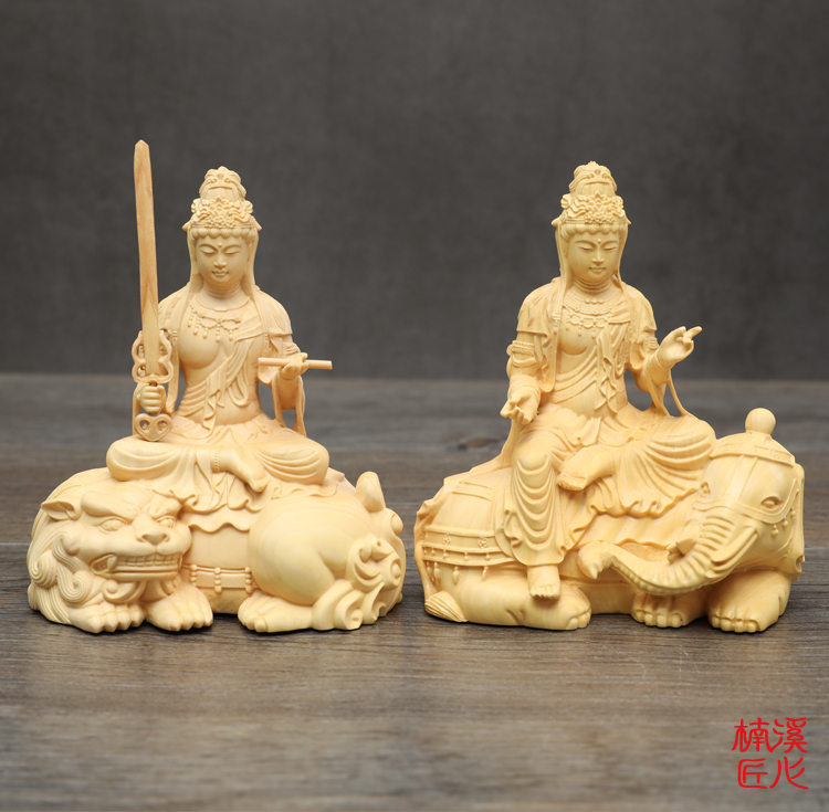 楠溪匠心黃楊木雕文殊普賢菩薩佛像實木神像擺件供奉鎮宅送禮小號1入