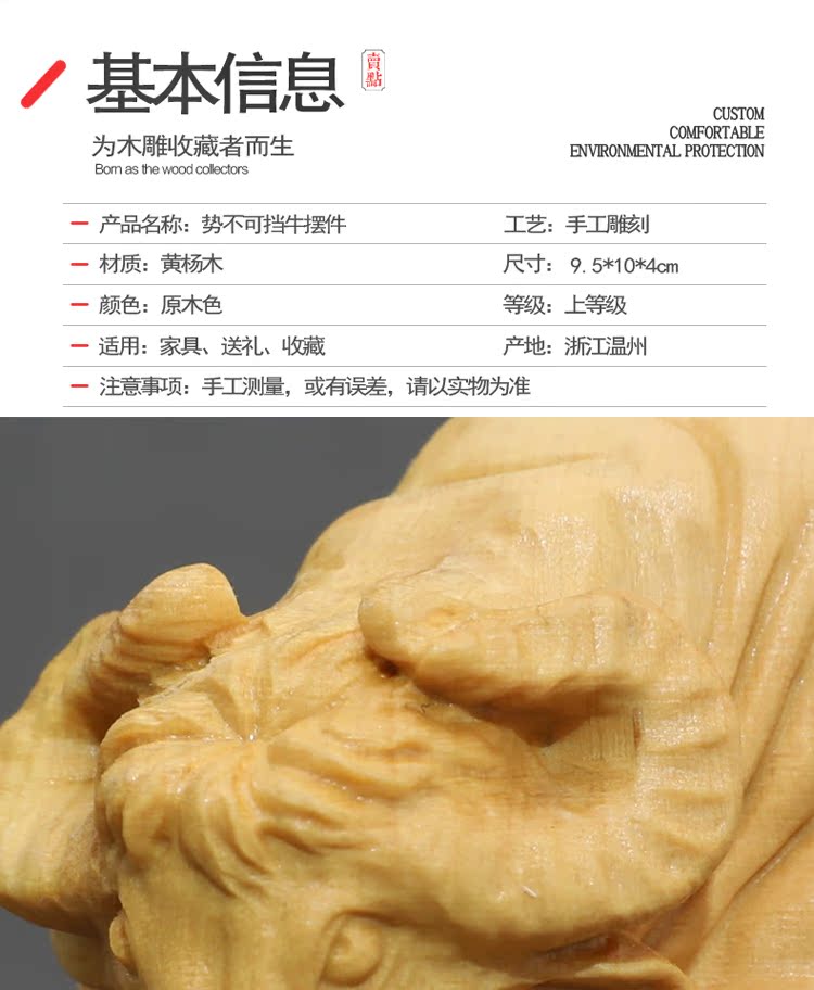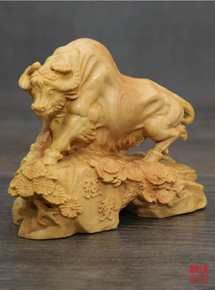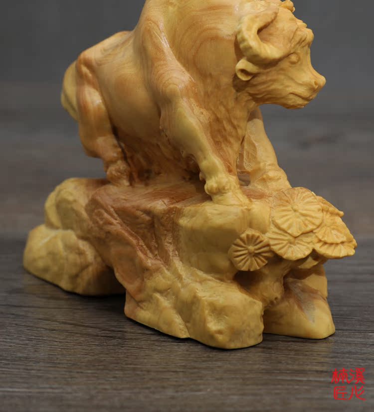 楠溪匠心黃楊木雕牛擺件實木十二生肖牛招財鎮宅風水擺設運勢如虹1入