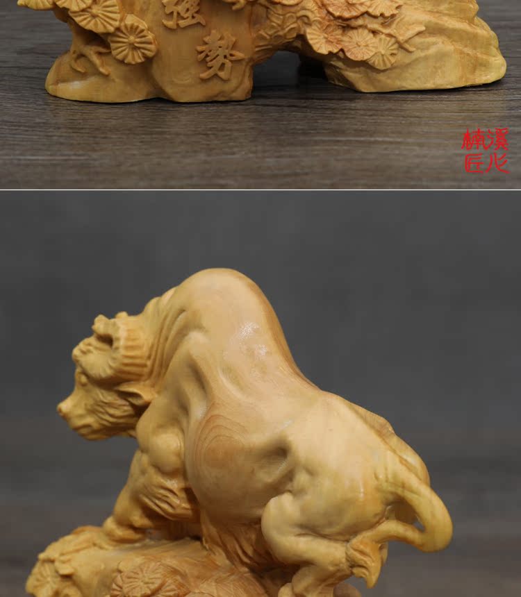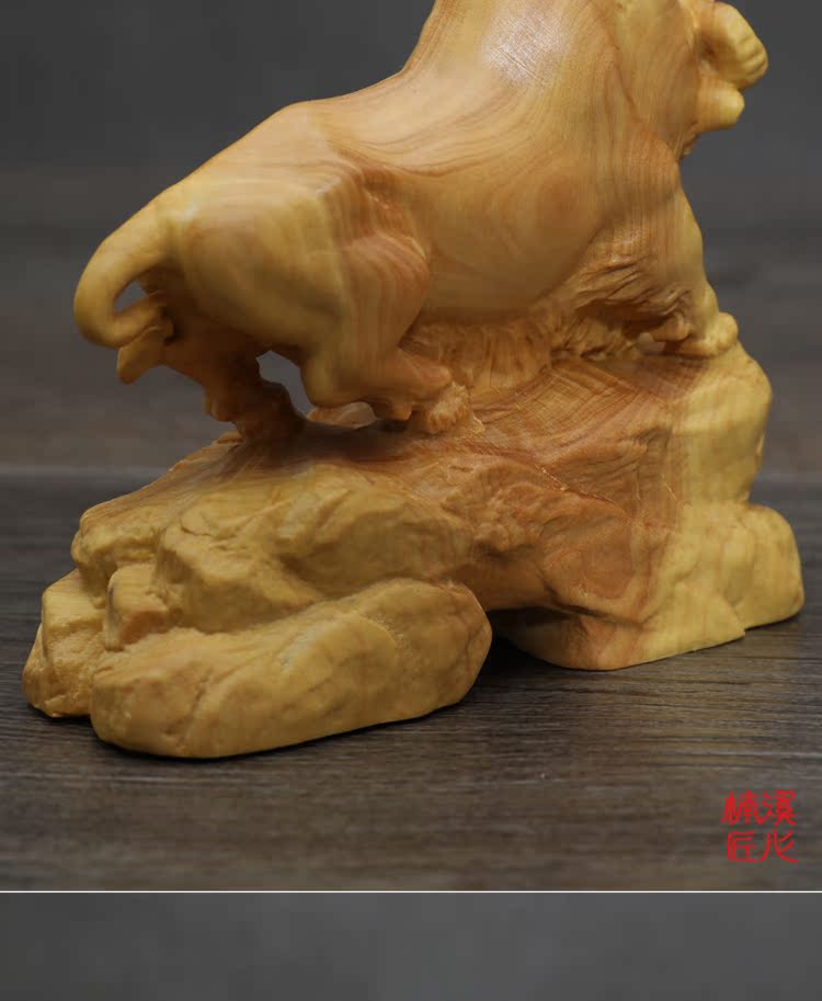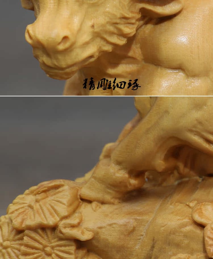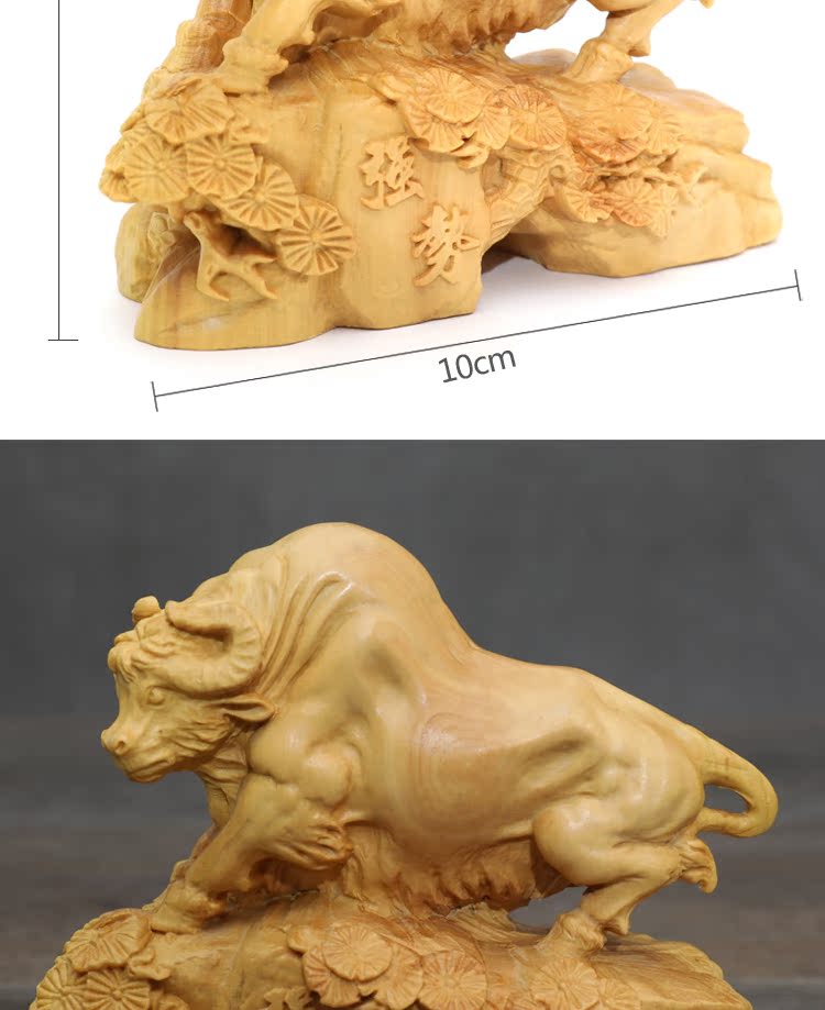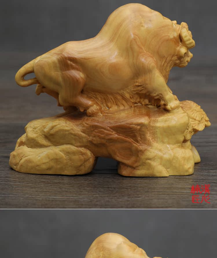 [2]楠溪匠心黃楊木雕牛擺件實木十二生肖牛招財鎮宅風水擺設運勢如虹1入