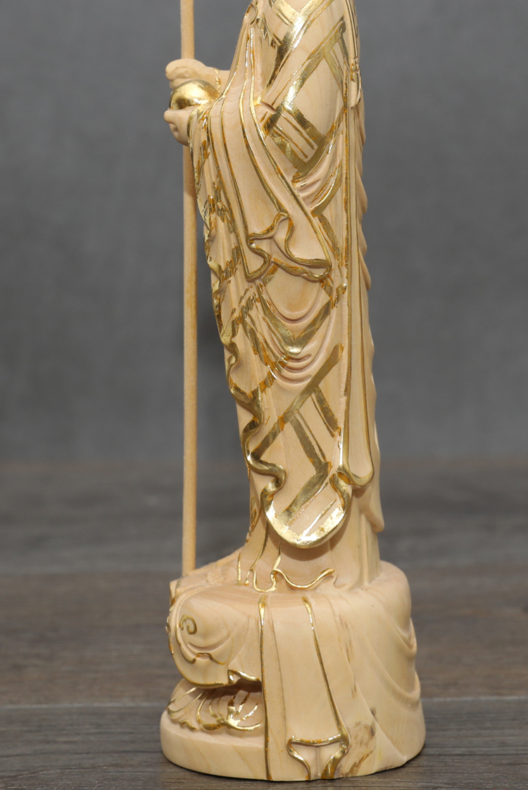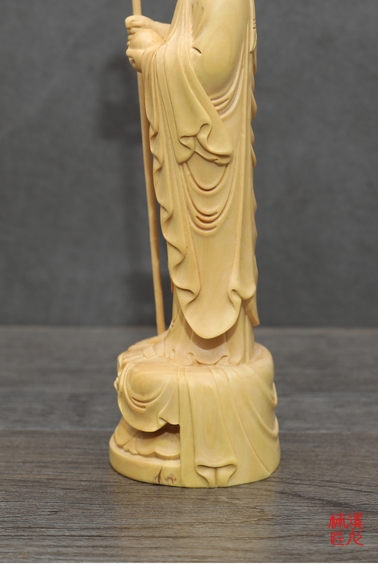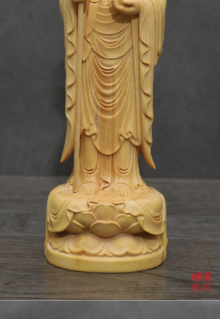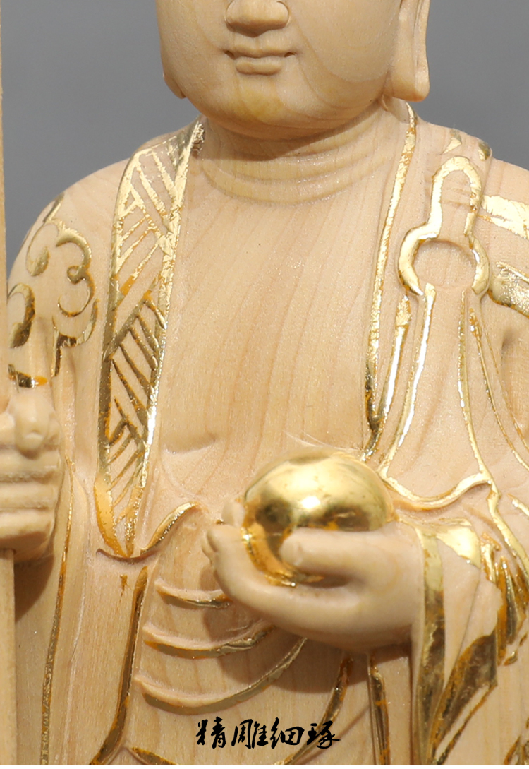 楠溪匠心黃楊木雕大愿地藏王菩薩站佛像禪意居家佛教供奉擺件貼金1入
