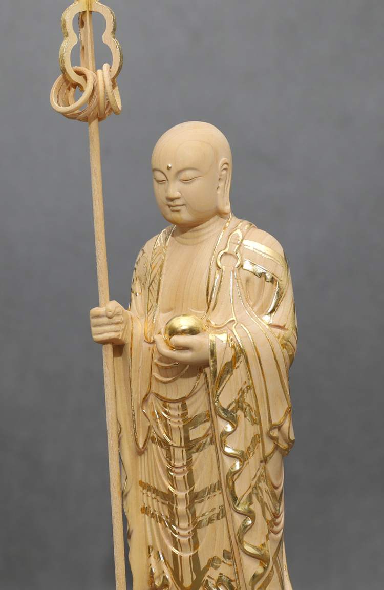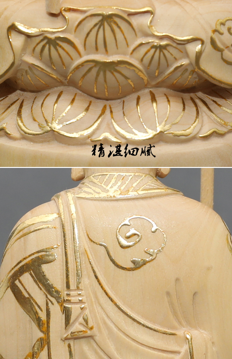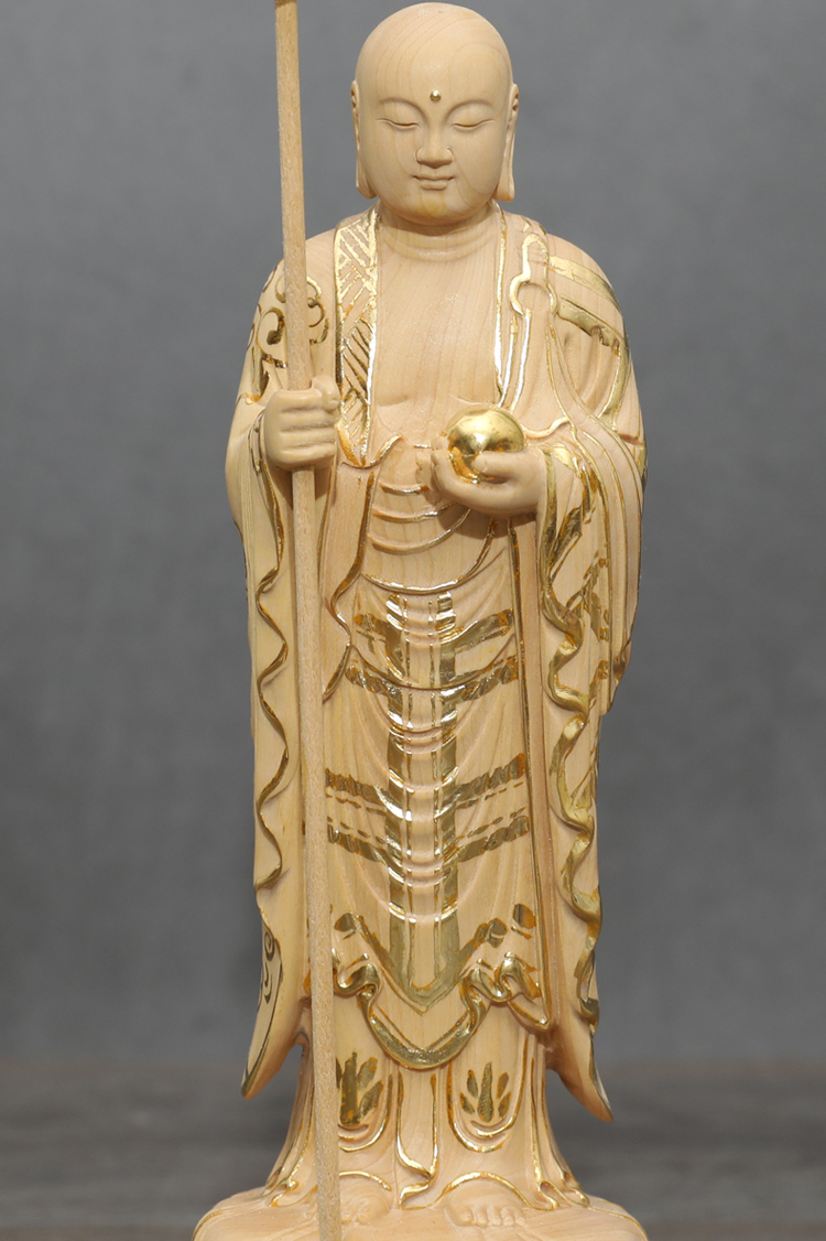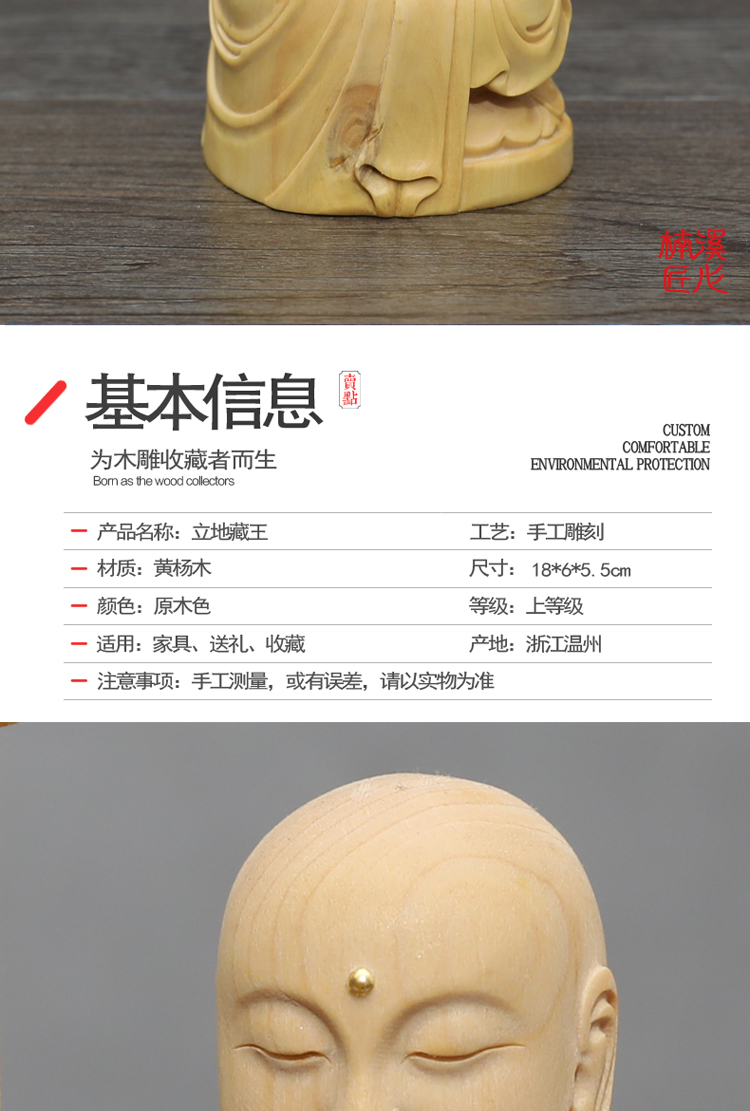 楠溪匠心黃楊木雕大愿地藏王菩薩站佛像禪意居家佛教供奉擺件貼金1入