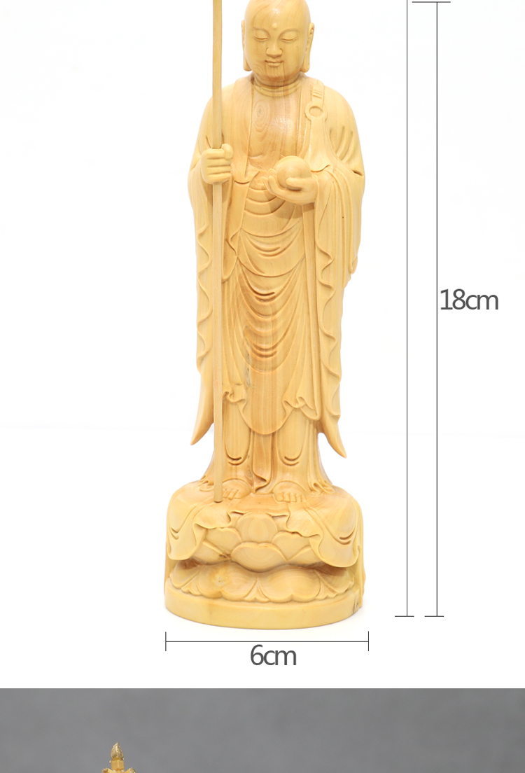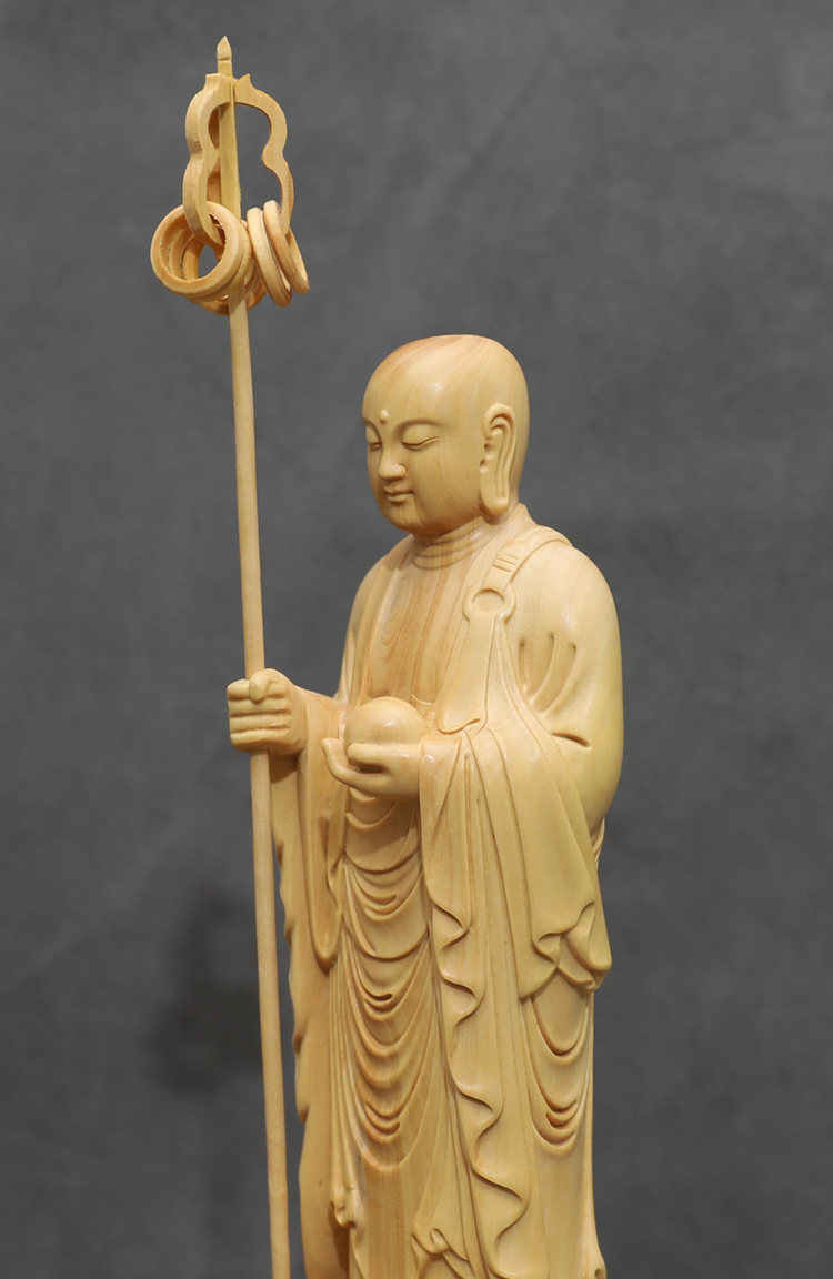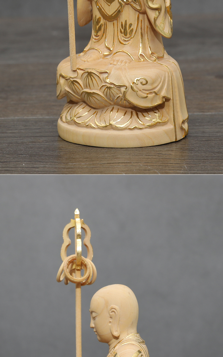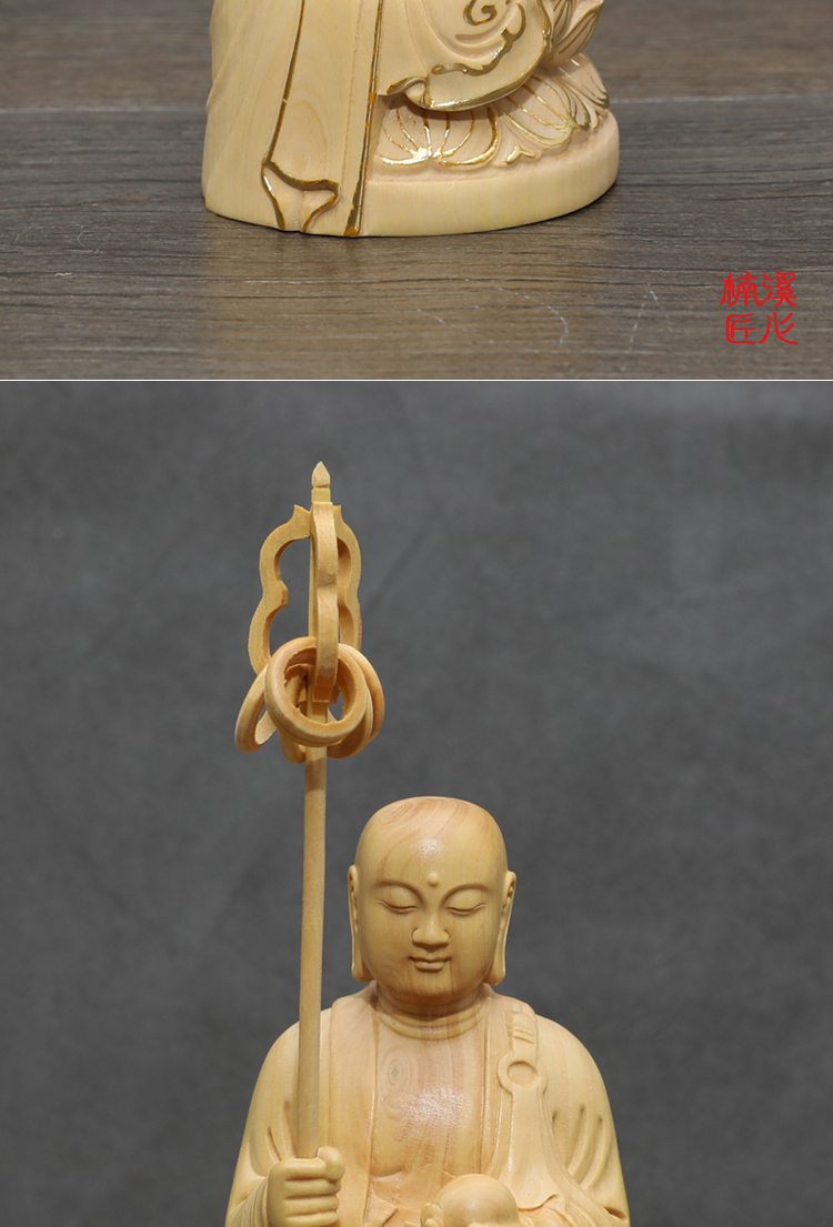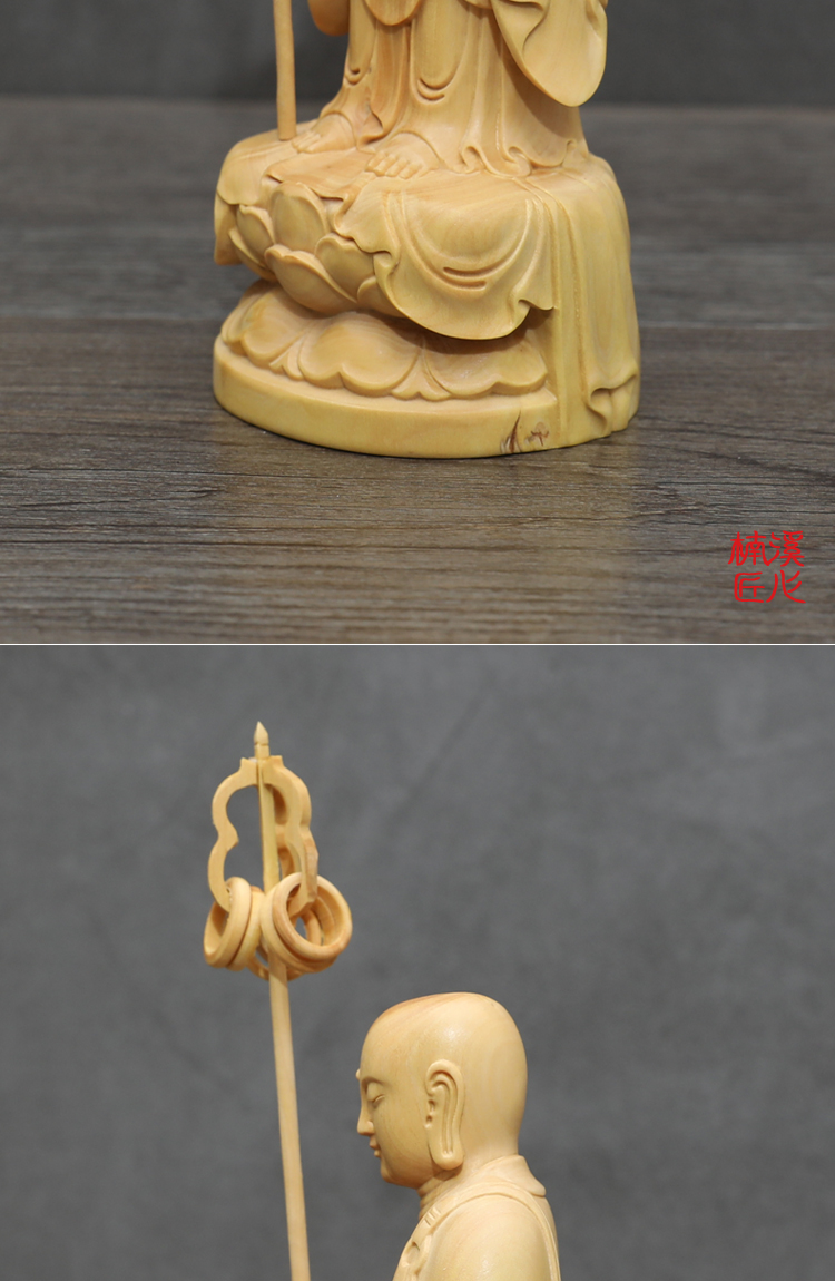 [2]楠溪匠心黃楊木雕大愿地藏王菩薩站佛像禪意居家佛教供奉擺件貼金1入