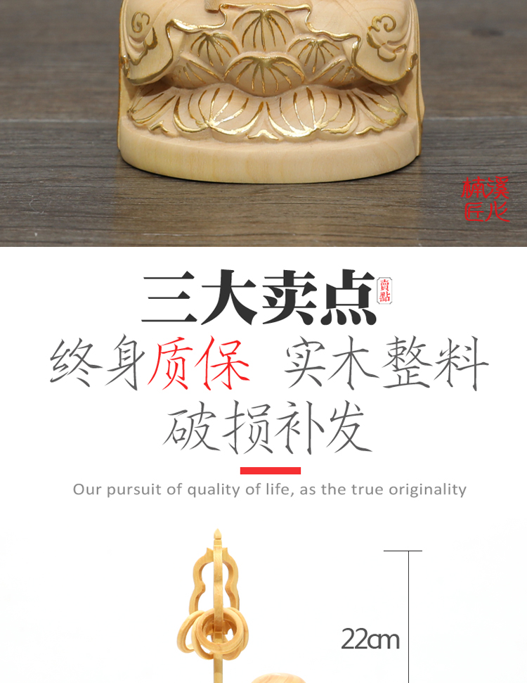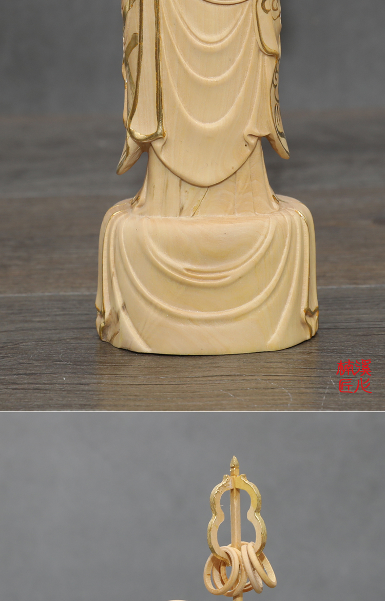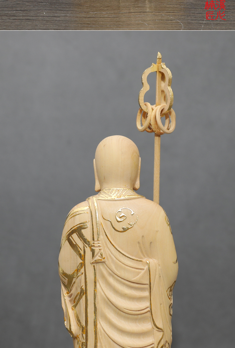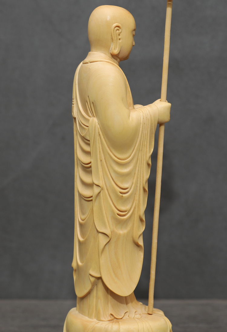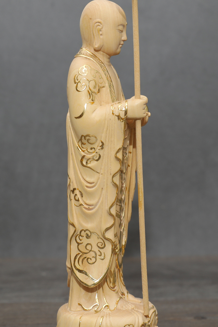 [2]楠溪匠心黃楊木雕大愿地藏王菩薩站佛像禪意居家佛教供奉擺件貼金1入