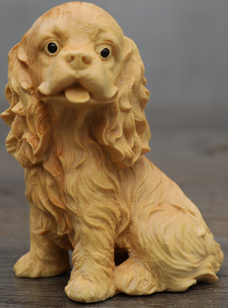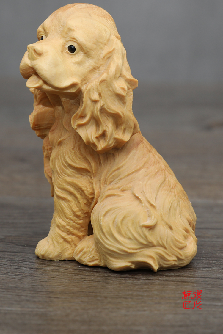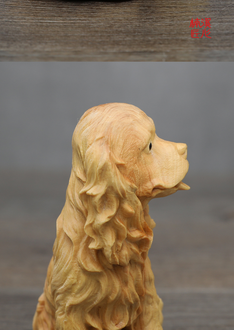 楠溪匠心黃楊木雕金毛狗旺財創意實木動物手把件可愛生肖狗文玩1入