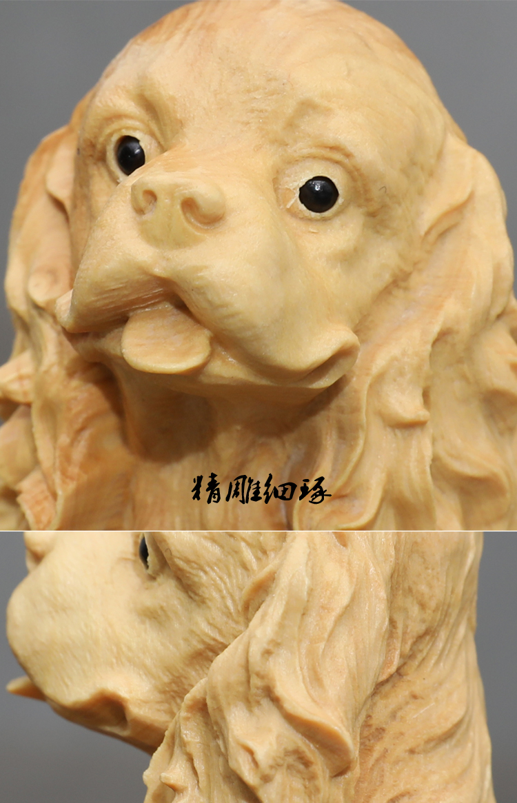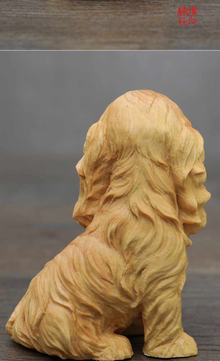 [2]楠溪匠心黃楊木雕金毛狗旺財創意實木動物手把件可愛生肖狗文玩1入