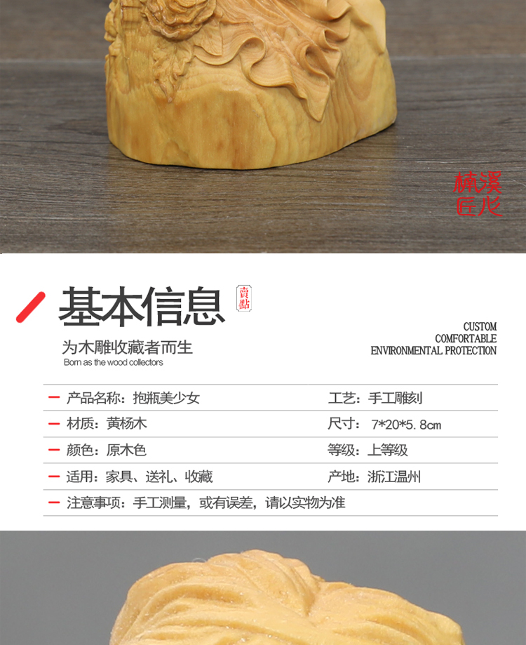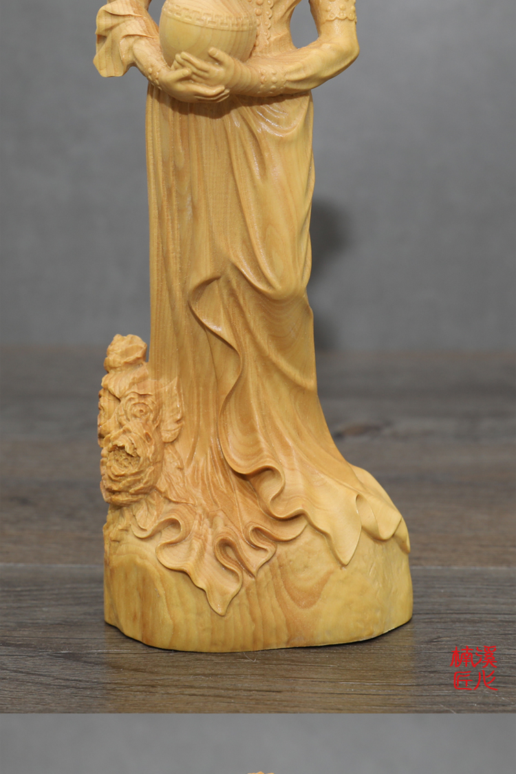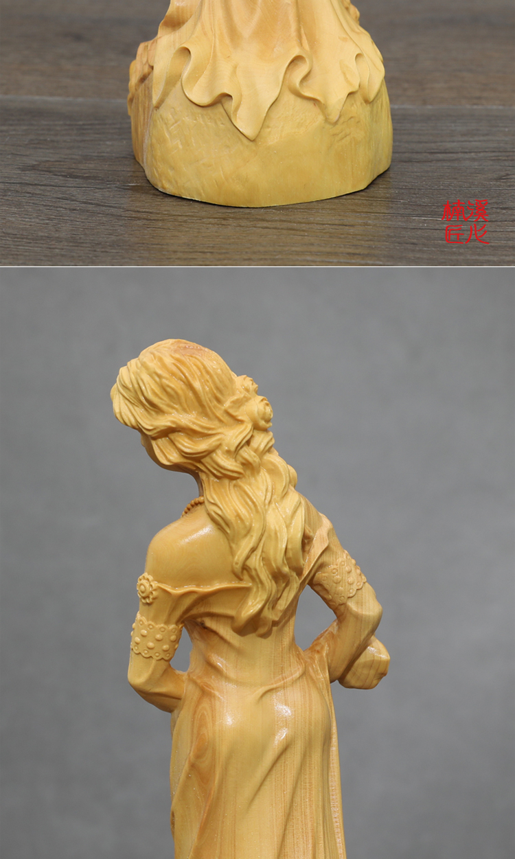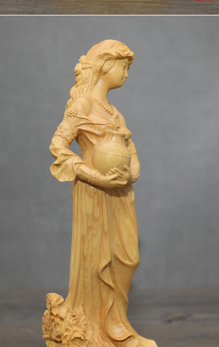 [2]楠溪匠心黃楊木雕抱瓶美少女實木人物創意雕像古代美女中式擺件1入