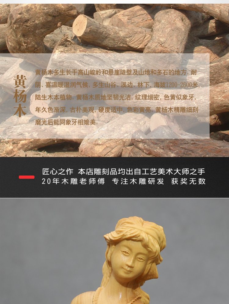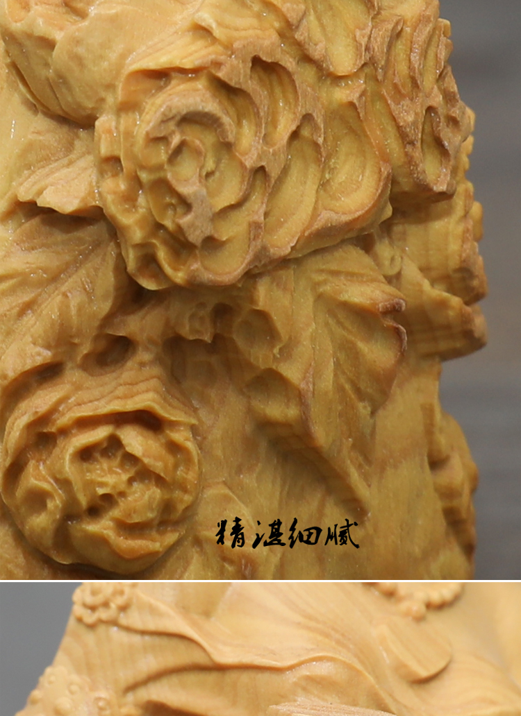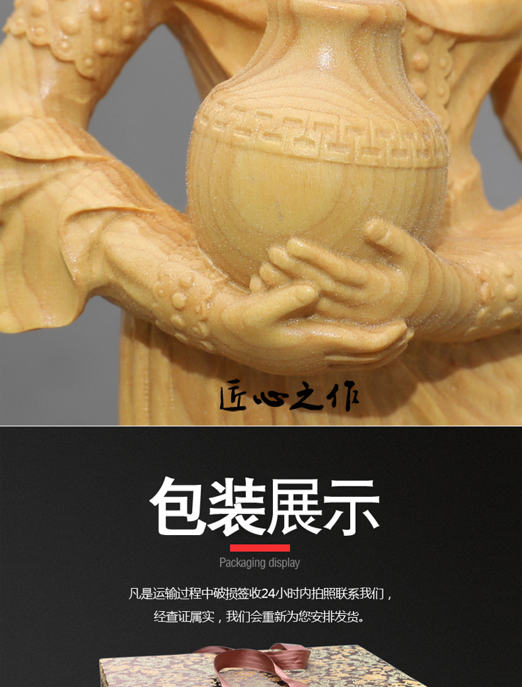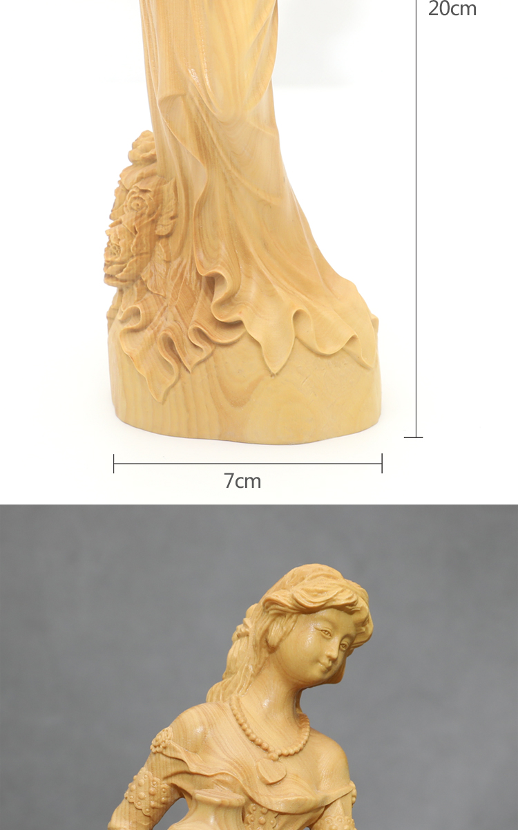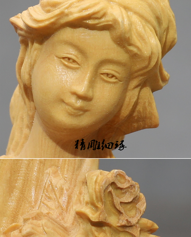 [2]楠溪匠心黃楊木雕抱瓶美少女實木人物創意雕像古代美女中式擺件1入
