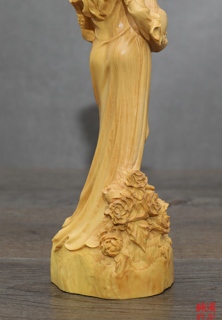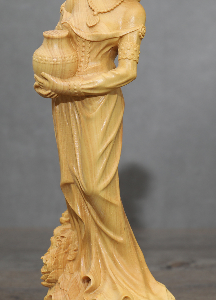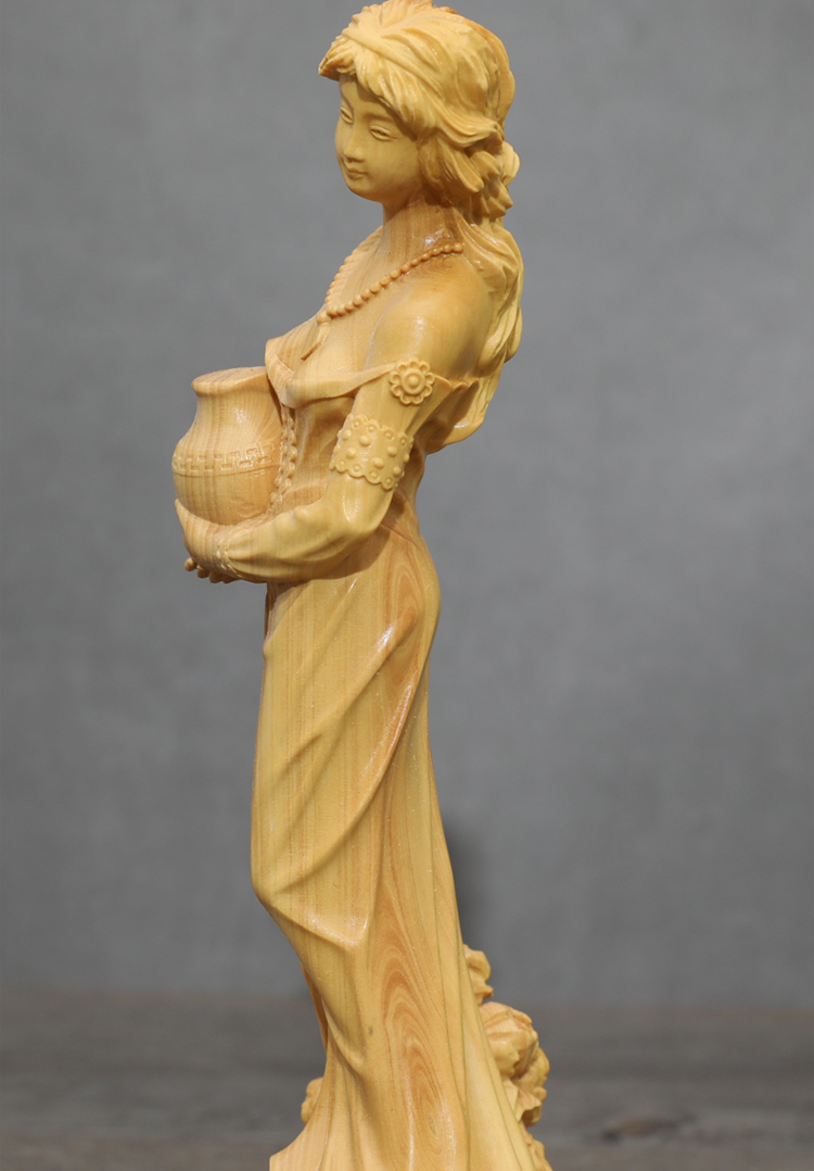楠溪匠心黃楊木雕抱瓶美少女實木人物創意雕像古代美女中式擺件1入