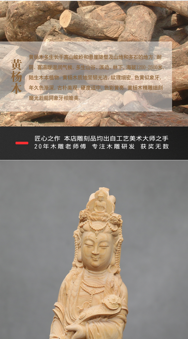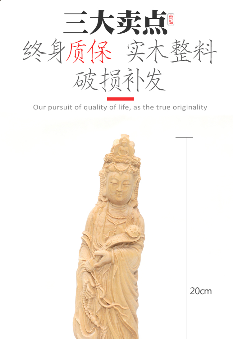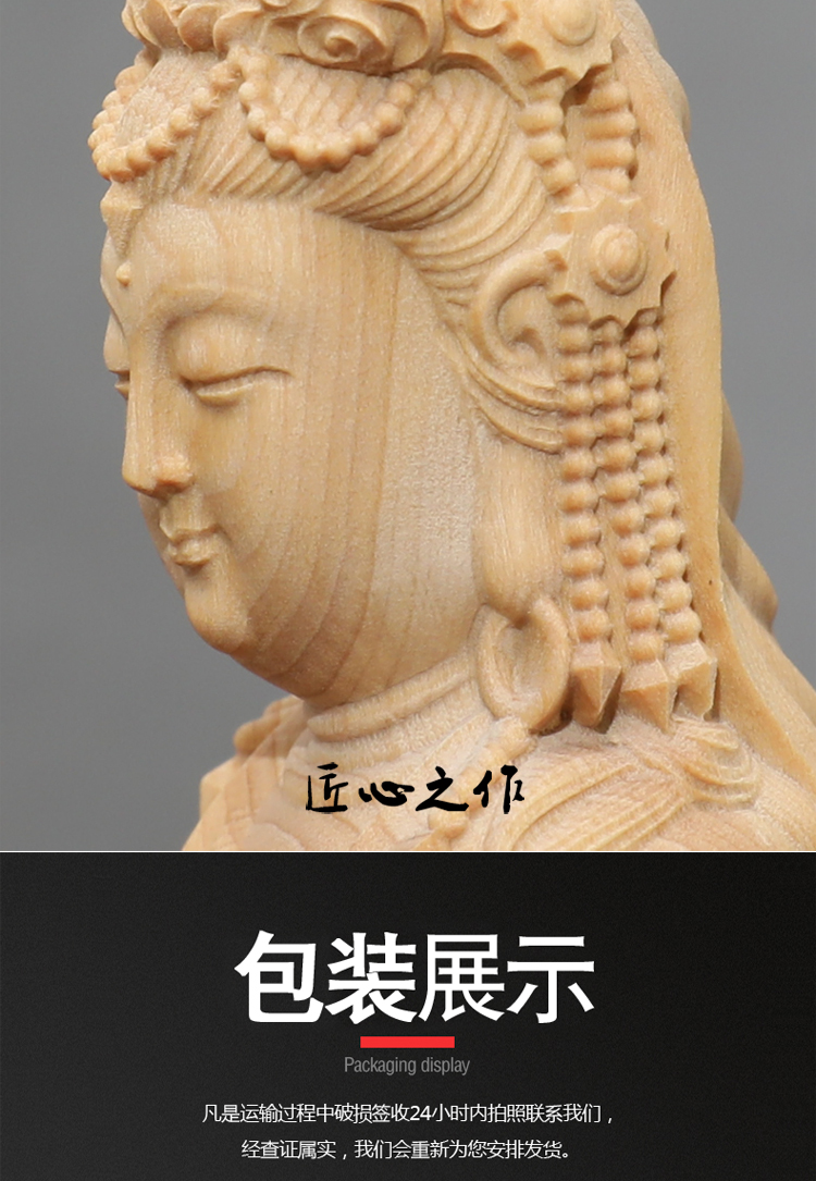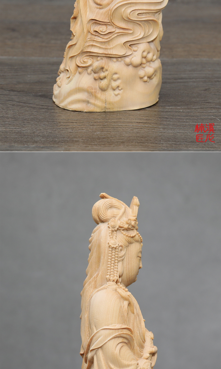 [2]楠溪匠心黃楊木雕如意觀音菩薩佛像天然實木雕刻吉祥如意風水擺件1入