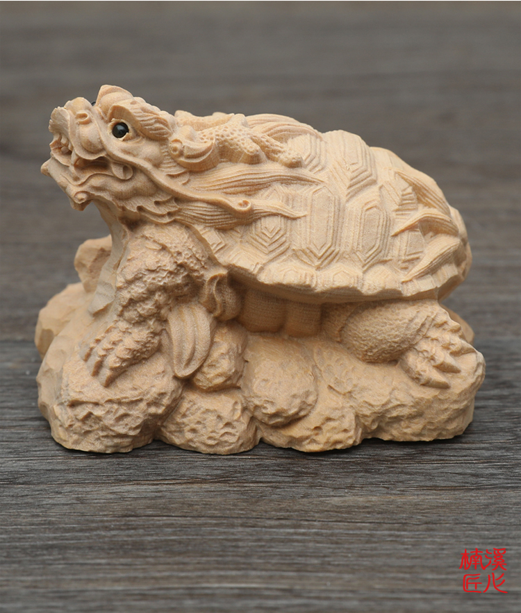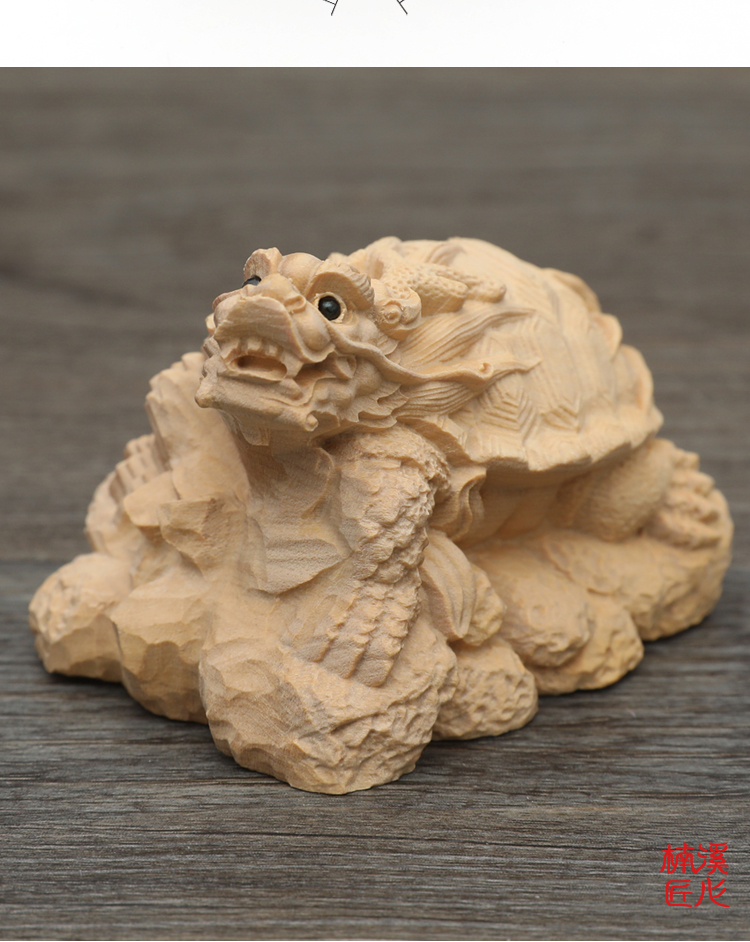 楠溪匠心黃楊木雕龍龜擺件招財辟邪鎮宅化煞祥瑞風水祈福吉祥物1入