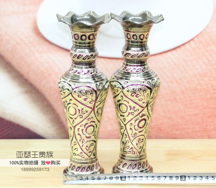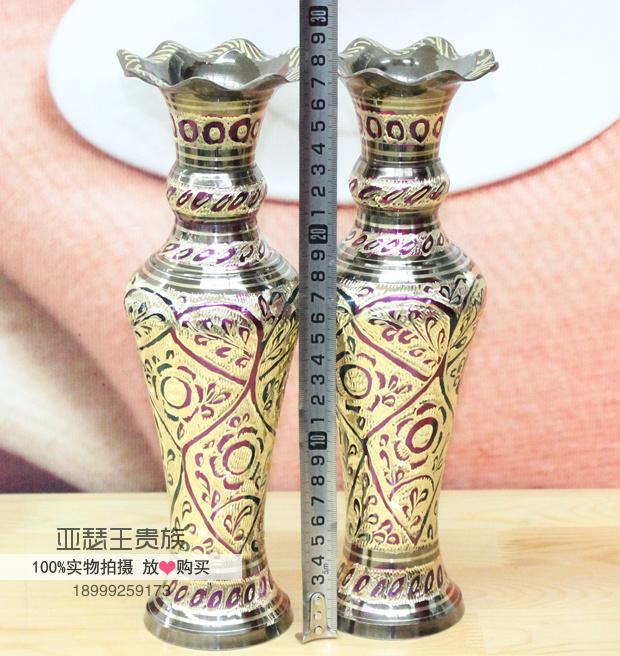 【產品名稱】:巴基斯坦銅雕花瓶,吉祥如意、招財進寶平安富貴瓶 巴基斯坦批發商亞瑟王手工藝品店 【產地】:巴基斯坦 【材質】:巴基斯坦銅器 【工藝】: 純手工新漆彩工藝 【歷史簡介】:巴基斯坦銅雕、石雕.木雕手工藝品及印度銅雕手工藝品、手織地毯、掛毯及民族服裝飾品歷史悠久,具有濃郁的伊斯蘭宗教和民族特色。其中鑄銅雕刻手工藝品最具代表和典型性。其制作工藝的歷史可追溯至幾百年前。早在幾百年前土爾其和伊朗開始在石頭上雕刻,后來改變在銅的表面上雕刻,而后這種雕刻技術傳入北印度(NORTH INDIA MURAD ABAD),經這里流傳到印度、巴基斯坦。雕刻而成的瓶、壺、盤以及各種造形的生肖動物,形象逼真,栩栩如生,大多以人們生活用品演變為裝飾工藝品。 巴基斯坦鑄銅雕刻手工藝品從制作工藝上可分為十五種工藝,上千個品種,每件工藝品根據雕刻的需要銅含量約為60%,其他金屬合金含量約占40%,制作程序可分為七大步驟:1.模具翻砂2.零部件焊接3.打磨修整4.拋光電鍍5.劃線雕刻6.刻花處理7.噴、烤漆成型。雕刻手法有:側刀刻、立刀鑿、平刀削。其生產方式以家庭手工作坊為主,子承父業,代代相傳為生產理念。學徒從五、六歲開始從師學藝,直至十五、六歲技藝嫻熟另立門戶終身從事銅制手工藝品雕刻。 【規格】:14英寸(見圖示) 【用途】:巴基斯坦銅雕手工藝品,平安聚財聚寶富貴瓶,鎮宅辟邪,喬遷,新婚,生日、節日、開業慶典時饋贈的高檔商務禮品 家居裝飾、賓館、酒店、辦公場所的異域風格工藝品擺件。 【買家須知】: 純手工雕刻的每件寶貝的花紋都不同,有各種圖案和花色,隨機發貨,有特殊要求的請聯系客服。本店所有寶貝均為巴基斯坦民間匠人在手工作坊里一刀一鑿雕琢出來的,是百分之百純手工雕刻的,每一件寶貝都凝聚著匠人們的精湛技藝和獨特的匠心。,每一件寶貝都是獨一無二的,絕不雷同。價格單位:一對 1、印度銅雕、巴基斯坦銅雕、木雕手工藝品,是純手工制作,在翻砂、鑄模、零部件焊接、雕刻過程中出現的雕刻細紋、拋光、雜色、缺(不顯眼小坑)、邊緣打磨少許粗糙、噴漆不均勻、輕微裂、包裹體等均為手工雕刻特征,不屬質量問題。經雕刻、點漆處理的小砂眼或小細紋,均屬手工制品允許的瑕疵范疇,不屬質量問題,不影響正常的擺設和觀賞,請追求絕對完美的您,要慎拍或是不拍,以免發生糾紛! 2、印度銅雕、巴基斯坦銅器、巴基斯坦木雕、巴基斯坦手工牛皮鞋等手工藝品的保養方法:臟了,是用牛仔干布子擦拭,不可用水直接泡洗,牛皮鞋可沾水擦洗,(忌雨天穿著)本店所有寶貝均為店家實物拍攝,如相機和拍攝環境的原因出現色差,都以本店實物顏色為準。(不容色差的朋友慎拍或不拍,謝謝!) 3、請在購物前仔細閱讀買家須知,絕對追求好評,我很真實的反應了寶貝的具體情況,如寶貝本身的質量問題,請于收貨當日拍下質量問題所在處,讓我確定后,會及時給您退換。如無任何異議請親們在3日內盡快確認,謝謝! 4、我會精挑細選找最好的,最漂亮的商品給您,真誠為您服務,您的滿意是我最大的心愿!請您在收到寶貝時,當著快遞員面打開郵包,仔細查看后,確認貨物完好無損及滿意后再簽收,(簽收后即為確認寶貝無質量問題一概不退貨)如您不在讓人代收,寶貝發生的一切事由,請自行解決!如要換貨來回郵費自理。 5、印度銅雕、巴基斯坦銅雕、木雕手工藝品都用的是英國計量尺寸英寸,多少會有些偏差,因為是手工測量,小件寶貝允許1-4cm的誤差,大件寶貝允許1-8cm的誤差。在這里為了尺度準確均以中國計量單位( 厘米)為準,請親們注意查看哦!謝謝!【備注:1英寸=2.54厘米】 6、默認物流:申通、韻達、圓通快遞、三到五天到貨,量大批發可以選擇中郵、德邦,七到十五天到貨,物流均送貨上門。如需其他物流,請聯系客服說明。 7、祝您購物愉快,如有其它問題請聯系掌柜,電話0991-8556985(店),傳真:0991-8556985,18999259173、13325628582 ,旺旺:亞瑟阿夫塔, 實體店地址:新疆烏魯木齊國際大巴扎4號樓二樓B-310、311、312店 庫房B-324、325、326、 328庫。