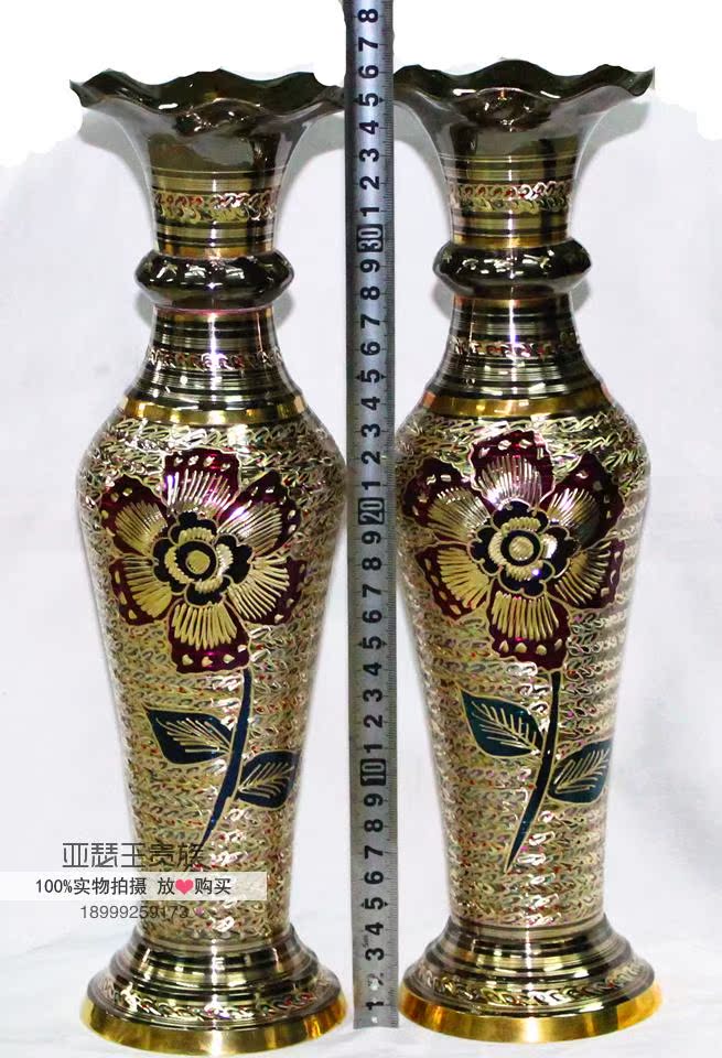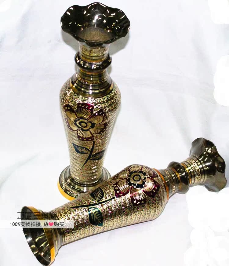 【產品名稱】:巴基斯坦銅雕波口日式情侶花瓶,吉祥如意、平安富貴瓶 巴基斯坦批發商亞瑟王手工藝品店 【產地】:巴基斯坦 【材質】:巴基斯坦銅器 【工藝】: 純手工銅雕漆彩雪蓮花工藝 【歷史簡介】:巴基斯坦銅雕、石雕.木雕手工藝品及印度銅雕手工藝品、手織地毯、掛毯及民族服裝飾品歷史悠久,具有濃郁的伊斯蘭宗教和民族特色。其中鑄銅雕刻手工藝品最具代表和典型性。其制作工藝的歷史可追溯至幾百年前。早在幾百年前土爾其和伊朗開始在石頭上雕刻,后來改變在銅的表面上雕刻,而后這種雕刻技術傳入北印度(NORTH INDIA MURAD ABAD),經這里流傳到印度、巴基斯坦。雕刻而成的瓶、壺、盤以及各種造形的生肖動物,形象逼真,栩栩如生,大多以人們生活用品演變為裝飾工藝品。 巴基斯坦鑄銅雕刻手工藝品從制作工藝上可分為十五種工藝,上千個品種,每件工藝品根據雕刻的需要銅含量約為60%,其他金屬合金含量約占40%,制作程序可分為七大步驟:1.模具翻砂2.零部件焊接3.打磨修整4.拋光電鍍5.劃線雕刻6.刻花處理7.噴、烤漆成型。雕刻手法有:側刀刻、立刀鑿、平刀削。其生產方式以家庭手工作坊為主,子承父業,代代相傳為生產理念。學徒從五、六歲開始從師學藝,直至十五、六歲技藝嫻熟另立門戶終身從事銅制手工藝品雕刻。 【規格】:16英寸 【用途】:巴基斯坦銅雕手工藝品,平安聚財聚寶富貴瓶,鎮宅辟邪,喬遷,新婚,生日、節日、開業慶典時饋贈的高檔商務禮品 家居裝飾、賓館、酒店、辦公場所的高檔工藝品擺件。 【買家須知】: 純手工雕刻的每件寶貝的花紋都不同,有各種圖案和花色,隨機發貨,有特殊要求的請聯系客服。本店所有寶貝均為巴基斯坦民間匠人在手工作坊里一刀一鑿雕琢出來的,是百分之百純手工雕刻的,每一件寶貝都凝聚著匠人們的精湛技藝和獨特的匠心。,每一件寶貝都是獨一無二的,絕不雷同。價格單位:一對 1、印度銅雕、巴基斯坦銅雕、木雕手工藝品,是純手工制作,在翻砂、鑄模、零部件焊接、雕刻過程中出現的雕刻細紋、拋光、雜色、缺(不顯眼小坑)、邊緣打磨少許粗糙、噴漆不均勻、輕微裂、包裹體等均為手工雕刻特征,不屬質量問題。經雕刻、點漆處理的小砂眼或小細紋,均屬手工制品允許的瑕疵范疇,不屬質量問題,不影響正常的擺設和觀賞,請追求絕對完美的您,要慎拍或是不拍,以免發生糾紛! 2、印度銅雕、巴基斯坦銅器、巴基斯坦木雕、巴基斯坦手工牛皮鞋等手工藝品的保養方法:臟了,是用牛仔干布子擦拭,不可用水直接泡洗,牛皮鞋可沾水擦洗,(忌雨天穿著)本店所有寶貝均為店家實物拍攝,如相機和拍攝環境的原因出現色差,都以本店實物顏色為準。(不容色差的朋友慎拍或不拍,謝謝!) 3、請在購物前仔細閱讀買家須知,絕對追求好評,我很真實的反應了寶貝的具體情況,如寶貝本身的質量問題,請于簽收當日拍下質量問題所在處,讓我確定后,會及時給您退換。如無任何異議請親們在3日內盡快確認,謝謝! 4、我會精挑細選找最好的,最漂亮的商品給您,真誠為您服務,您的滿意是我最大的心愿!請您在收到寶貝時,當著快遞員面打開郵包,仔細查看后,確認貨物完好無損及滿意后再簽收,如果包裹有損壞請拒絕簽收,并且及時聯系我們。 5、印度銅雕、巴基斯坦銅雕、木雕手工藝品都用的是英國計量尺寸英寸,多少會有些偏差,因為是手工測量,小件寶貝允許1-4cm的誤差,大件寶貝允許1-8cm的誤差。在這里為了尺度準確均以中國計量單位( 厘米)為準,請親們注意查看哦!謝謝!【備注:1英寸=2.54厘米】 默認物流:申通、韻達、圓通快遞、三到五天到貨,量大價優,物流均送貨上門。如需其他物流,請聯系客服說明。北京時間17點之前拍的訂單當日發貨,17點之后拍的訂單次日發貨。 祝您購物愉快,如有其它問題請聯系掌柜,電話0991-8556985(店),傳真:0991-8556985,18999259173、13325628582 ,旺旺:亞瑟阿夫塔,實體店地址:新疆烏魯木齊國際大巴扎4號樓二樓B-310、311、312店 庫房B-324、325、326、 328庫。