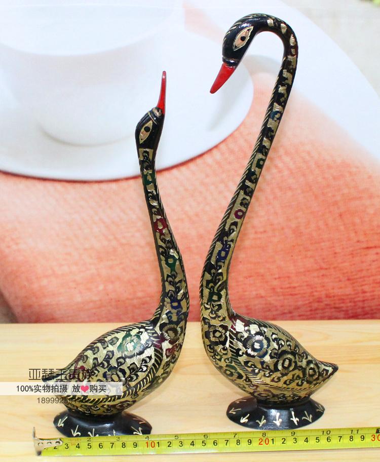 【產品名稱】:巴基斯坦銅雕吉祥如意情侶對鵝 巴基斯坦批發商亞瑟王手工藝品店 【產地】:巴基斯坦 【材質】:巴基斯坦銅器 【工藝】: 純手工黑漆彩雪蓮花工藝 【歷史簡介】:印度銅雕、巴基斯坦銅雕、石雕.木雕手工藝品及印度銅雕手工藝品、手織地毯、掛毯及民族服裝飾品歷史悠久,具有濃郁的伊斯蘭宗教和民族特色。其中鑄銅雕刻手工藝品最具代表和典型性。其制作工藝的歷史可追溯至幾百年前。早在幾百年前土爾其和伊朗開始在石頭上雕刻,后來改變在銅的表面上雕刻,而后這種雕刻技術傳入北印度(NORTH INDIA MURAD ABAD),經這里流傳到巴基斯坦。雕刻而成的瓶、壺、盤以及各種造形的生肖動物,形象逼真,栩栩如生,大多以人們生活用品演變為裝飾工藝品。 巴基斯坦鑄銅雕刻手工藝品從制作工藝上可分為十五種工藝,上千個品種,每件工藝品根據雕刻的需要銅含量約為60%,其他金屬合金含量約占40%,制作程序可分為七大步驟:1.模具翻砂2.零部件焊接3.打磨修整4.拋光電鍍5.劃線雕刻6.刻花處理7.噴、烤漆成型。雕刻手法有:側刀刻、立刀鑿、平刀削。其生產方式以家庭手工作坊為主,子承父業,代代相傳為生產理念。學徒從五、六歲開始從師學藝,直至十五、六歲技藝嫻熟另立門戶終身從事銅制手工藝品雕刻。 【規格】:16英寸 【用途】:平安聚財聚寶富貴對鵝,喬遷,新婚,生日、節日時饋贈的高檔商務禮品 家居裝飾、賓館、酒店、辦公場所的高檔工藝品擺件。 【買家須知】: 純手工雕刻的每件寶貝的花紋都不同,有各種圖案和花色,隨機發貨,有特殊要求的請聯系客服。本店所有寶貝均為巴基斯坦民間匠人在手工作坊里一刀一鑿雕琢出來的,是百分之百純手工雕刻的,每一件寶貝都凝聚著匠人們的精湛技藝和獨特的匠心。,每一件寶貝都是獨一無二的,絕不雷同。價格單位:一對 1、印度銅雕、巴基斯坦銅雕、木雕手工藝品,是純手工制作,在翻砂、鑄模、零部件焊接、雕刻過程中出現的雕刻細紋、拋光、雜色、缺(不顯眼小坑)、邊緣打磨少許粗糙、噴漆不均勻、輕微裂、包裹體等均為手工雕刻特征,不屬質量問題。經雕刻、點漆處理的小砂眼或小細紋,均屬手工制品允許的瑕疵范疇,不屬質量問題,不影響正常的擺設和觀賞,請追求絕對完美的您,要慎拍或是不拍,以免發生糾紛! 2、印度銅雕、巴基斯坦銅器、巴基斯坦木雕、巴基斯坦手工牛皮鞋等手工藝品的保養方法:臟了,是用牛仔干布子擦拭,不可用水直接泡洗,牛皮鞋可沾水擦洗,(忌雨天穿著)本店所有寶貝均為店家實物拍攝,如相機和拍攝環境的原因出現色差,都以本店實物顏色為準。(不容色差的朋友慎拍或不拍,謝謝!) 3、請在購物前仔細閱讀買家須知,絕對追求好評,我很真實的反應了寶貝的具體情況,如寶貝本身的質量問題,請于簽收當日拍下質量問題所在處,讓我確定后,會及時給您退換。如無任何異議請親們在3日內盡快確認,謝謝! 4、我會精挑細選找最好的,最漂亮的商品給您,真誠為您服務,您的滿意是我最大的心愿!請您在收到寶貝時,當著快遞員面打開郵包,仔細查看后,確認貨物完好無損及滿意后再簽收,如果包裹有損壞請拒絕簽收,并且及時聯系我們。 5、印度銅雕、巴基斯坦銅雕、木雕手工藝品都用的是英國計量尺寸英寸,多少會有些偏差,因為是手工測量,小件寶貝允許1-4cm的誤差,大件寶貝允許1-8cm的誤差。在這里為了尺度準確均以中國計量單位( 厘米)為準,請親們注意查看哦!謝謝!【備注:1英寸=2.54厘米】 默認物流:申通、韻達、圓通快遞、三到五天到貨,量大價優,物流均送貨上門。如需其他物流,請聯系客服說明。北京時間17點之前拍的訂單當日發貨,17點之后拍的訂單次日發貨。 祝您購物愉快,如有其它問題請聯系掌柜,電話0991-8556985(店),傳真:0991-8556985,18999259173、13325628582 ,旺旺:亞瑟阿夫塔,實體店地址:新疆烏魯木齊國際大巴扎4號樓二樓B-310、311、312店 庫房B-324、325、326、 328庫。