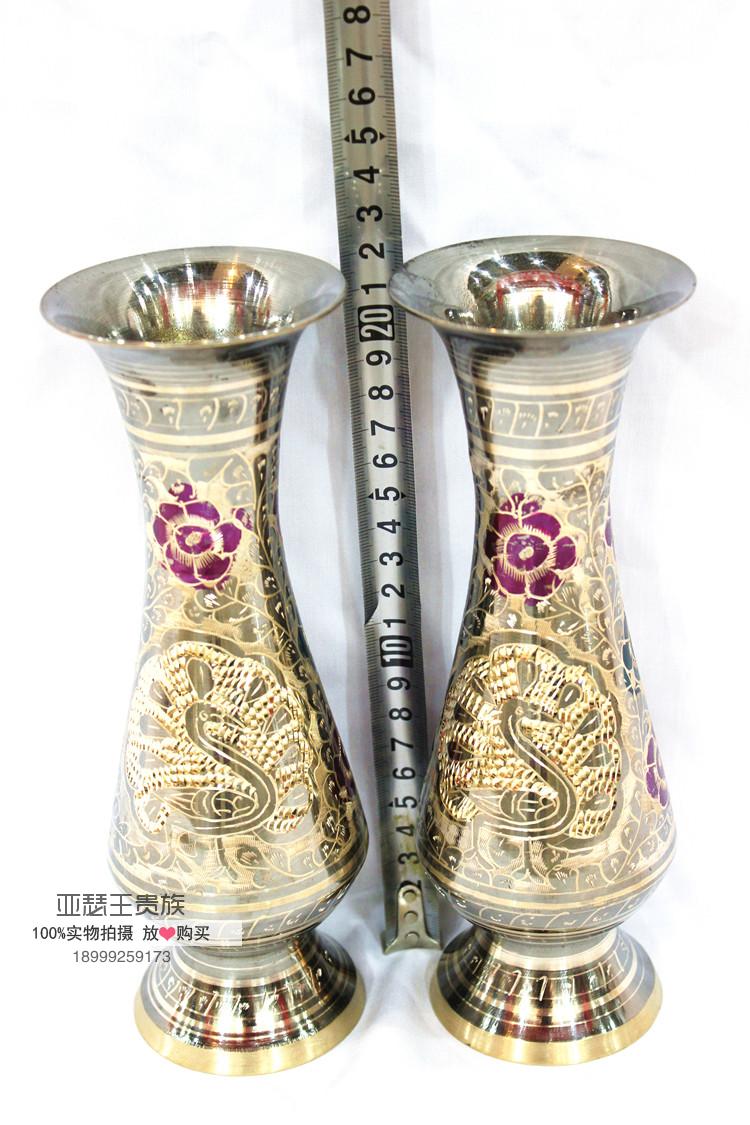【產品名稱】:巴基斯坦銅雕日式情侶花瓶,吉祥如意、招財進寶平安富貴瓶 巴基斯坦批發商亞瑟王手工藝品店 【產地】:巴基斯坦 【材質】:巴基斯坦銅器 【工藝】: 純手工銅雕彩雕雪蓮花、鳳凰工藝 【歷史簡介】:巴基斯坦銅雕、石雕.木雕手工藝品及印度銅雕手工藝品、手織地毯、掛毯及民族服裝飾品歷史悠久,具有濃郁的伊斯蘭宗教和民族特色。其中鑄銅雕刻手工藝品最具代表和典型性。其制作工藝的歷史可追溯至幾百年前。早在幾百年前土爾其和伊朗開始在石頭上雕刻,后來改變在銅的表面上雕刻,而后這種雕刻技術傳入北印度(NORTH INDIA MURAD ABAD),經這里流傳到印度、巴基斯坦。雕刻而成的瓶、壺、盤以及各種造形的生肖動物,形象逼真,栩栩如生,大多以人們生活用品演變為裝飾工藝品。 巴基斯坦鑄銅雕刻手工藝品從制作工藝上可分為十五種工藝,上千個品種,每件工藝品根據雕刻的需要銅含量約為60%,其他金屬合金含量約占40%,制作程序可分為七大步驟:1.模具翻砂2.零部件焊接3.打磨修整4.拋光電鍍5.劃線雕刻6.刻花處理7.噴、烤漆成型。雕刻手法有:側刀刻、立刀鑿、平刀削。其生產方式以家庭手工作坊為主,子承父業,代代相傳為生產理念。學徒從五、六歲開始從師學藝,直至十五、六歲技藝嫻熟另立門戶終身從事銅制手工藝品雕刻。 【規格】:10英寸 【用途】:巴基斯坦銅雕手工藝品,平安聚財聚寶富貴瓶,鎮宅辟邪,喬遷,新婚,生日、節日、開業慶典時饋贈的高檔商務禮品 家居裝飾、賓館、酒店、辦公場所的高檔工藝品擺件。 【買家須知】: 純手工雕刻的每件寶貝的花紋都不同,有各種圖案和花色,隨機發貨,有特殊要求的請聯系客服。本店所有寶貝均為巴基斯坦民間匠人在手工作坊里一刀一鑿雕琢出來的,是百分之百純手工雕刻的,每一件寶貝都凝聚著匠人們的精湛技藝和獨特的匠心。,每一件寶貝都是獨一無二的,絕不雷同。價格單位:一對 1、印度銅雕、巴基斯坦銅雕、木雕手工藝品,是純手工制作,在翻砂、鑄模、零部件焊接、雕刻過程中出現的雕刻細紋、拋光、雜色、缺(不顯眼小坑)、邊緣打磨少許粗糙、噴漆不均勻、輕微裂、包裹體等均為手工雕刻特征,不屬質量問題。經雕刻、點漆處理的小砂眼或小細紋,均屬手工制品允許的瑕疵范疇,不屬質量問題,不影響正常的擺設和觀賞,請追求絕對完美的您,要慎拍或是不拍,以免發生糾紛! 2、印度銅雕、巴基斯坦銅器、巴基斯坦木雕、巴基斯坦手工牛皮鞋等手工藝品的保養方法:臟了,是用牛仔干布子擦拭,不可用水直接泡洗,牛皮鞋可沾水擦洗,(忌雨天穿著)本店所有寶貝均為店家實物拍攝,如相機和拍攝環境的原因出現色差,都以本店實物顏色為準。(不容色差的朋友慎拍或不拍,謝謝!) 3、請在購物前仔細閱讀買家須知,絕對追求好評,我很真實的反應了寶貝的具體情況,如寶貝本身的質量問題,請于簽收當日拍下質量問題所在處,讓我確定后,會及時給您退換。如無任何異議請親們在3日內盡快確認,謝謝! 4、我會精挑細選找最好的,最漂亮的商品給您,真誠為您服務,您的滿意是我最大的心愿!請您在收到寶貝時,當著快遞員面打開郵包,仔細查看后,確認貨物完好無損及滿意后再簽收,如果包裹有損壞請拒絕簽收,并且及時聯系我們。 5、印度銅雕、巴基斯坦銅雕、木雕手工藝品都用的是英國計量尺寸英寸,多少會有些偏差,因為是手工測量,小件寶貝允許1-4cm的誤差,大件寶貝允許1-8cm的誤差。在這里為了尺度準確均以中國計量單位( 厘米)為準,請親們注意查看哦!謝謝!【備注:1英寸=2.54厘米】 默認物流:申通、韻達、圓通快遞、三到五天到貨,量大價優,物流均送貨上門。如需其他物流,請聯系客服說明。北京時間17點之前拍的訂單當日發貨,17點之后拍的訂單次日發貨。 祝您購物愉快,如有其它問題請聯系掌柜,電話0991-8556985(店),傳真:0991-8556985,18999259173、13325628582 ,旺旺:亞瑟阿夫塔,實體店地址:新疆烏魯木齊國際大巴扎4號樓二樓B-310、311、312店 庫房B-324、325、326、 328庫。