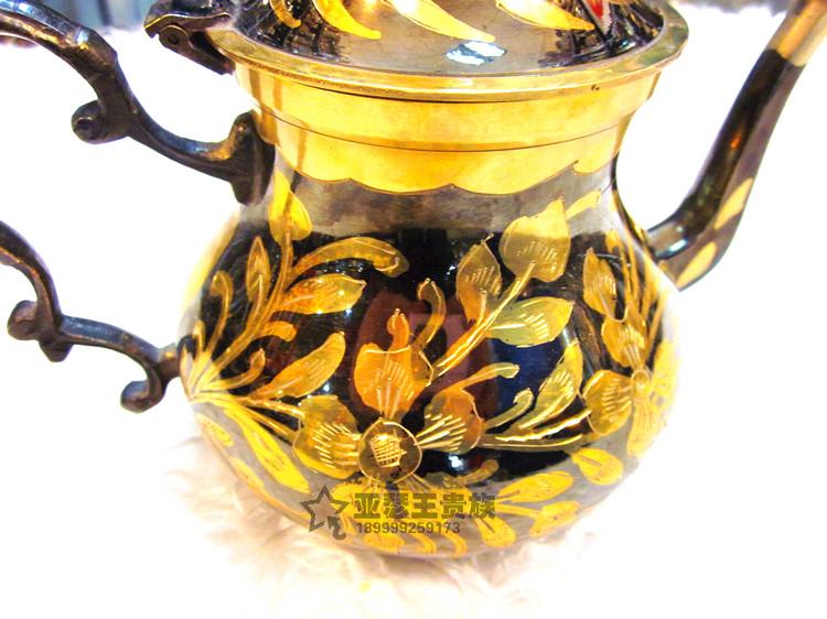 【產品名稱】:印度傳統手工藝品印度銅茶壺咖啡壺 【產地】:印度 【材質】:印度銅器 【工藝】: 純手工黑亮金花工藝 【歷史簡介】:巴基斯坦銅雕、石雕.木雕手工藝品及印度銅雕手工藝品、手織地毯、掛毯及民族服裝飾品歷史悠久,具有濃郁的伊斯蘭宗教和民族特色。其中鑄銅雕刻手工藝品最具代表和典型性。其制作工藝的歷史可追溯至幾百年前。早在幾百年前土爾其和伊朗開始在石頭上雕刻,后來改變在銅的表面上雕刻,而后這種雕刻技術傳入北印度(NORTH INDIA MURAD ABAD),經這里流傳到印度、巴基斯坦。雕刻而成的瓶、壺、盤以及各種造形的生肖動物,形象逼真,栩栩如生,大多以人們生活用品演變為裝飾工藝品。 巴基斯坦鑄銅雕刻手工藝品從制作工藝上可分為十五種工藝,上千個品種,每件工藝品根據雕刻的需要銅含量約為60%,其他金屬合金含量約占40%,制作程序可分為七大步驟:1.模具翻砂2.零部件焊接3.打磨修整4.拋光電鍍5.劃線雕刻6.刻花處理7.噴、烤漆成型。雕刻手法有:側刀刻、立刀鑿、平刀削。其生產方式以家庭手工作坊為主,子承父業,代代相傳為生產理念。學徒從五、六歲開始從師學藝,直至十五、六歲技藝嫻熟另立門戶終身從事銅制手工藝品雕刻。 【規格】:8英寸(3號)高20.5厘米,寬19.5厘米。 【用途】:印度銅茶壺、咖啡壺、銅餐具 【買家須知】: 純手工雕刻的每件寶貝的花紋都不同,有各種圖案和花色,隨機發貨,有特殊要求的請聯系客服。本店所有寶貝均為巴基斯坦民間匠人在手工作坊里一刀一鑿雕琢出來的,是百分之百純手工雕刻的,每一件寶貝都凝聚著匠人們的精湛技藝和獨特的匠心。,每一件寶貝都是獨一無二的,絕不雷同。價格單位:一個 1、印度銅雕、巴基斯坦銅雕、木雕手工藝品,是純手工制作,在翻砂、鑄模、零部件焊接、雕刻過程中出現的雕刻細紋、拋光、雜色、缺(不顯眼小坑)、邊緣打磨少許粗糙、噴漆不均勻、輕微裂、包裹體等均為手工雕刻特征,不屬質量問題。經雕刻、點漆處理的小砂眼或小細紋,均屬手工制品允許的瑕疵范疇,不屬質量問題,不影響正常的擺設和觀賞,請追求絕對完美的您,要慎拍或是不拍,以免發生糾紛! 2、印度銅雕、巴基斯坦銅器、巴基斯坦木雕、巴基斯坦手工牛皮鞋等手工藝品的保養方法:臟了,是用牛仔干布子擦拭,不可用水直接泡洗,牛皮鞋可沾水擦洗,(忌雨天穿著)本店所有寶貝均為店家實物拍攝,如相機和拍攝環境的原因出現色差,都以本店實物顏色為準。(不容色差的朋友慎拍或不拍,謝謝!) 3、請在購物前仔細閱讀買家須知,絕對追求好評,我很真實的反應了寶貝的具體情況,如寶貝本身的質量問題,請于簽收當日拍下質量問題所在處,讓我確定后,會及時給您退換。如無任何異議請親們在3日內盡快確認,謝謝! 4、我會精挑細選找最好的,最漂亮的商品給您,真誠為您服務,您的滿意是我最大的心愿!請您在收到寶貝時,當著快遞員面打開郵包,仔細查看后,確認貨物完好無損及滿意后再簽收,如果包裹有損壞請拒絕簽收,并且及時聯系我們。 5、印度銅雕、巴基斯坦銅雕、木雕手工藝品都用的是英國計量尺寸英寸,多少會有些偏差,因為是手工測量,小件寶貝允許1-4cm的誤差,大件寶貝允許1-8cm的誤差。在這里為了尺度準確均以中國計量單位( 厘米)為準,請親們注意查看哦!謝謝!【備注:1英寸=2.54厘米】 默認物流:申通、韻達、圓通快遞、三到五天到貨,量大價優,物流均送貨上門。如需其他物流,請聯系客服說明。北京時間17點之前拍的訂單當日發貨,17點之后拍的訂單次日發貨。 祝您購物愉快,如有其它問題請聯系掌柜,電話0991-8556985(店),傳真:0991-8556985,18999259173、13325628582 ,旺旺:亞瑟阿夫塔,實體店地址:新疆烏魯木齊國際大巴扎4號樓二樓B-310、311、312店 庫房B-324、325、326、 328庫。