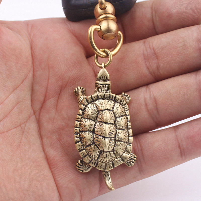 純銅金烏龜鑰匙扣掛件茶寵鎮紙男女創意手工汽車吊墜兒童禮物禮品1入