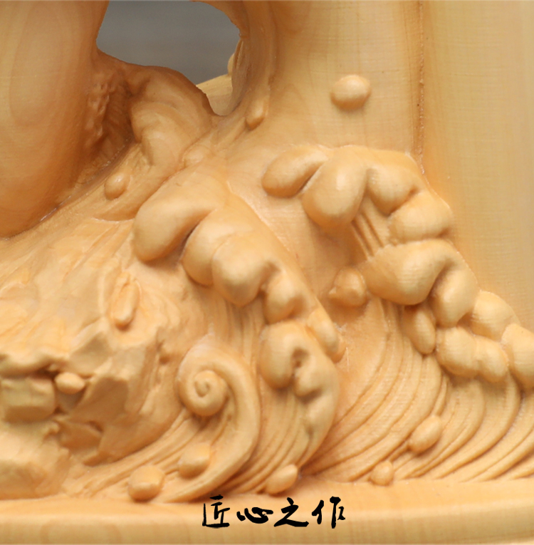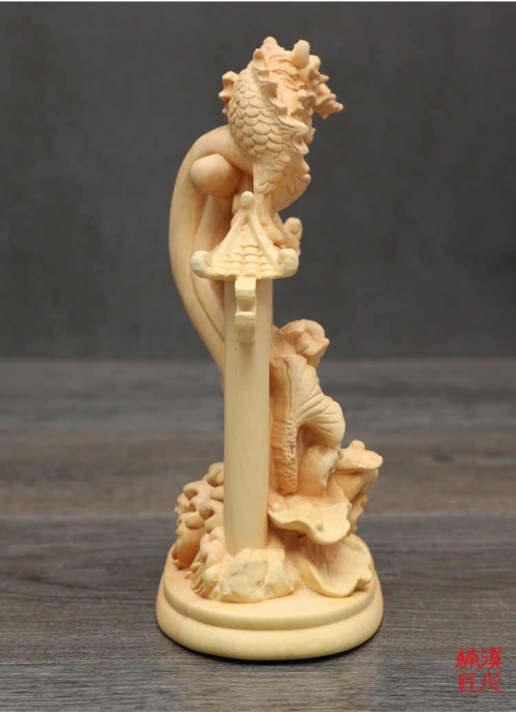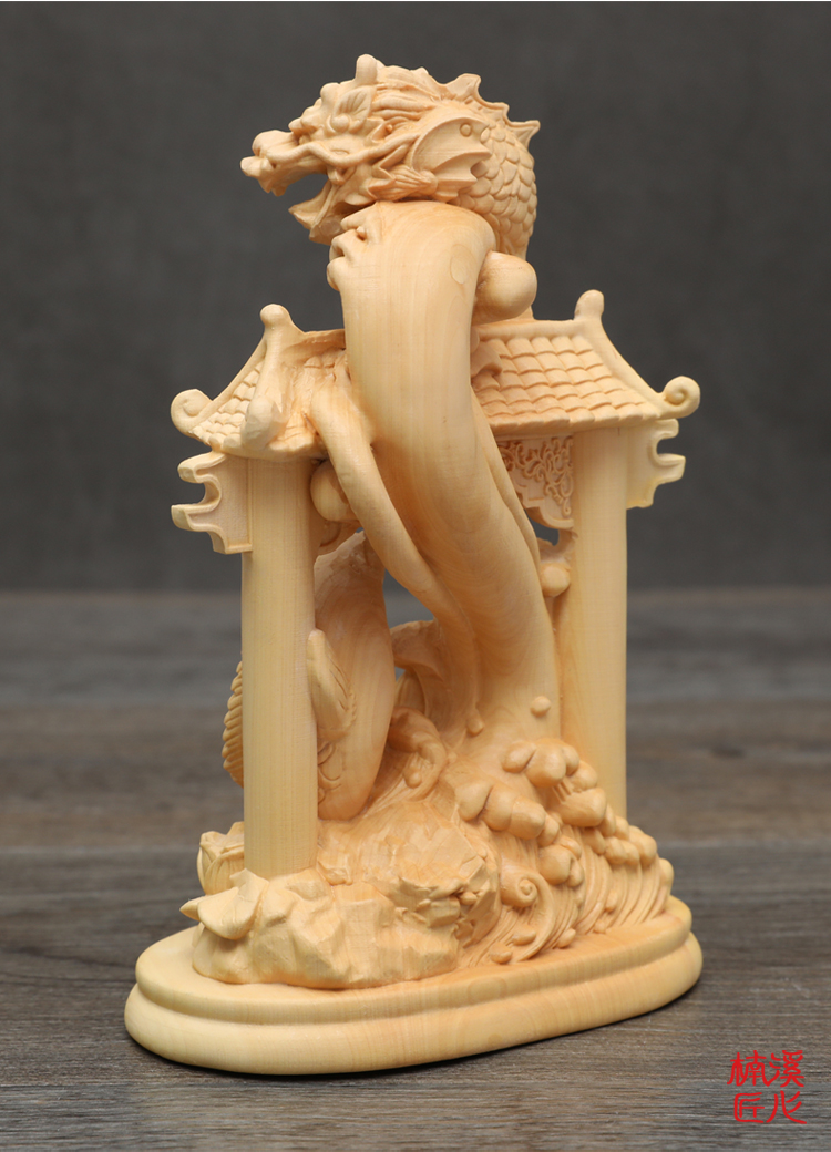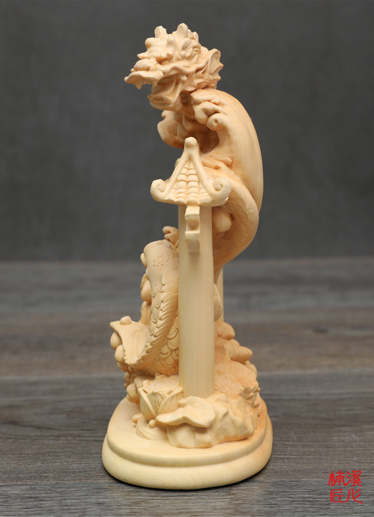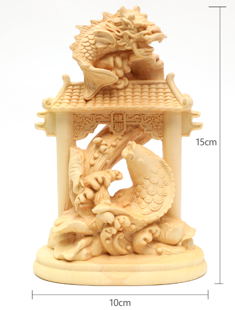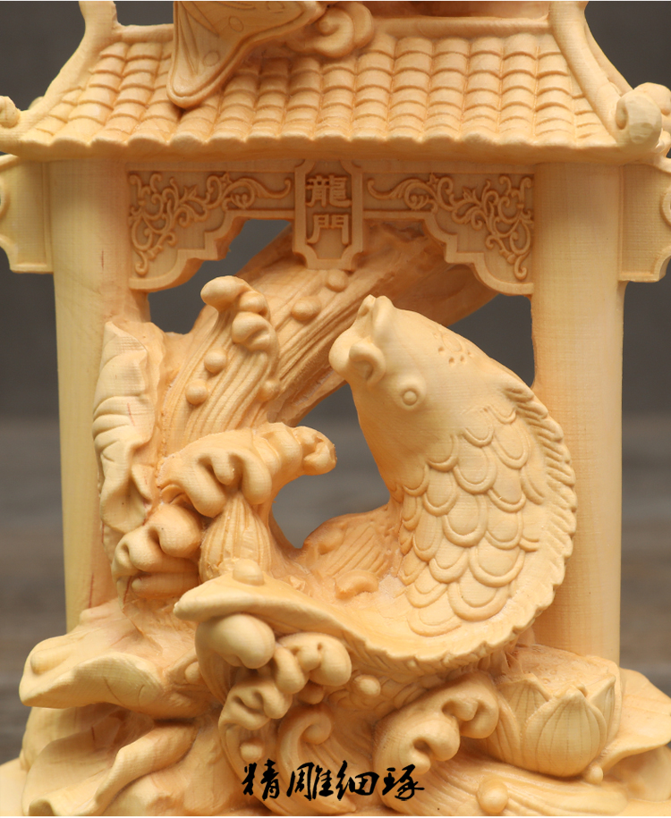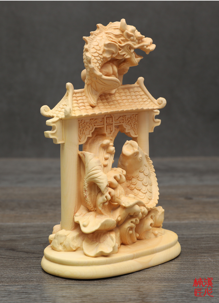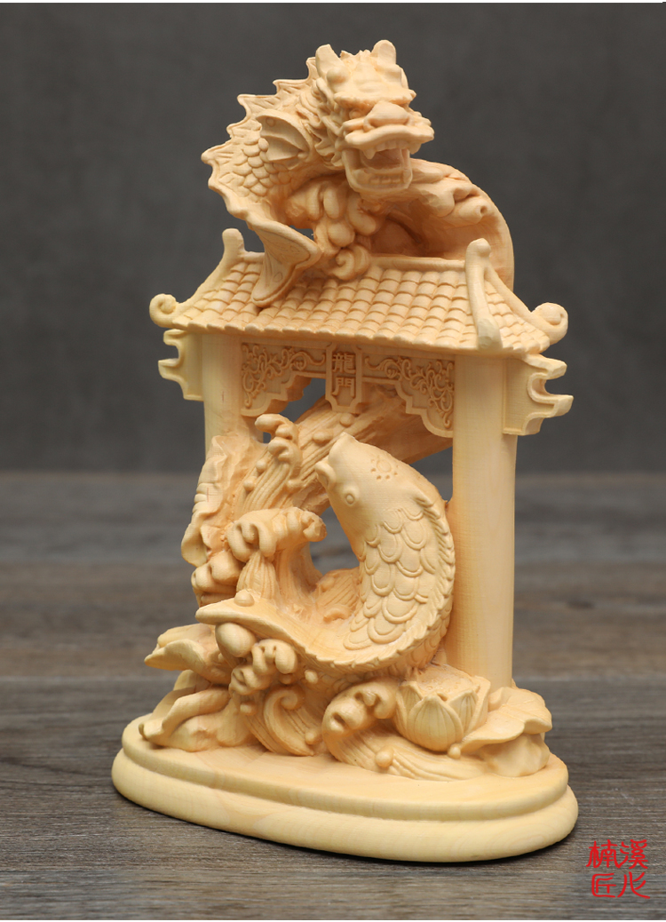 [2]楠溪匠心黃楊木雕刻鯉魚躍龍門跳龍門擺件年年有余招財風水工藝品1入