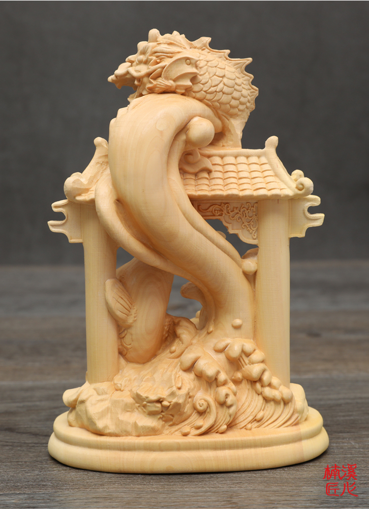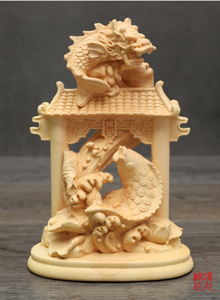 楠溪匠心黃楊木雕刻鯉魚躍龍門跳龍門擺件年年有余招財風水工藝品1入
