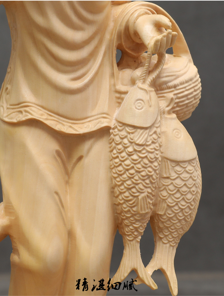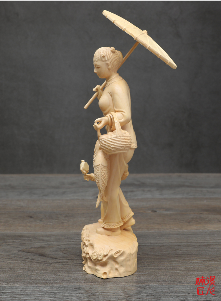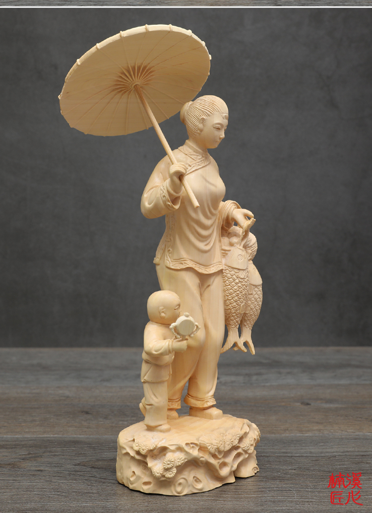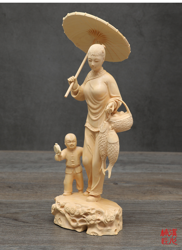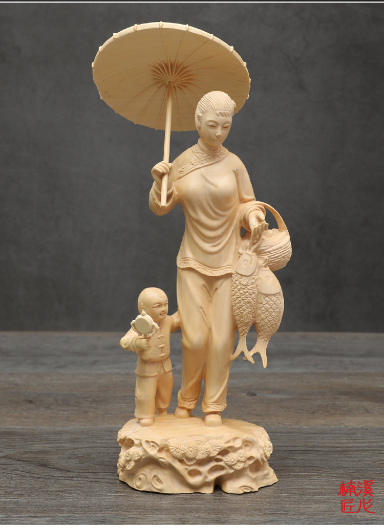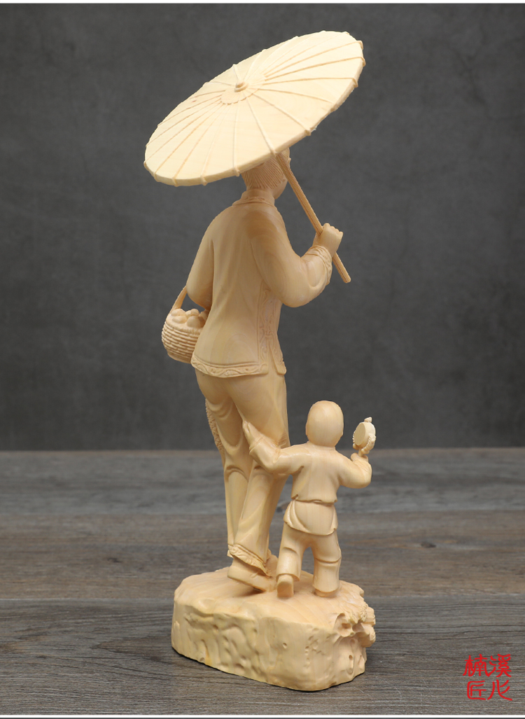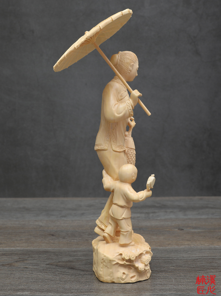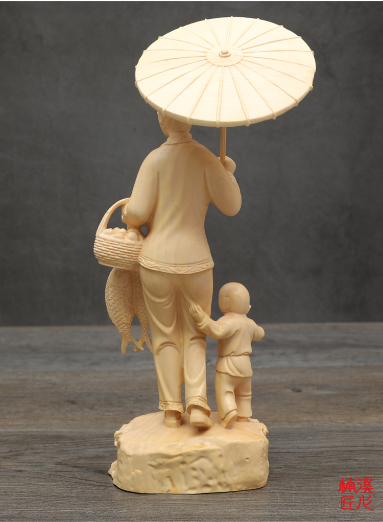 [2]楠溪匠心黃楊木雕中式家居擺件實木工藝品母子回娘家創意人物雕像1入