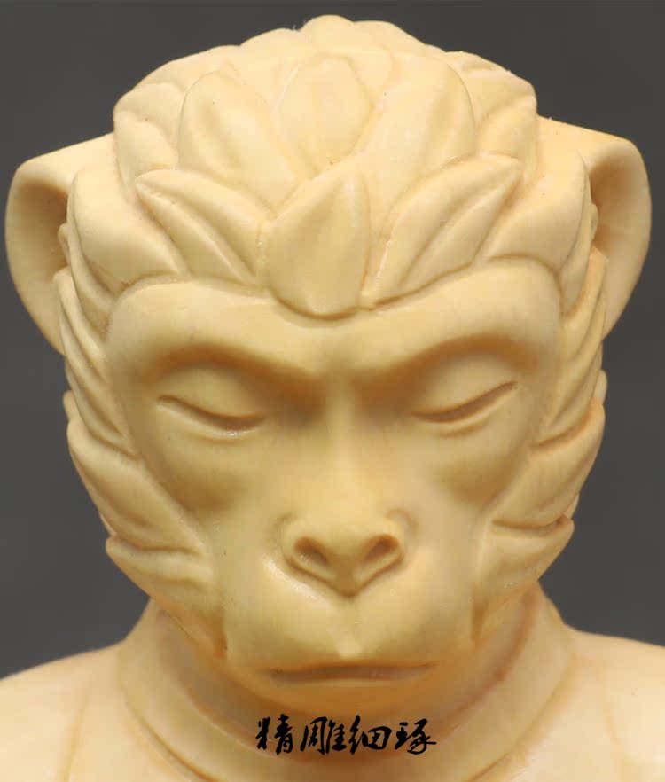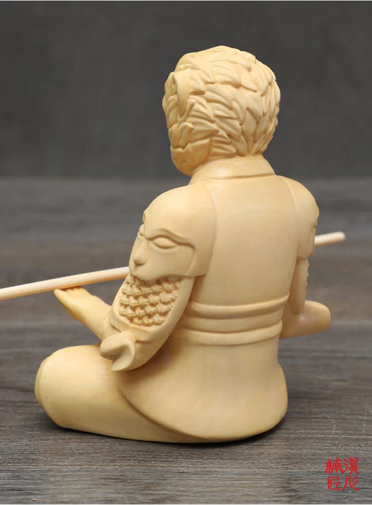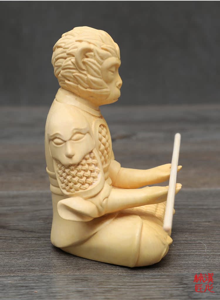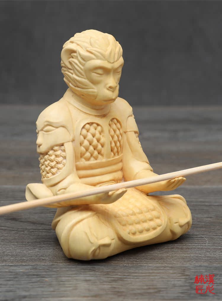 楠溪匠心黃楊木雕孫悟空猴子擺件齊天大圣實木雕像金箍棒家居擺設1入